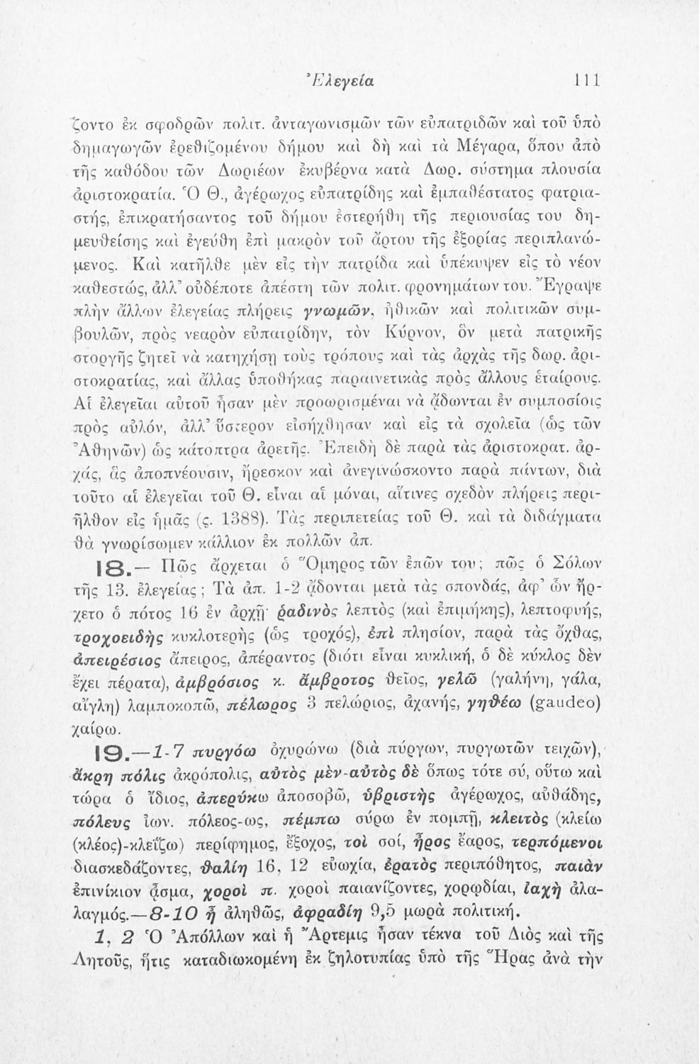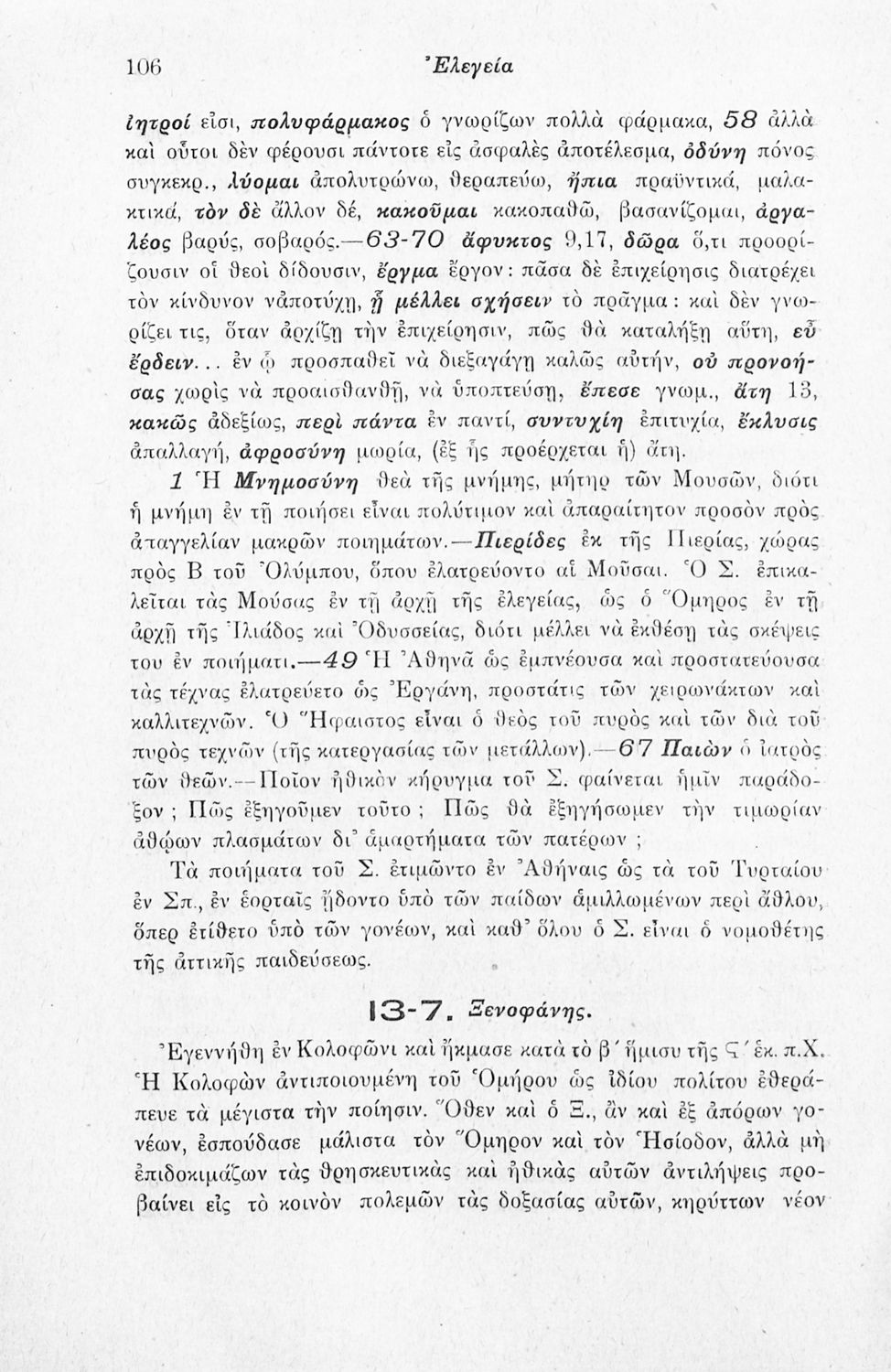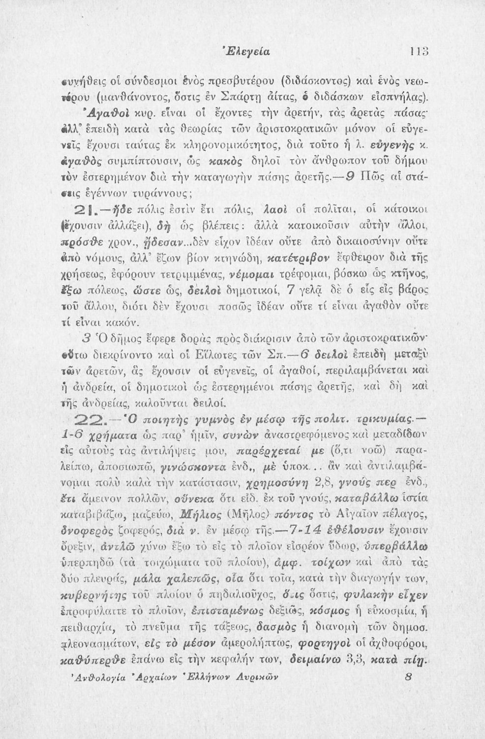Μαθητικό βοήθημα Αρχαίων Ελληνικών που περιλαμβάνει αποσπάσματα έργων αρχαίων Ελλήνων λυρικών, πολιτικές και γνωμικές ελεγείες, ιάμβους και επιγράμματα. Περιέχει και υπόμνημα με ερμηνευτικά, πραγματολογικά, γλωσσικά και γραμματικά σχόλια.