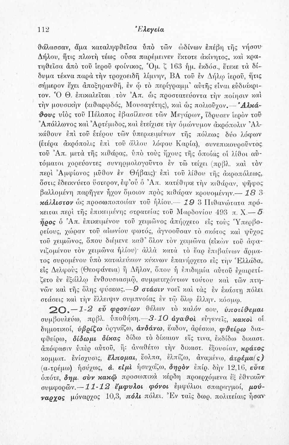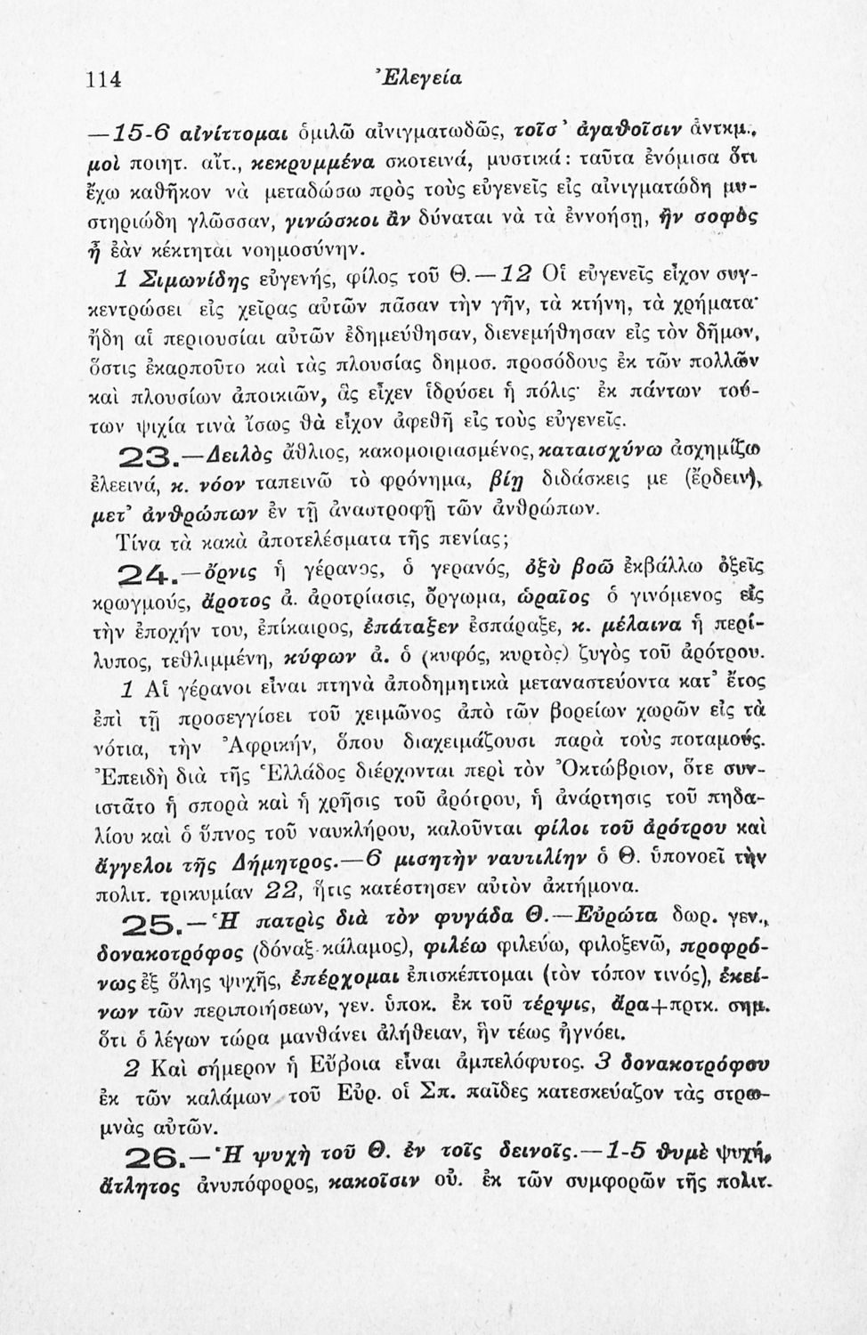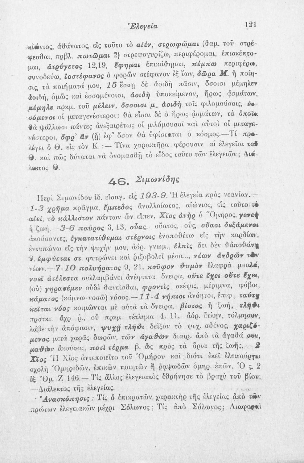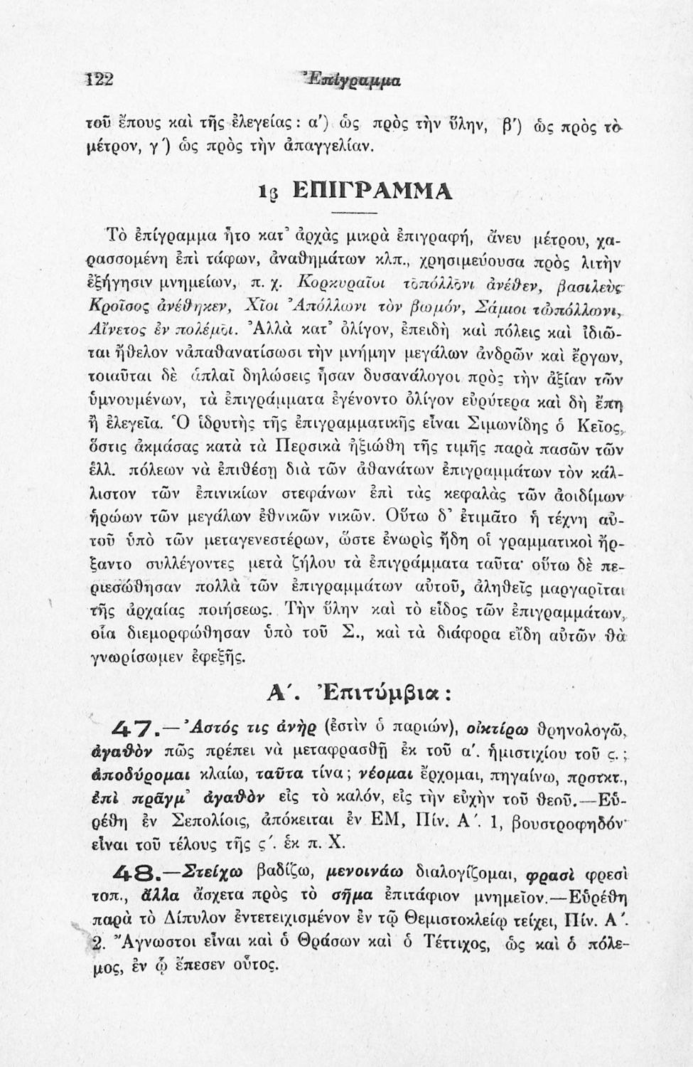 Μαθητικό βοήθημα Αρχαίων Ελληνικών που περιλαμβάνει αποσπάσματα έργων αρχαίων Ελλήνων λυρικών, πολιτικές και γνωμικές ελεγείες, ιάμβους και επιγράμματα. Περιέχει και υπόμνημα με ερμηνευτικά, πραγματολογικά, γλωσσικά και γραμματικά σχόλια.
