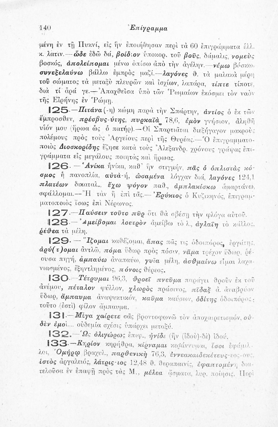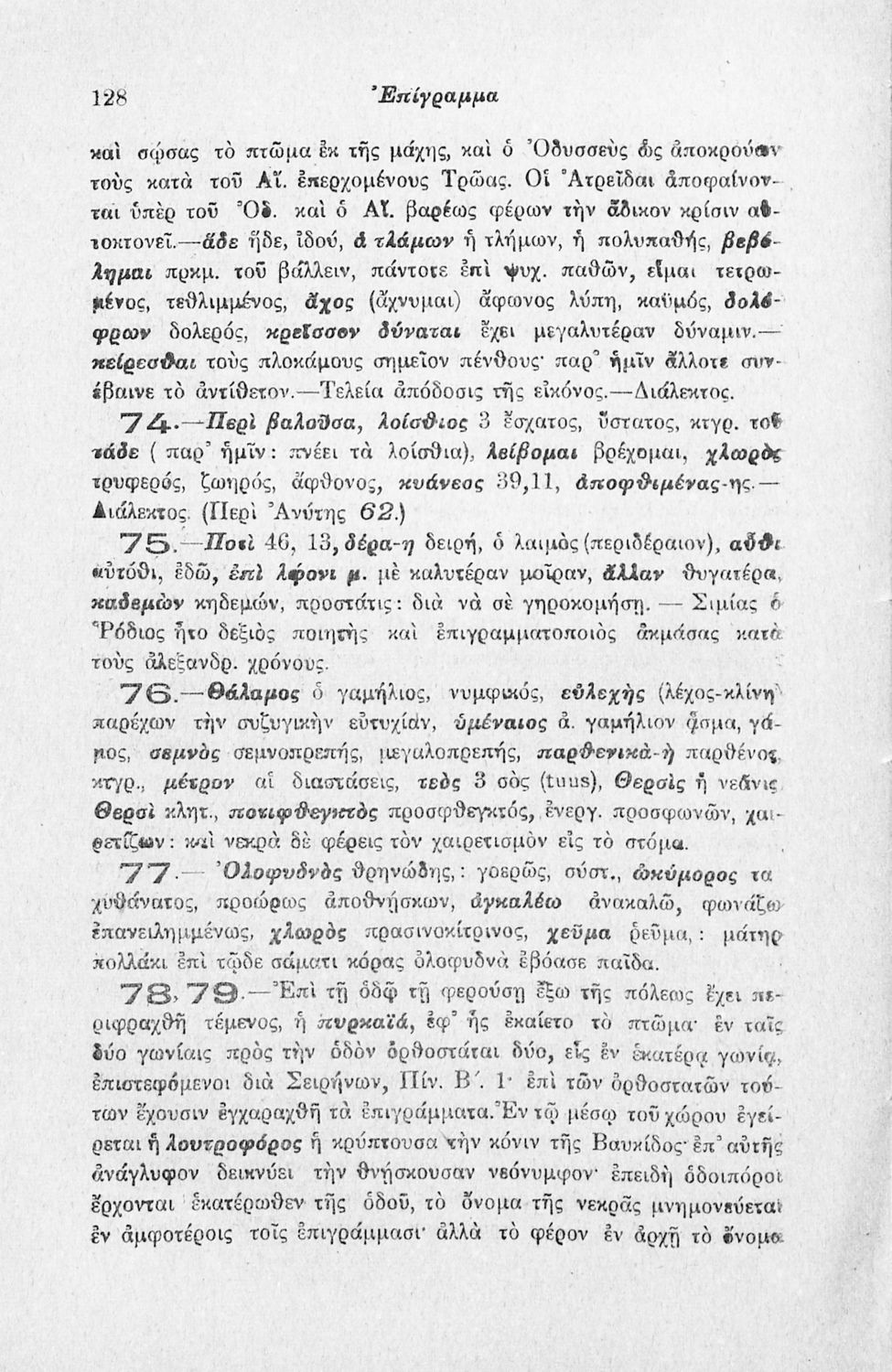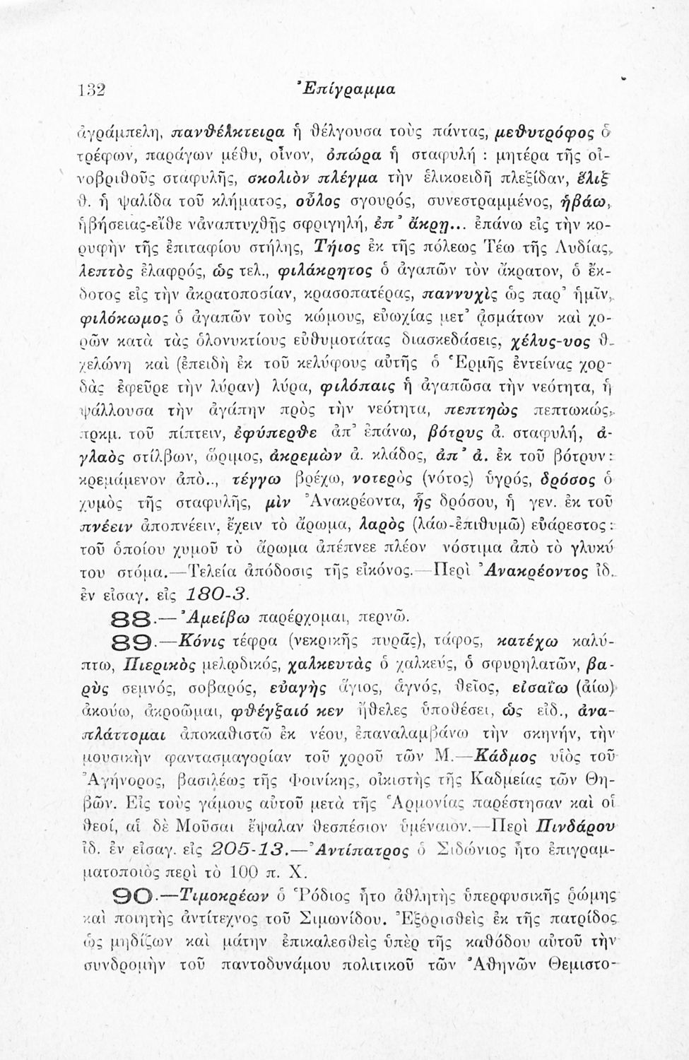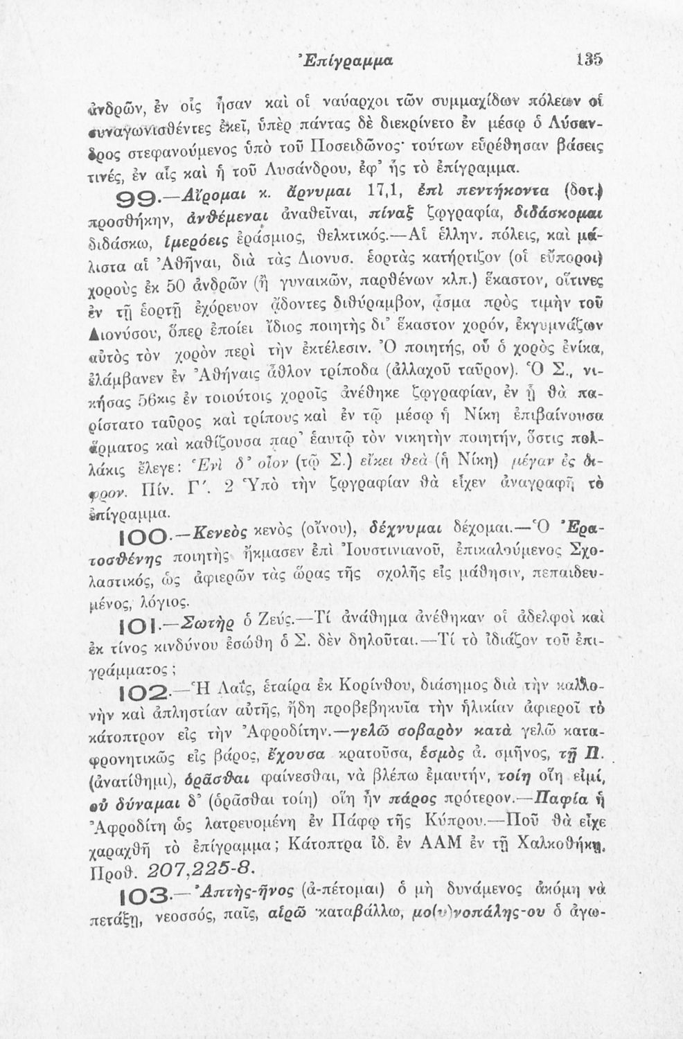 Μαθητικό βοήθημα Αρχαίων Ελληνικών που περιλαμβάνει αποσπάσματα έργων αρχαίων Ελλήνων λυρικών, πολιτικές και γνωμικές ελεγείες, ιάμβους και επιγράμματα. Περιέχει και υπόμνημα με ερμηνευτικά, πραγματολογικά, γλωσσικά και γραμματικά σχόλια.