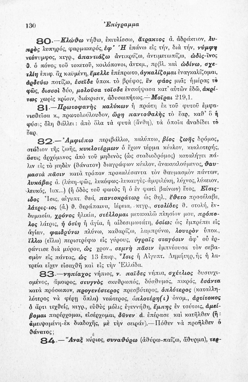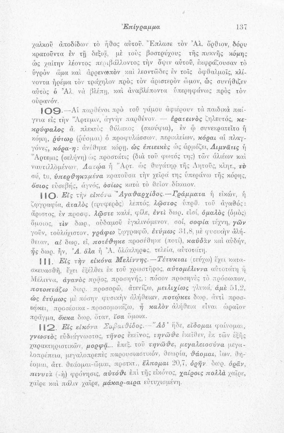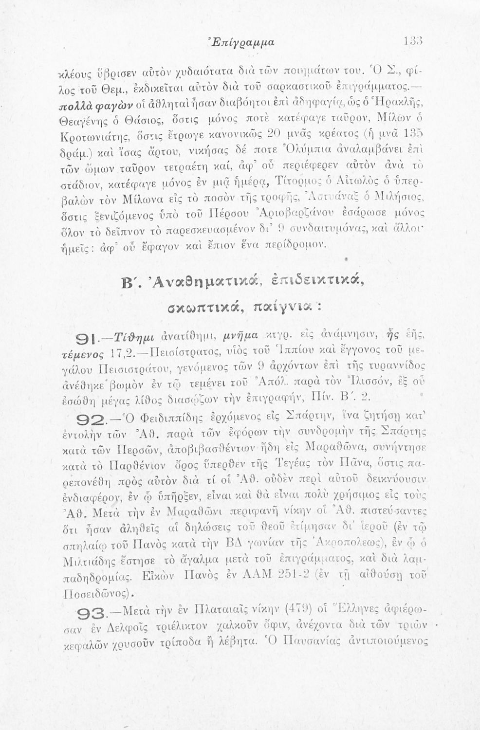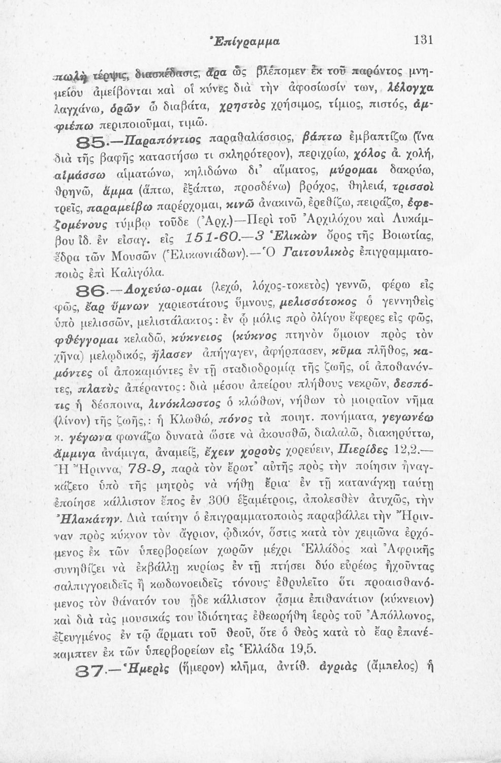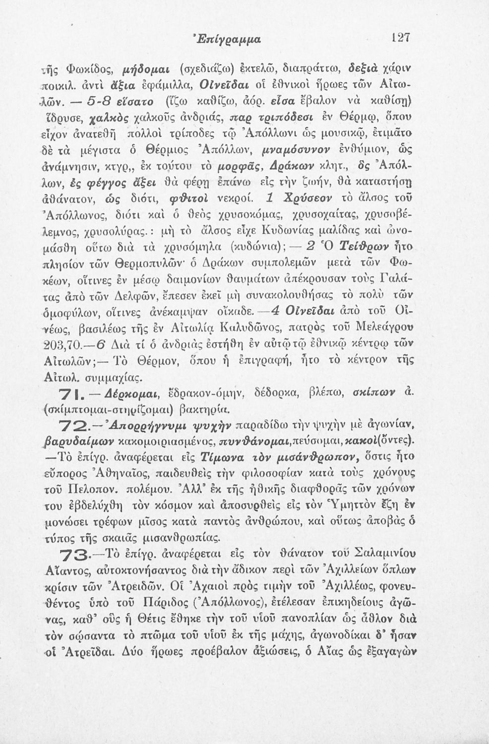 Μαθητικό βοήθημα Αρχαίων Ελληνικών που περιλαμβάνει αποσπάσματα έργων αρχαίων Ελλήνων λυρικών, πολιτικές και γνωμικές ελεγείες, ιάμβους και επιγράμματα. Περιέχει και υπόμνημα με ερμηνευτικά, πραγματολογικά, γλωσσικά και γραμματικά σχόλια.
