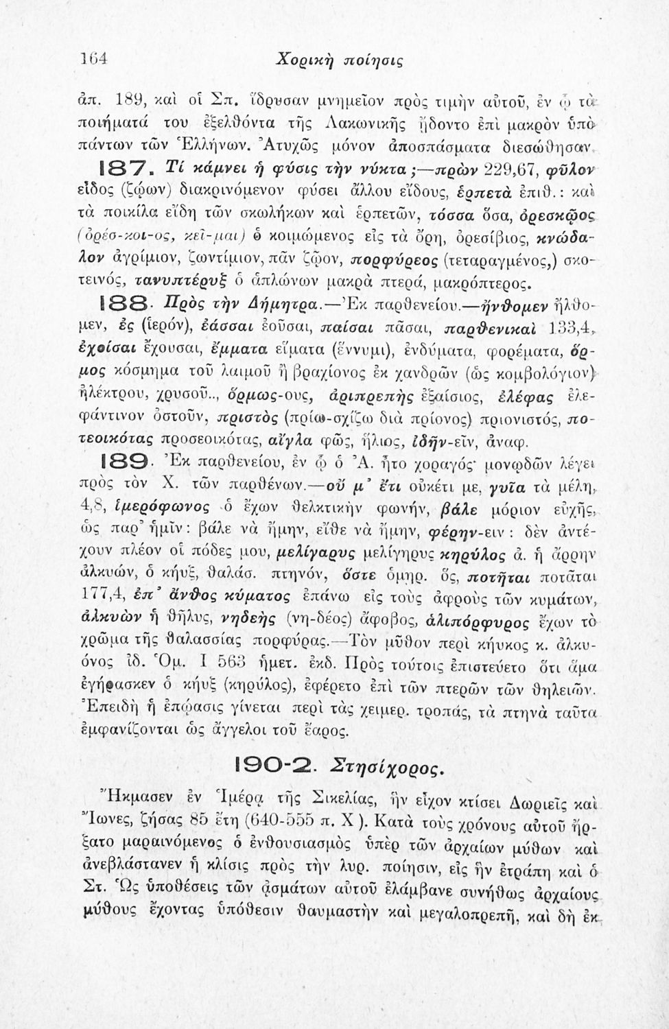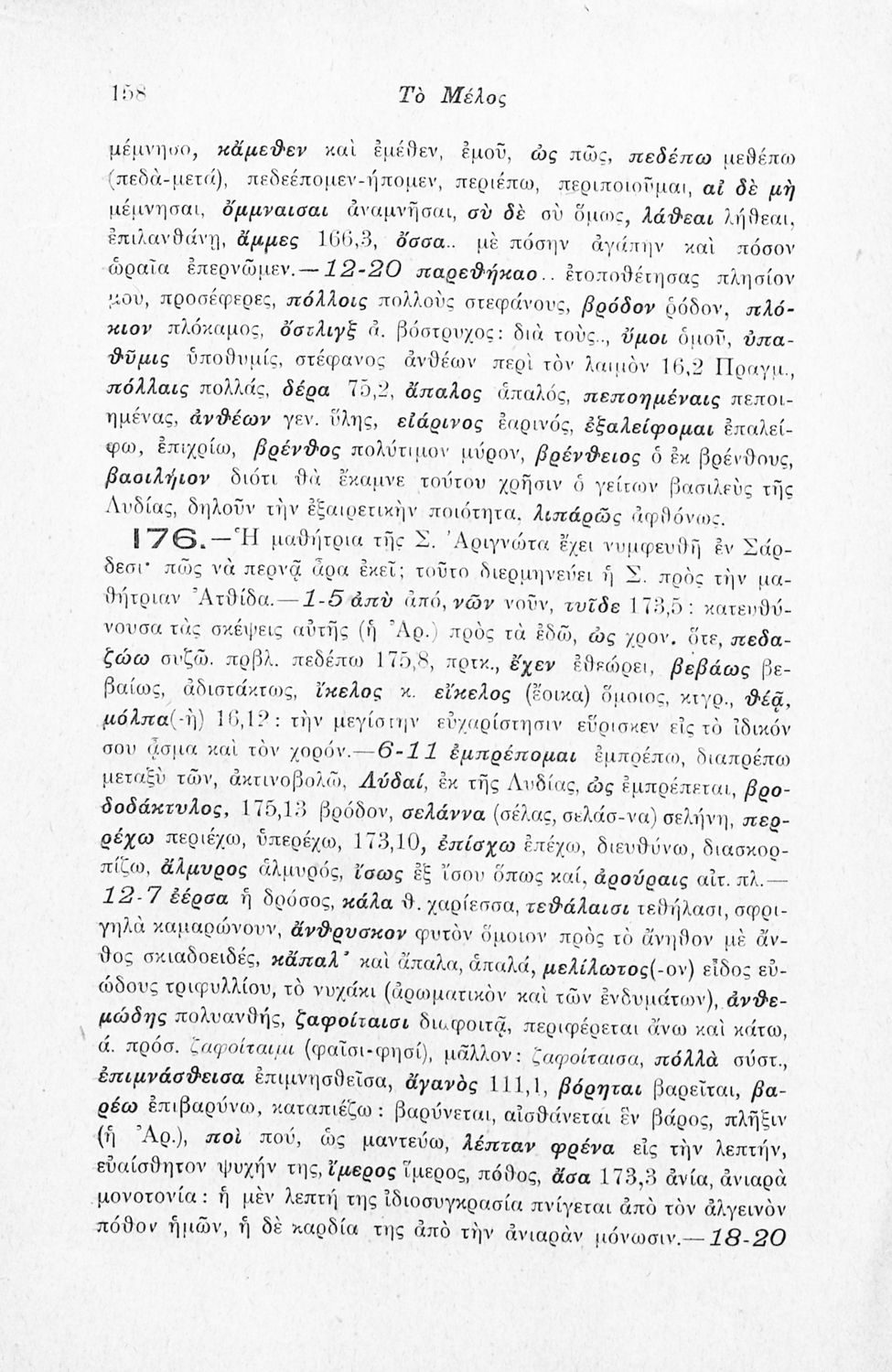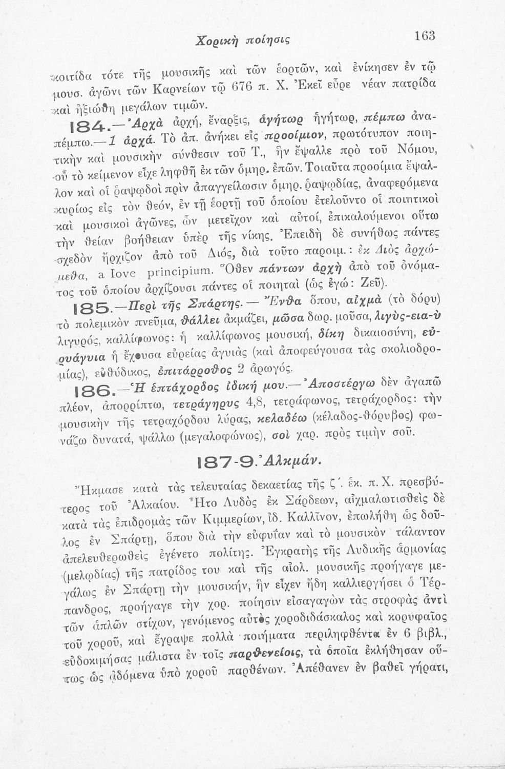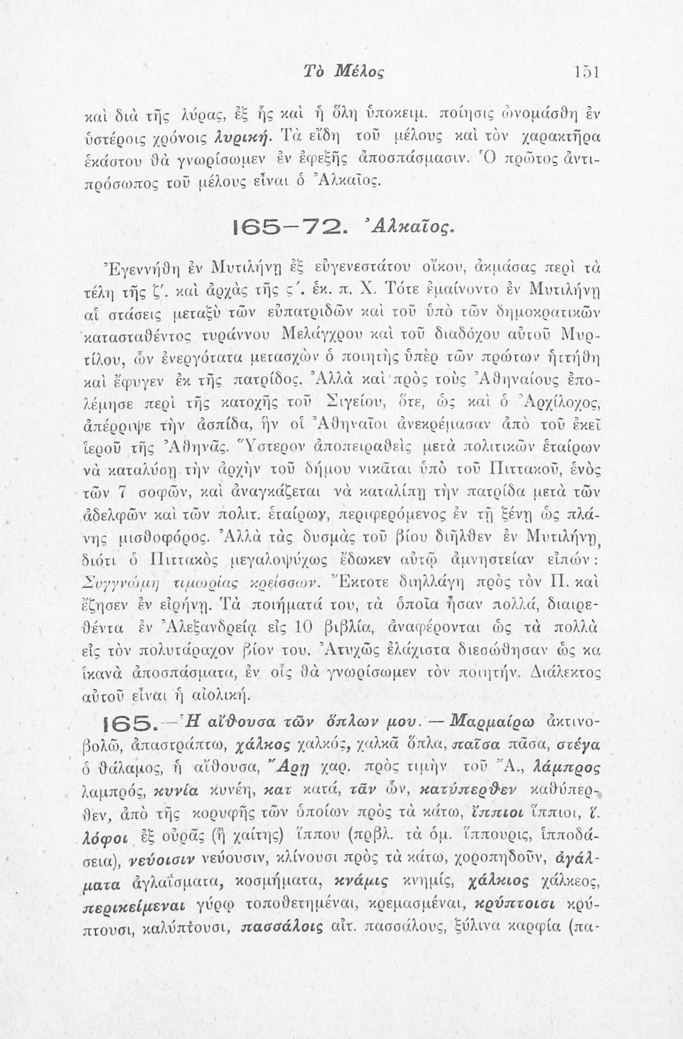 Μαθητικό βοήθημα Αρχαίων Ελληνικών που περιλαμβάνει αποσπάσματα έργων αρχαίων Ελλήνων λυρικών, πολιτικές και γνωμικές ελεγείες, ιάμβους και επιγράμματα. Περιέχει και υπόμνημα με ερμηνευτικά, πραγματολογικά, γλωσσικά και γραμματικά σχόλια.