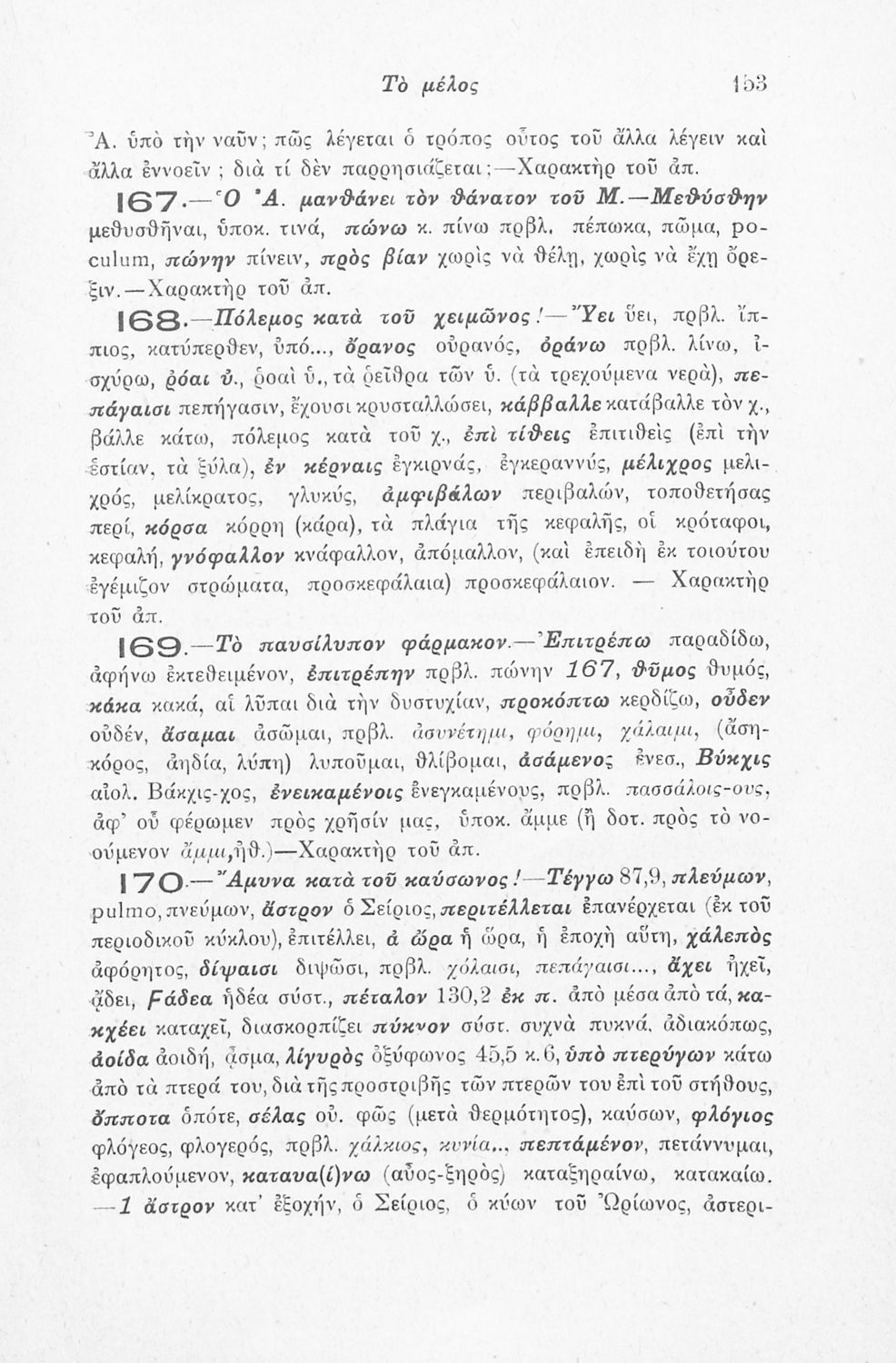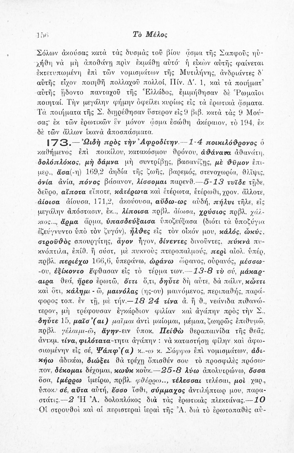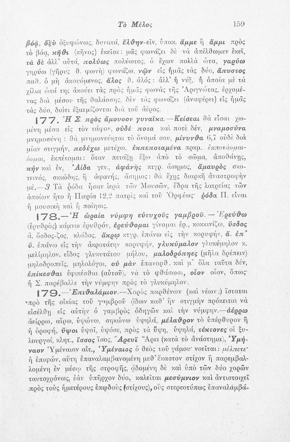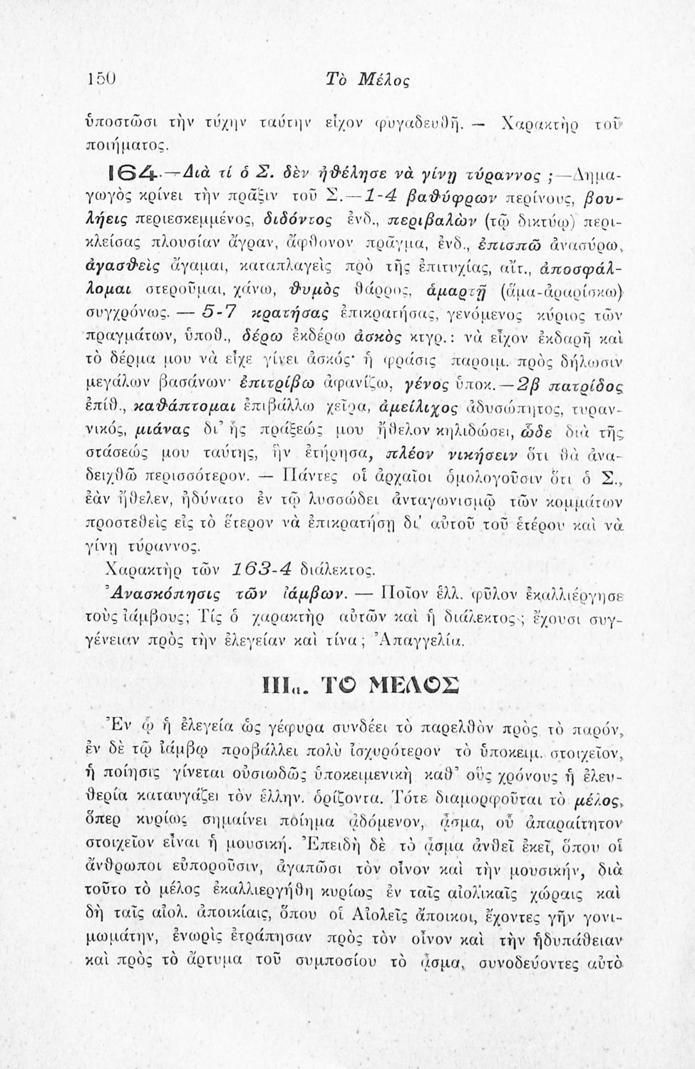 Μαθητικό βοήθημα Αρχαίων Ελληνικών που περιλαμβάνει αποσπάσματα έργων αρχαίων Ελλήνων λυρικών, πολιτικές και γνωμικές ελεγείες, ιάμβους και επιγράμματα. Περιέχει και υπόμνημα με ερμηνευτικά, πραγματολογικά, γλωσσικά και γραμματικά σχόλια.