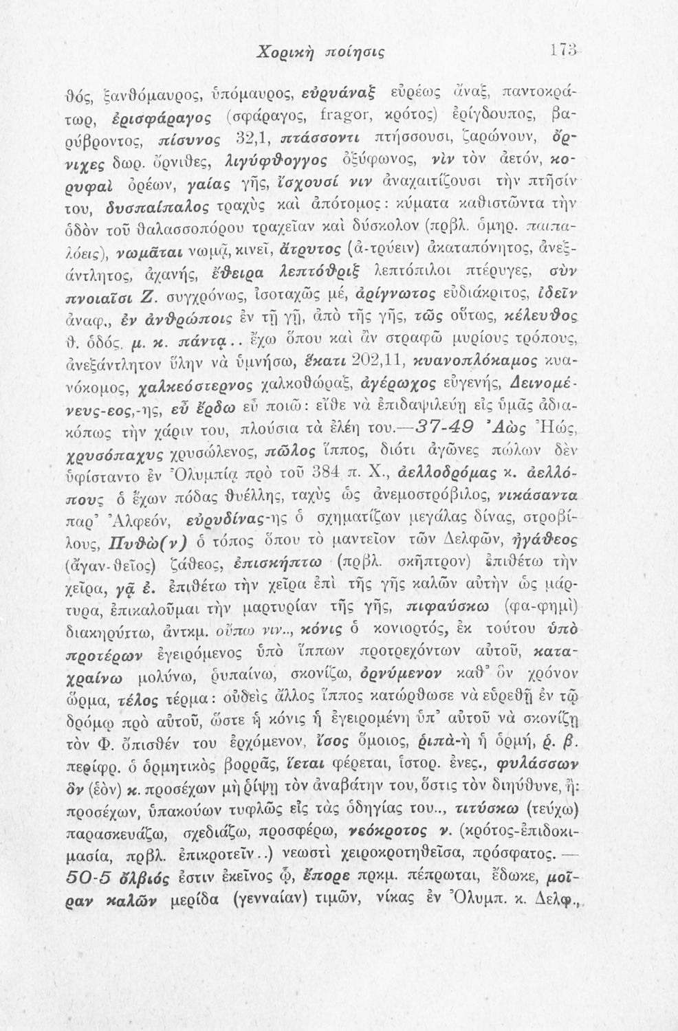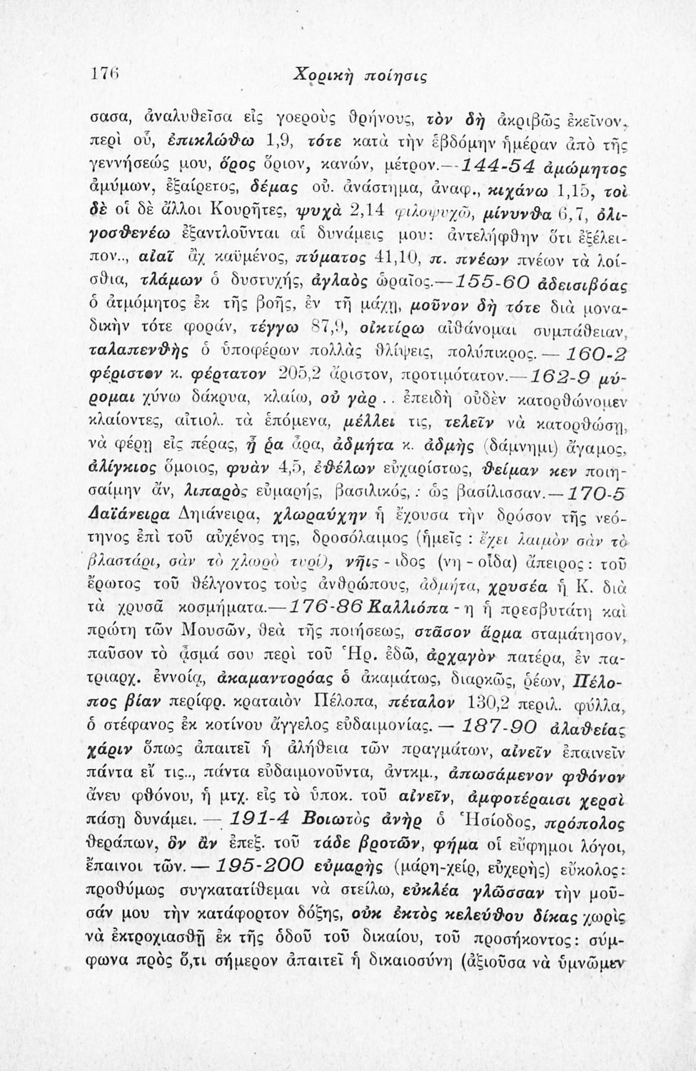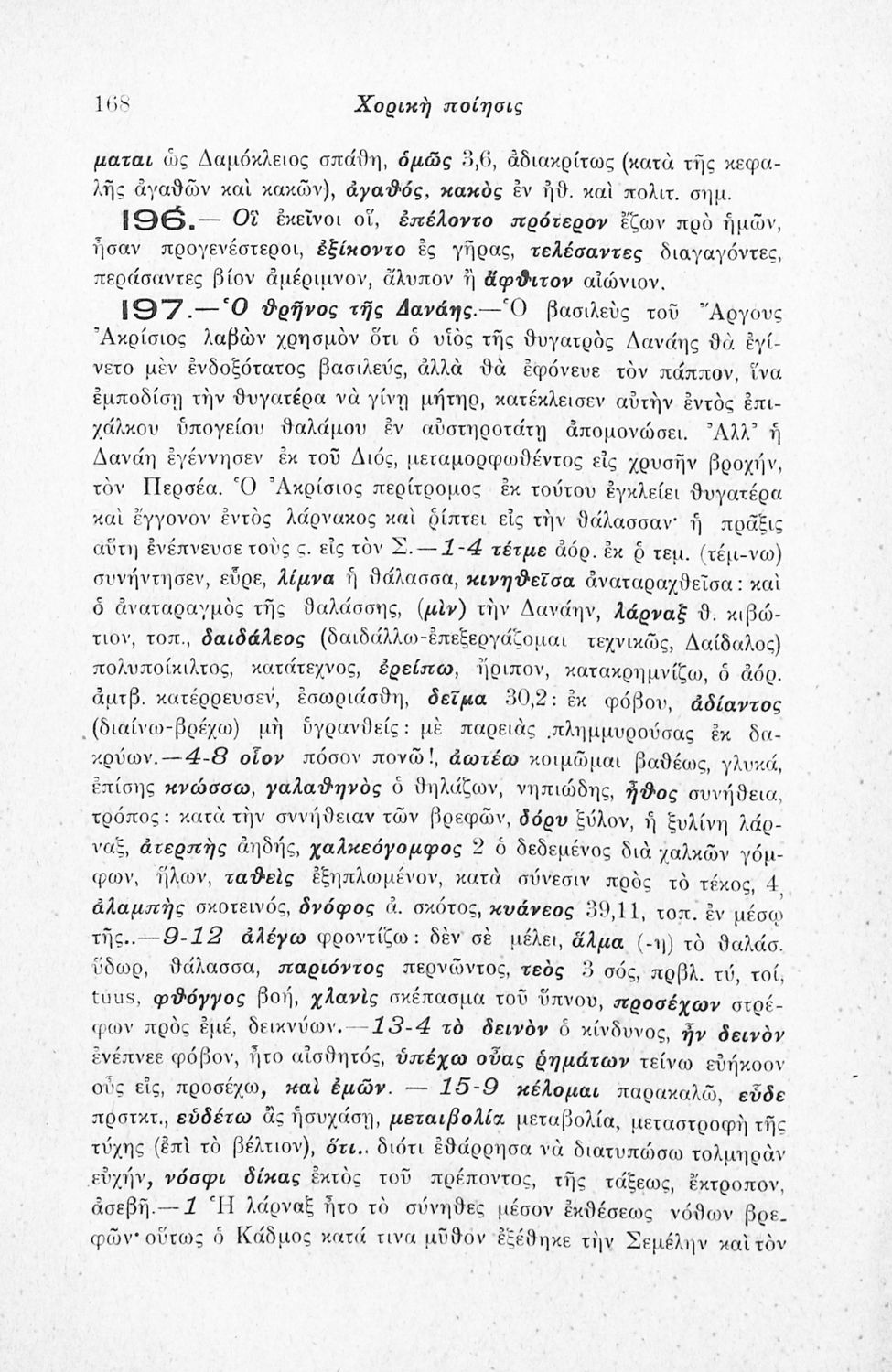 Μαθητικό βοήθημα Αρχαίων Ελληνικών που περιλαμβάνει αποσπάσματα έργων αρχαίων Ελλήνων λυρικών, πολιτικές και γνωμικές ελεγείες, ιάμβους και επιγράμματα. Περιέχει και υπόμνημα με ερμηνευτικά, πραγματολογικά, γλωσσικά και γραμματικά σχόλια.