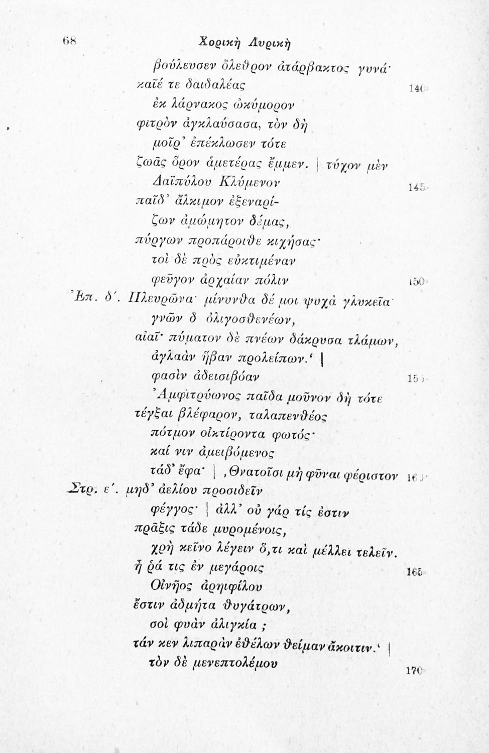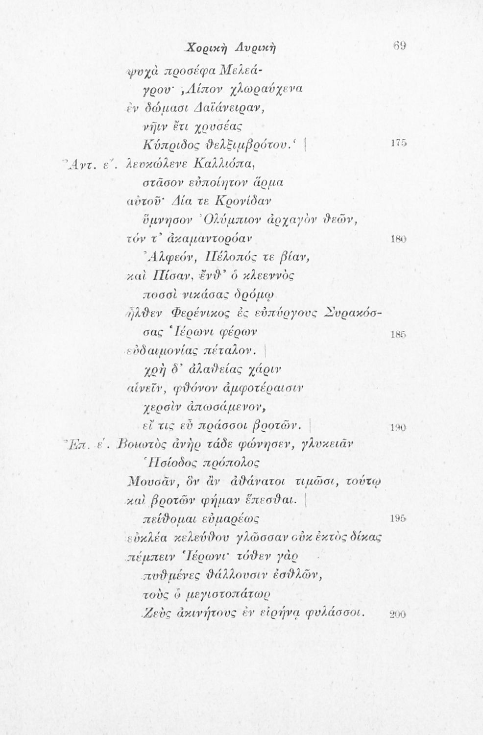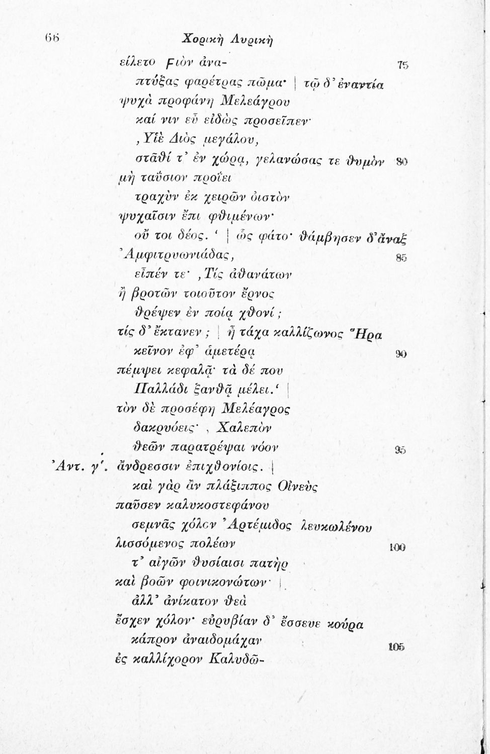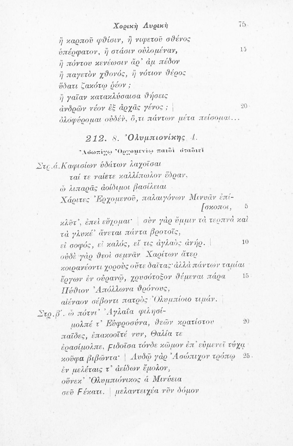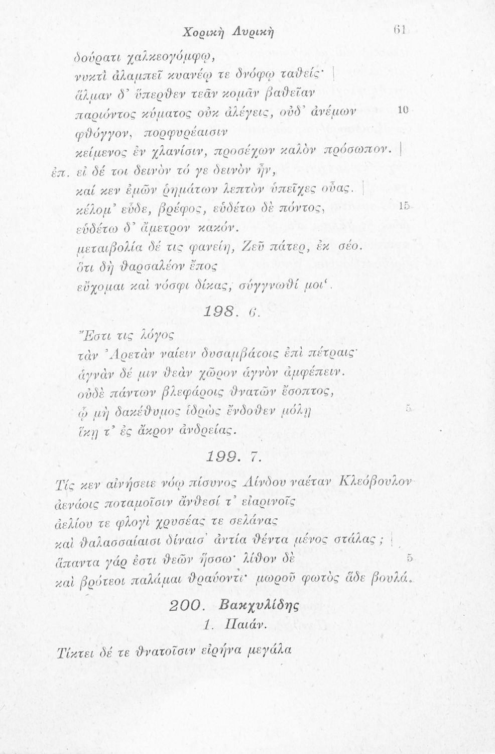 Μαθητικό βοήθημα Αρχαίων Ελληνικών που περιλαμβάνει αποσπάσματα έργων αρχαίων Ελλήνων λυρικών, πολιτικές και γνωμικές ελεγείες, ιάμβους και επιγράμματα. Περιέχει και υπόμνημα με ερμηνευτικά, πραγματολογικά, γλωσσικά και γραμματικά σχόλια.