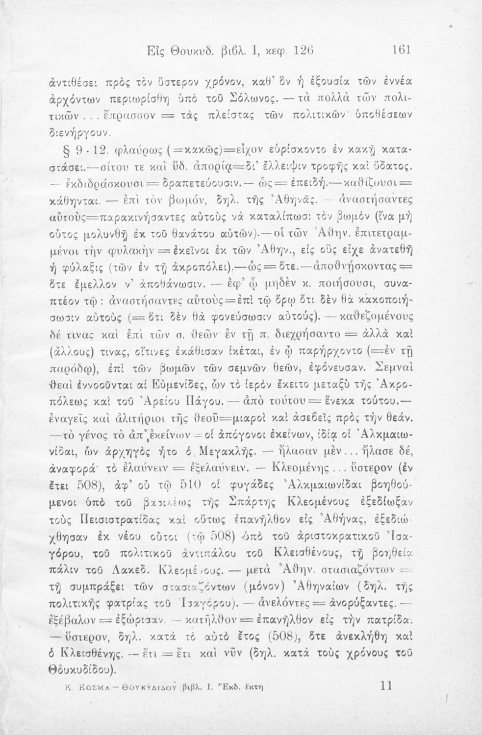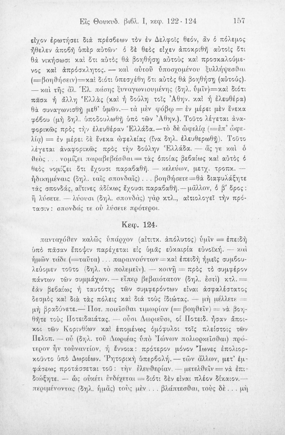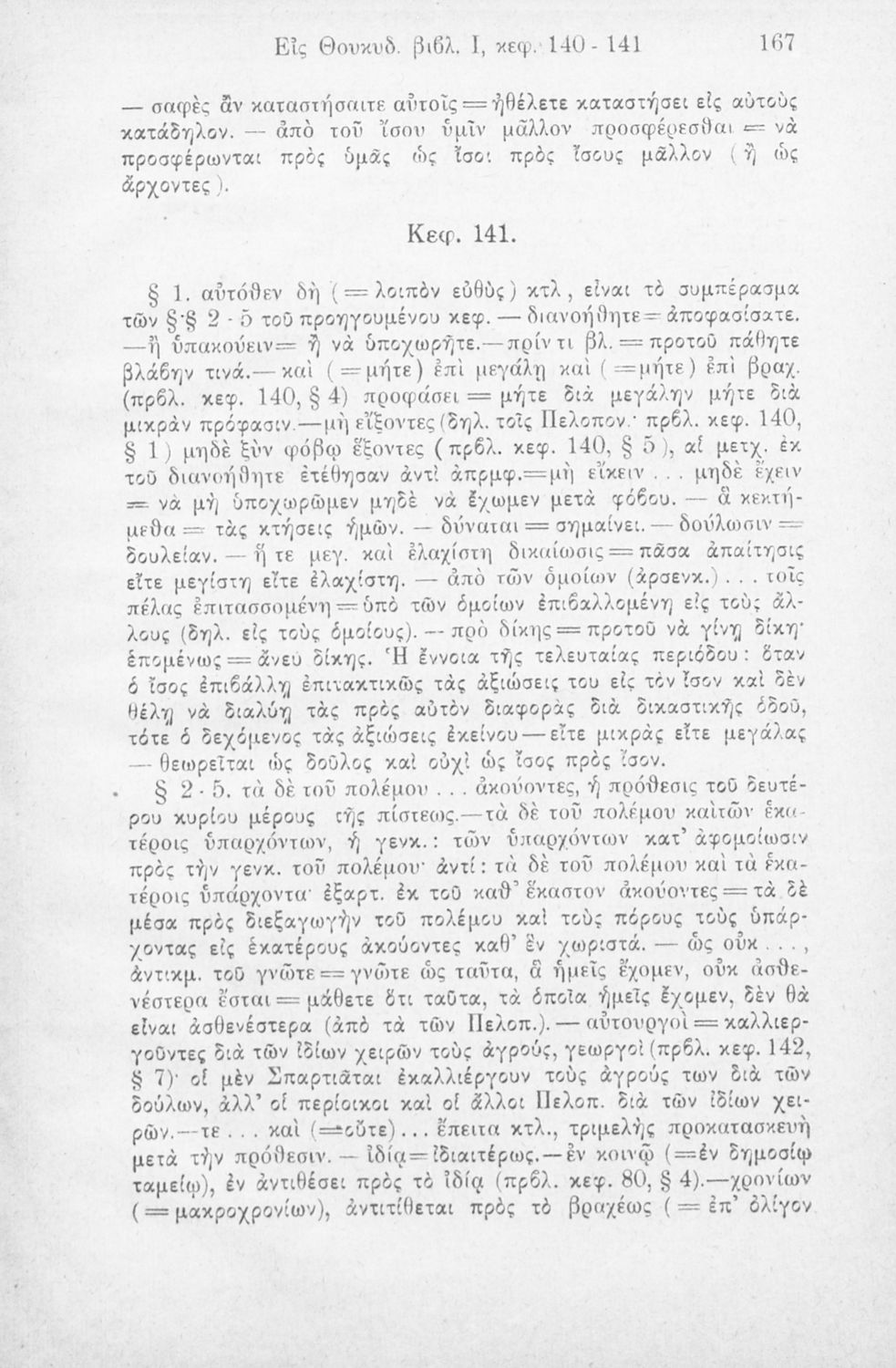 Σχολικό εγχειρίδιο Αρχαίων Ελληνικών Β΄ και Γ΄ Γυμνασίου που περιλαμβάνει εισαγωγή στη ζωή και το έργο του Θουκυδίδη, αποσπάσματα από το πρώτο βιβλίο της Ιστορίας, και ερμηνευτικά, πραγματολογικά και γλωσσικά σχόλια.