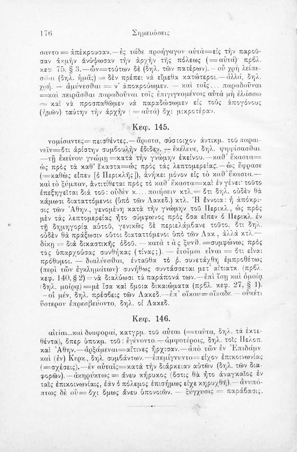 Βαθμίδα εκπαίδευσης: Δευτεροβάθμια Τάξη: Β' Γυμνασίου / Γ' Γυμνασίου Μάθημα: Αρχαία Ελληνικά Γλώσσα: Καθαρεύουσα Παρουσίαση περιεχομένου: Σχολικό εγχειρίδιο Αρχαίων Ελληνικών Β΄ και Γ΄ Γυμνασίου που περιλαμβάνει εισαγωγή στη ζωή και το έργο του Θουκυδίδη, αποσπάσματα από το πρώτο βιβλίο της Ιστορίας, και ερμηνευτικά, πραγματολογικά και γλωσσικά σχόλια. |