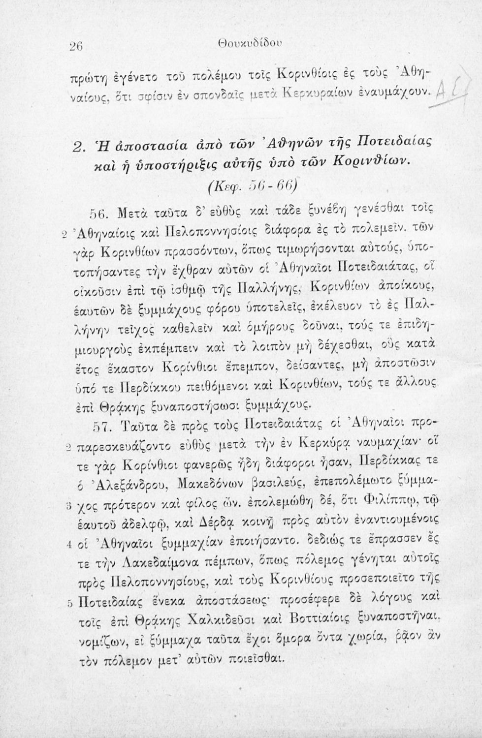 Σχολικό εγχειρίδιο Αρχαίων Ελληνικών Β΄ και Γ΄ Γυμνασίου που περιλαμβάνει εισαγωγή στη ζωή και το έργο του Θουκυδίδη, αποσπάσματα από το πρώτο βιβλίο της Ιστορίας, και ερμηνευτικά, πραγματολογικά και γλωσσικά σχόλια.