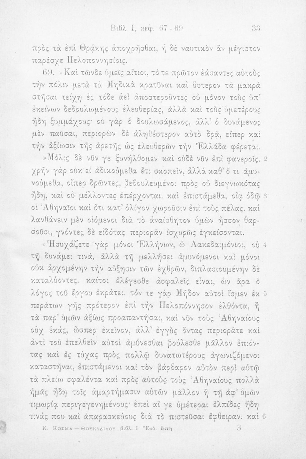 Θουκυδίδου Το πρώτον βιβλίον κατ' εκλογήν εκδοθέν δια την Β΄ και Γ΄ τάξιν των Γυμνασίων