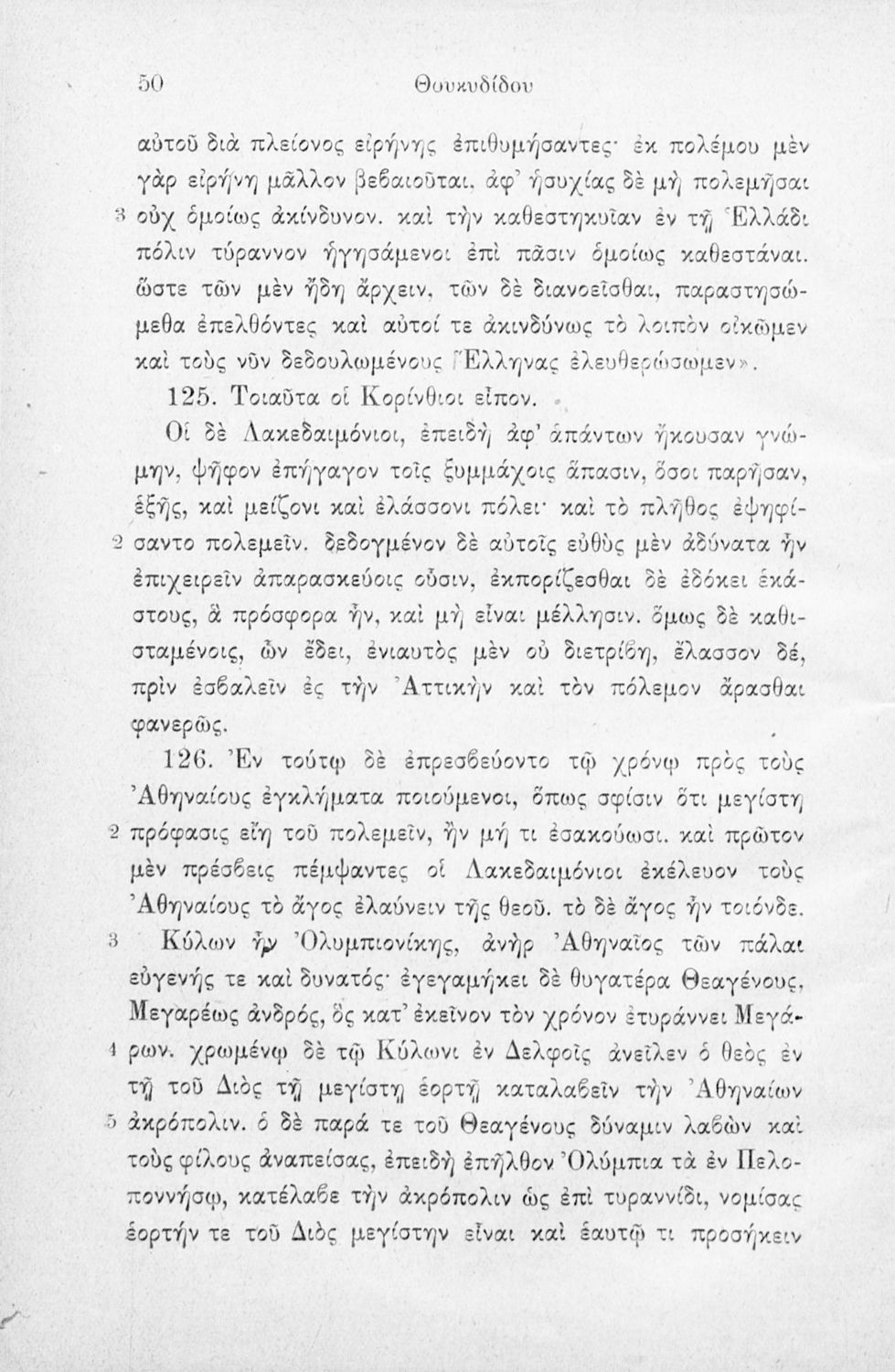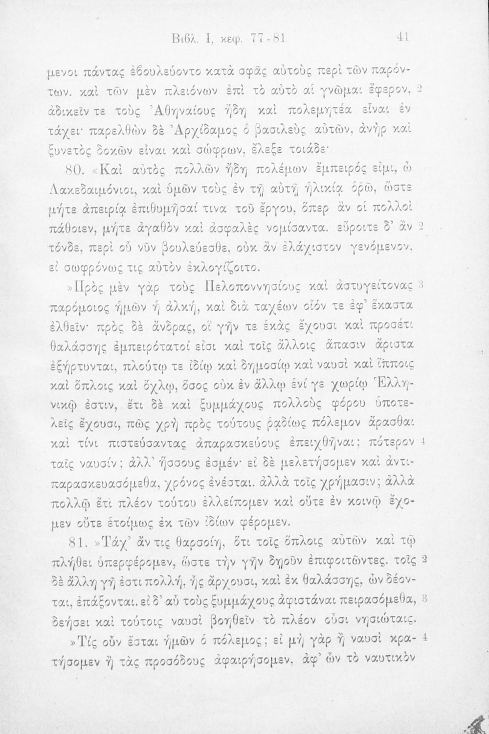 Σχολικό εγχειρίδιο Αρχαίων Ελληνικών Β΄ και Γ΄ Γυμνασίου που περιλαμβάνει εισαγωγή στη ζωή και το έργο του Θουκυδίδη, αποσπάσματα από το πρώτο βιβλίο της Ιστορίας, και ερμηνευτικά, πραγματολογικά και γλωσσικά σχόλια.
