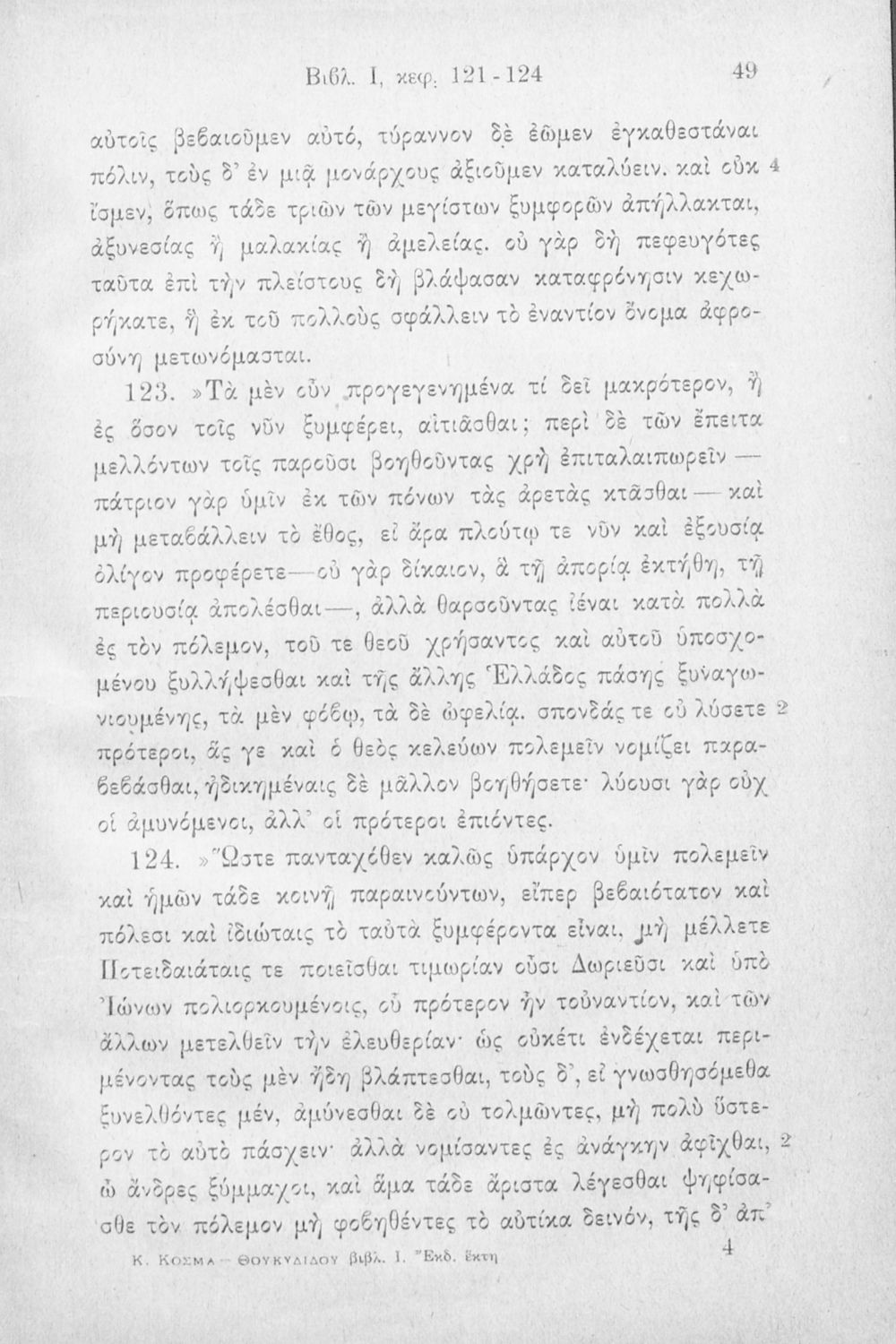 Θουκυδίδου Το πρώτον βιβλίον κατ' εκλογήν εκδοθέν δια την Β΄ και Γ΄ τάξιν των Γυμνασίων