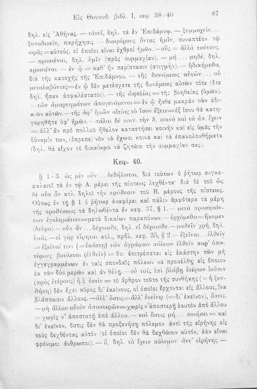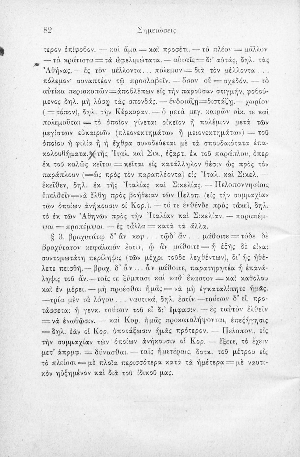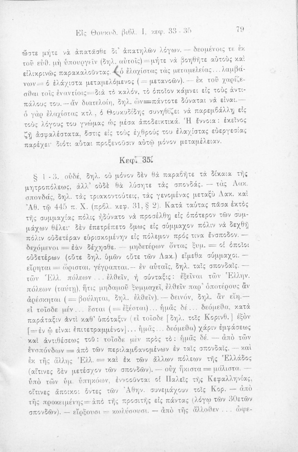 Σχολικό εγχειρίδιο Αρχαίων Ελληνικών Β΄ και Γ΄ Γυμνασίου που περιλαμβάνει εισαγωγή στη ζωή και το έργο του Θουκυδίδη, αποσπάσματα από το πρώτο βιβλίο της Ιστορίας, και ερμηνευτικά, πραγματολογικά και γλωσσικά σχόλια.