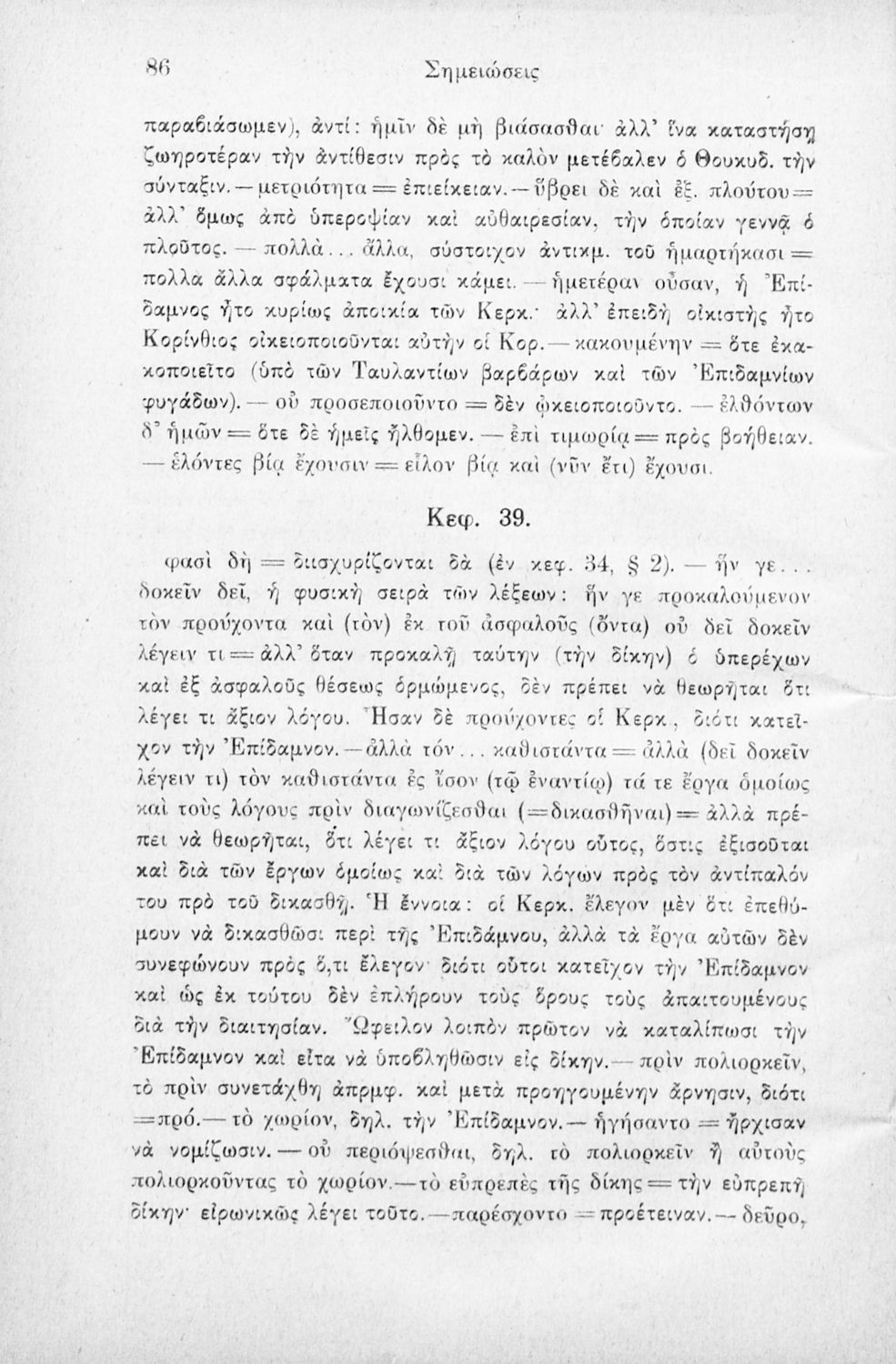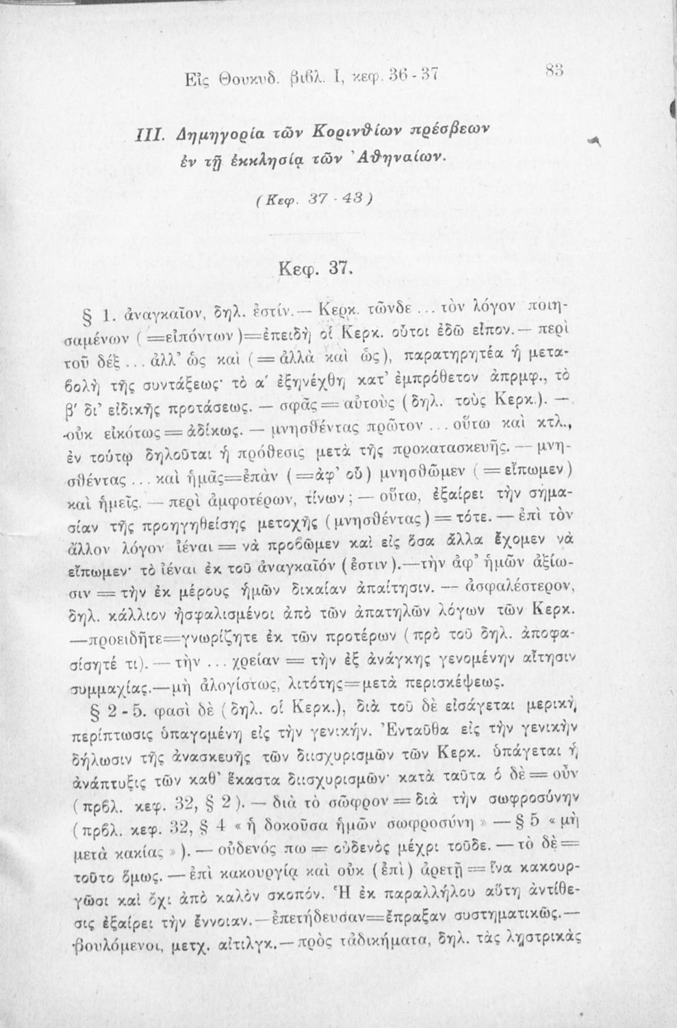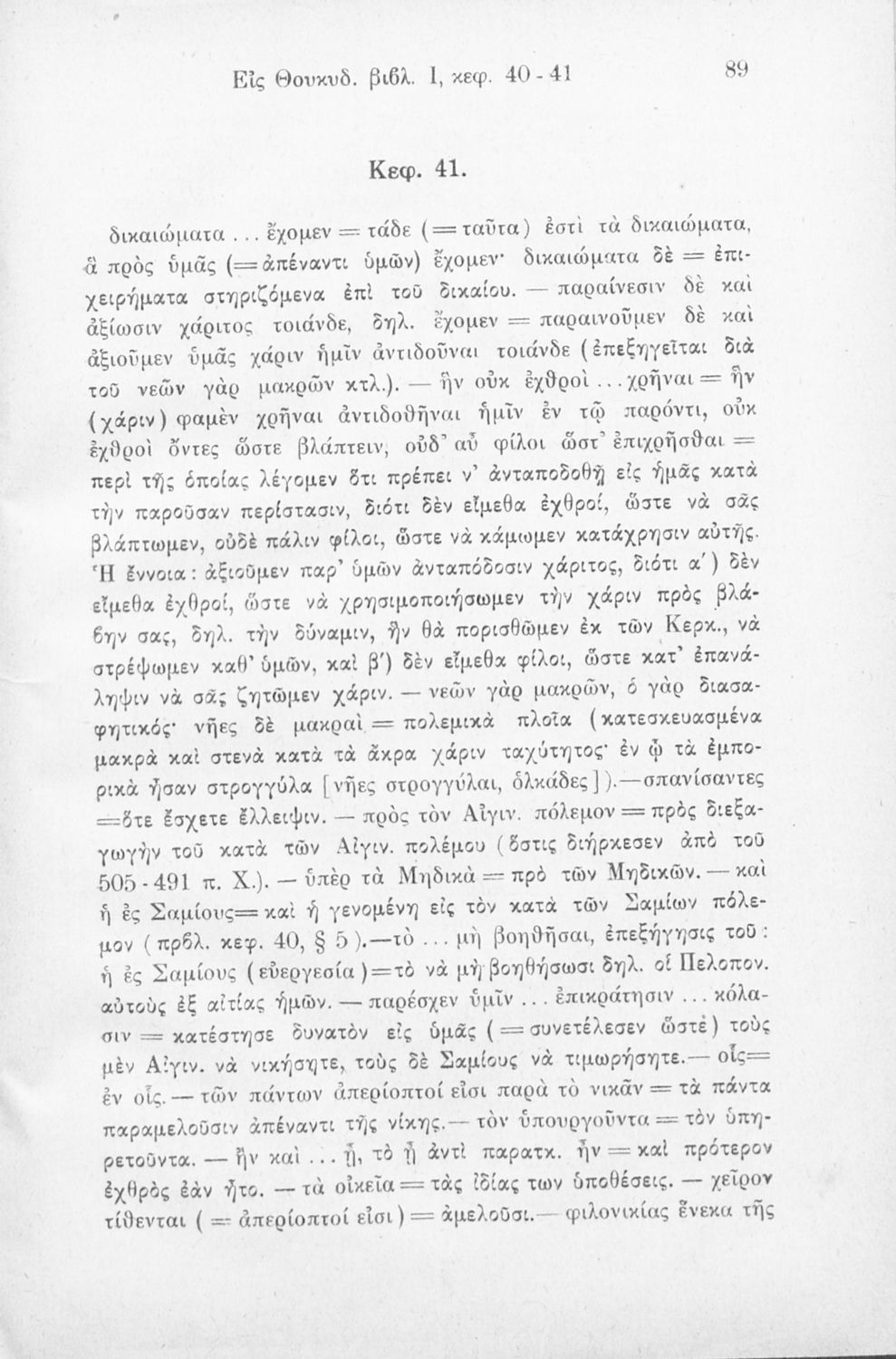Σχολικό εγχειρίδιο Αρχαίων Ελληνικών Β΄ και Γ΄ Γυμνασίου που περιλαμβάνει εισαγωγή στη ζωή και το έργο του Θουκυδίδη, αποσπάσματα από το πρώτο βιβλίο της Ιστορίας, και ερμηνευτικά, πραγματολογικά και γλωσσικά σχόλια.