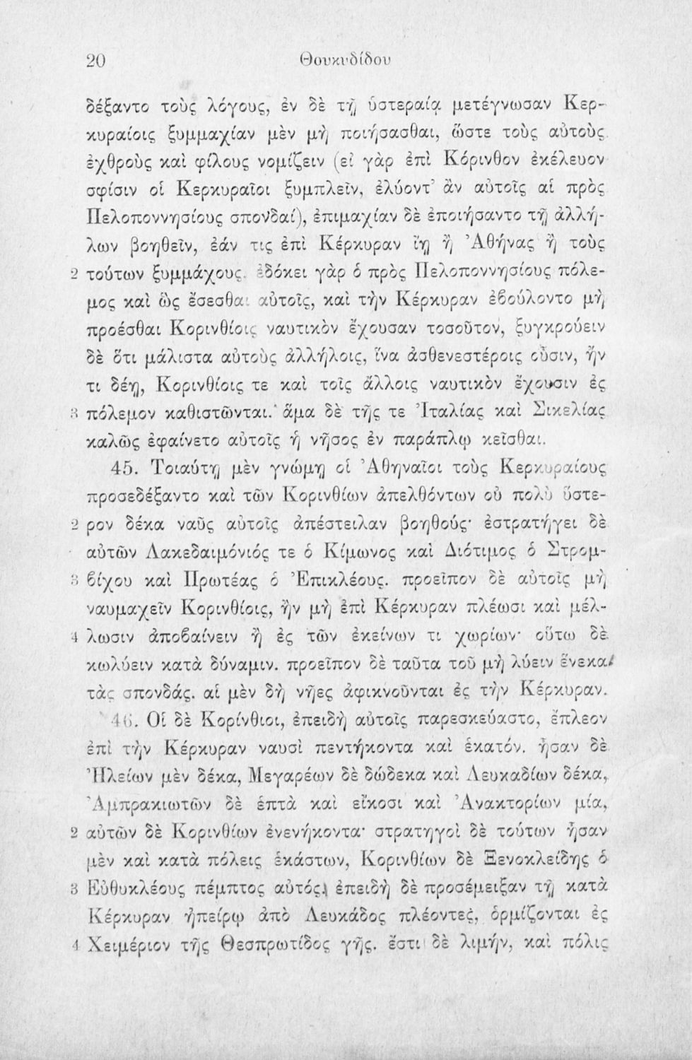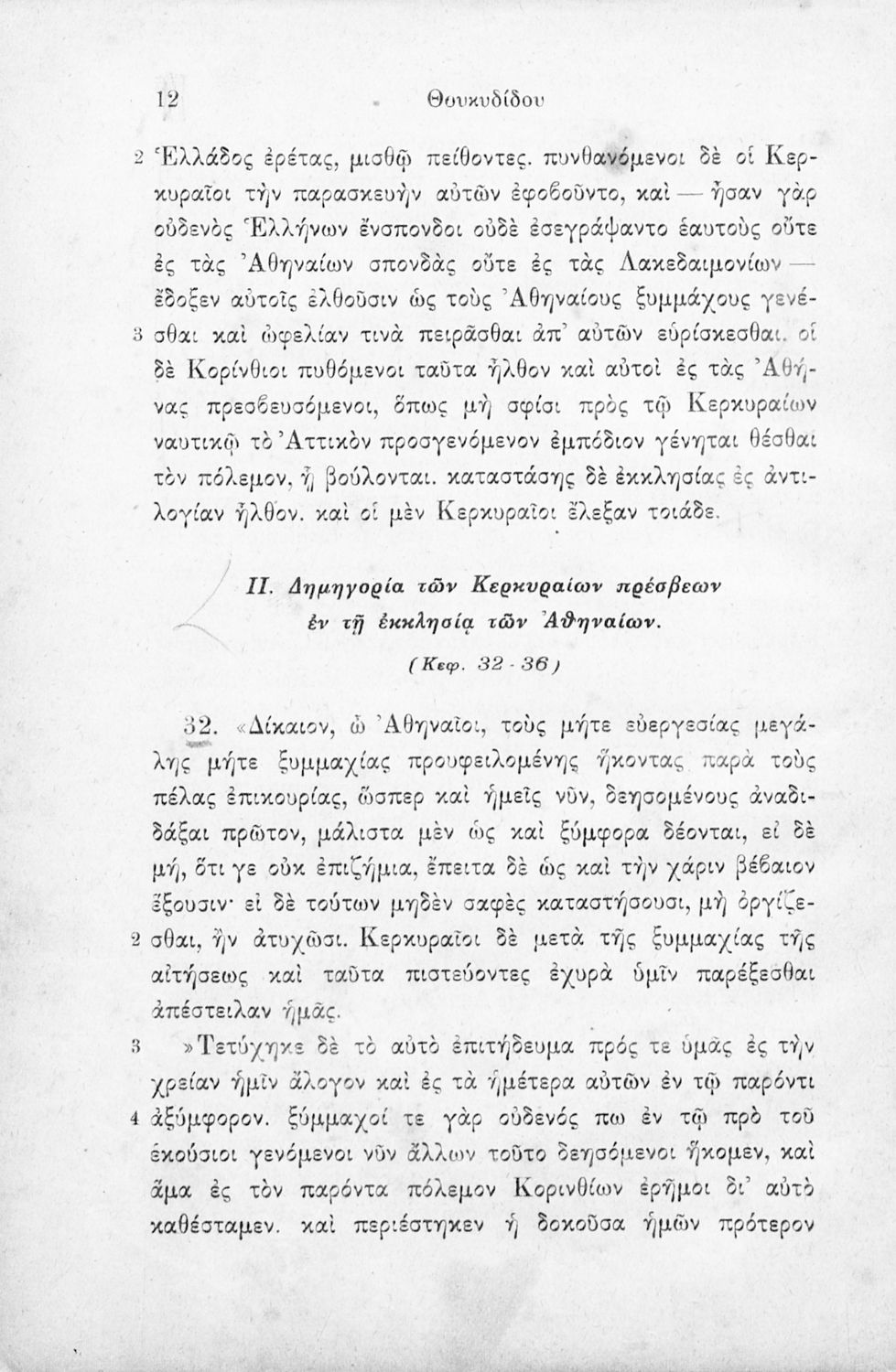 Σχολικό εγχειρίδιο Αρχαίων Ελληνικών για τις Β΄ και Γ΄ Γυμνασίου που περιλαμβάνει σύντομο βιογραφικό σημείωμα του Θουκυδίδη, εισαγωγικά σχόλια στο έργο, κείμενο και ετυμολογικό λεξιλόγιο.