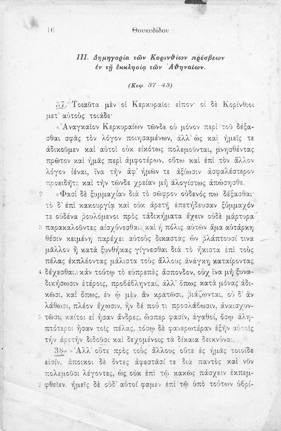 Θουκυδίδου Το πρώτον βιβλίον κατ' εκλογήν εκδοθέν δια την Β΄ και Γ΄ τάξιν των Γυμνασίων