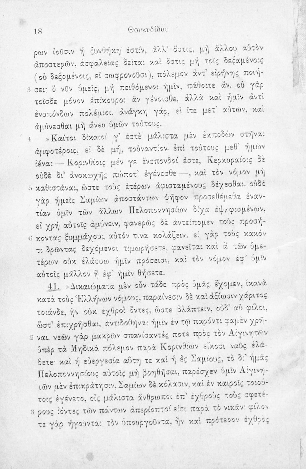 Σχολικό εγχειρίδιο Αρχαίων Ελληνικών Β΄ και Γ΄ Γυμνασίου που περιλαμβάνει εισαγωγή στη ζωή και το έργο του Θουκυδίδη, αποσπάσματα από το πρώτο βιβλίο της Ιστορίας, και ερμηνευτικά, πραγματολογικά και γλωσσικά σχόλια.