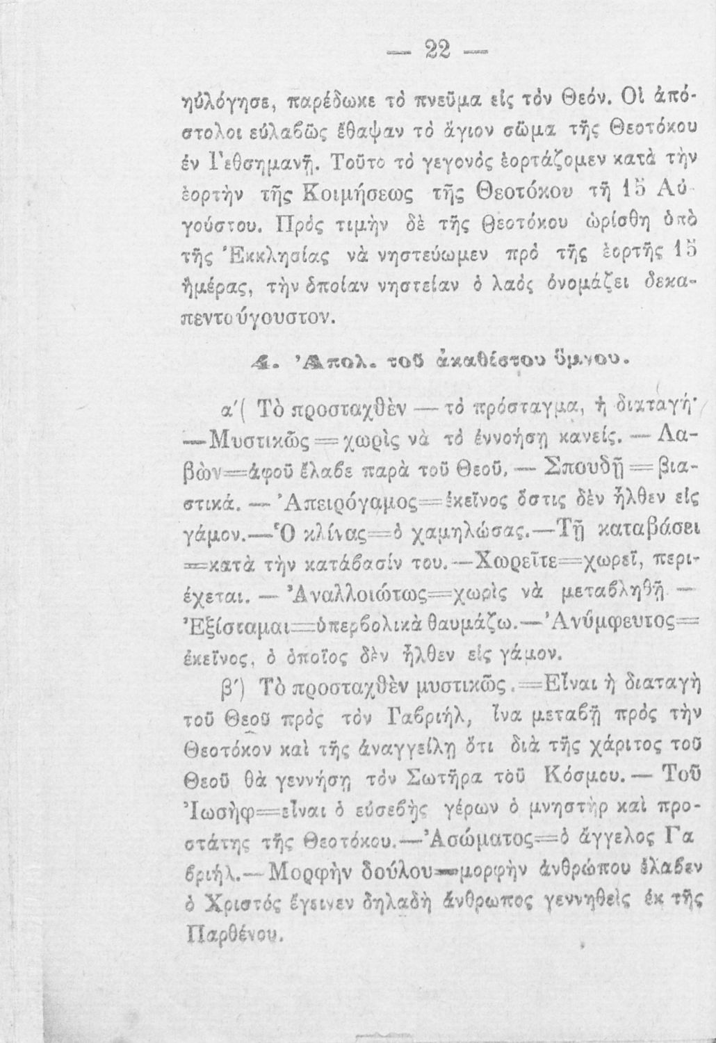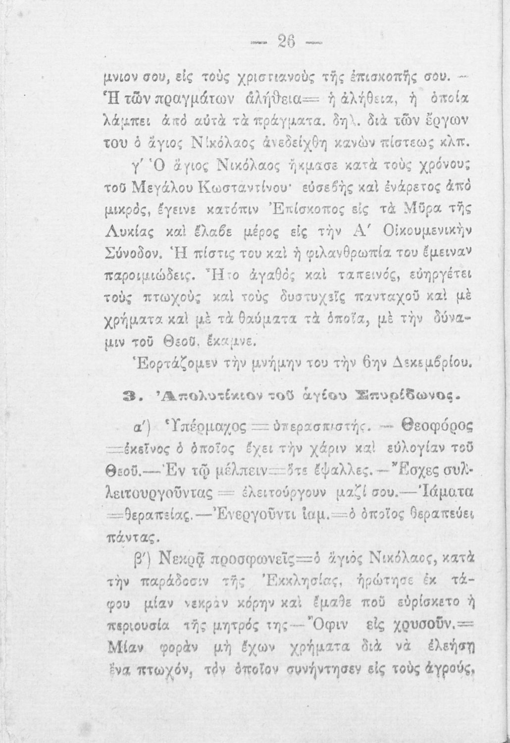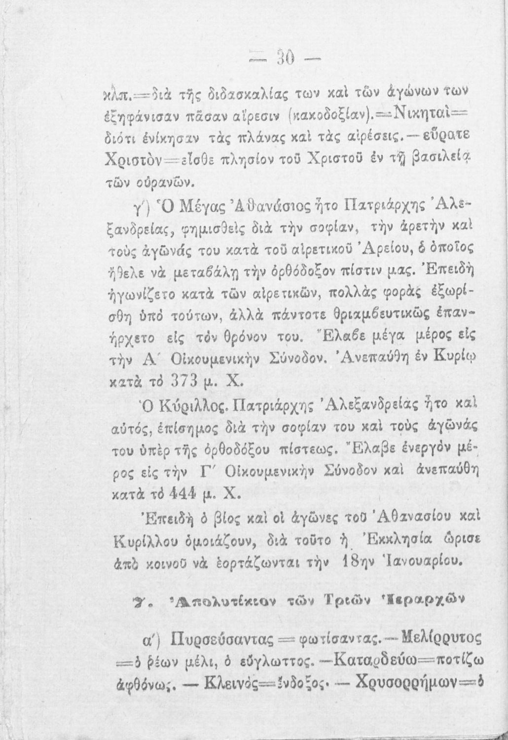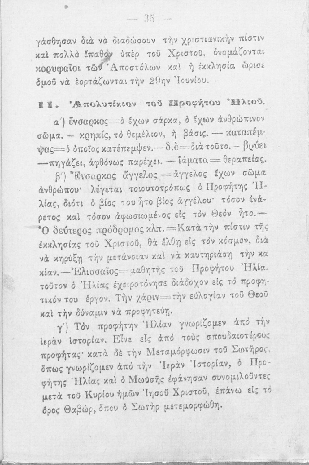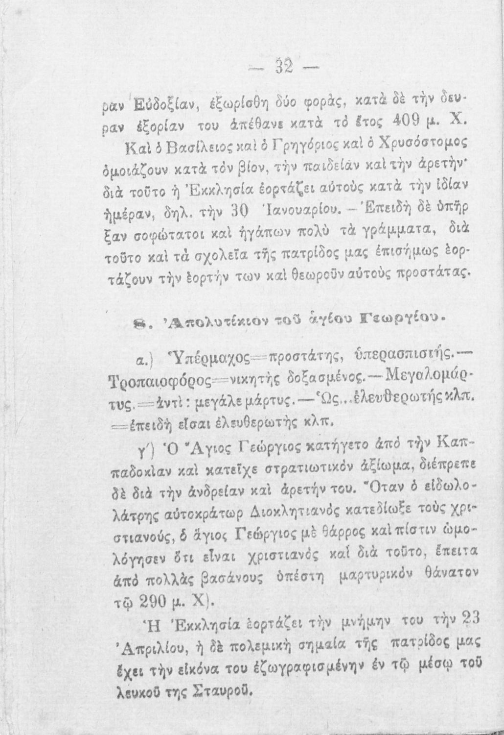 Σχολικό εγχειρίδιο Θρησκευτικών για την Α' Ελληνικού Σχολείου και Παρθεναγωγείου που περιέχει τα απολυτίκια των Θεομητορικών εορτών, των επιφανών Αγίων, αναφορές στις εορτές της Εκκλησίας και ερμηνευτικές σημειώσεις.