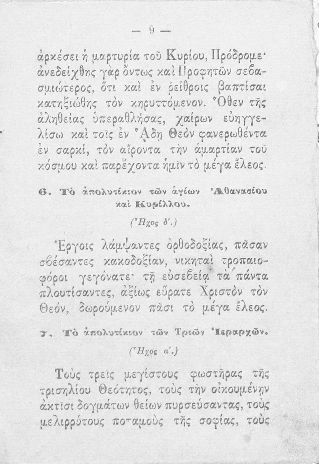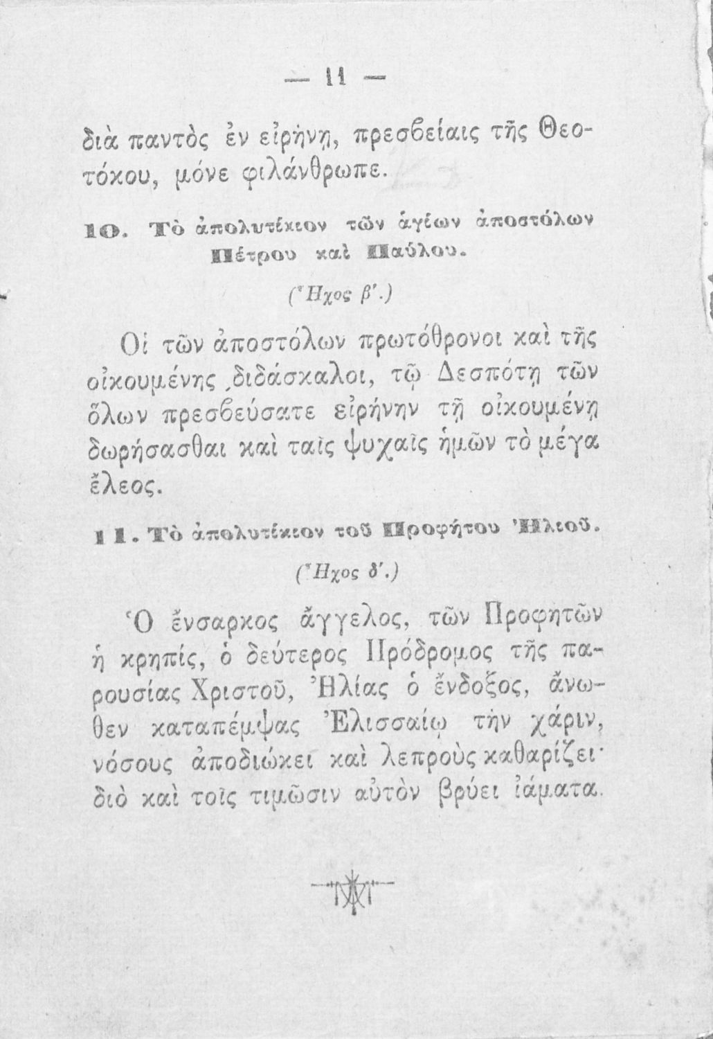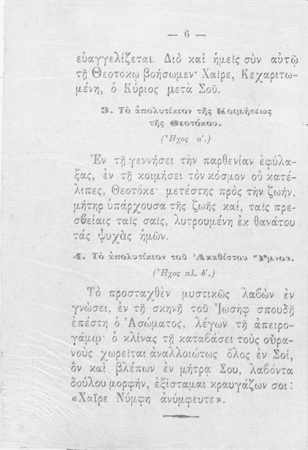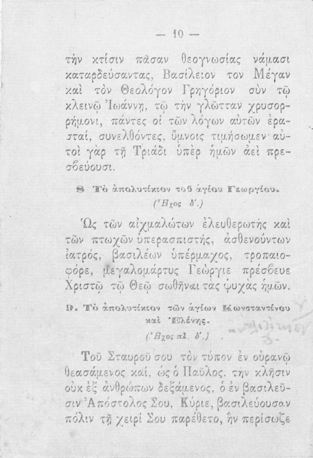 Σχολικό εγχειρίδιο Θρησκευτικών για την Α' Ελληνικού Σχολείου και Παρθεναγωγείου που περιέχει τα απολυτίκια των Θεομητορικών εορτών, των επιφανών Αγίων, αναφορές στις εορτές της Εκκλησίας και ερμηνευτικές σημειώσεις.