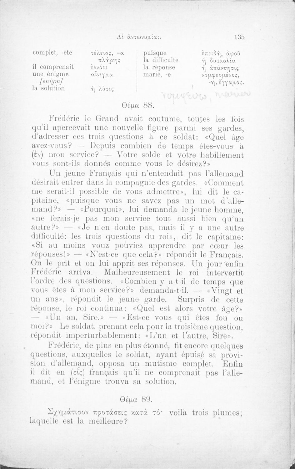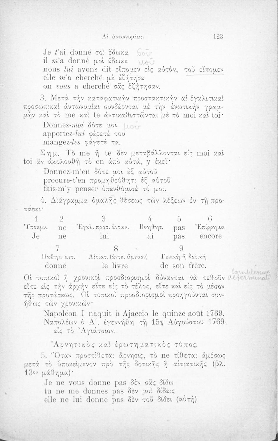 Κωδικός αναγνώρισης: 02-01866 Τίτλος: Επίτομος γραμματική της γαλλικής γλώσσης, θεωρητική άμα και πρακτική μετά πολλών ασκήσεων, διαλόγων και αναγνωσμάτων, διασκευασθείσα προς χρήσιν των Ελλήνων Συγγραφέας: Κ. Πετράρης, Αναστάσιος Ν. Μάλτος (επιμ.) Μέγεθος και υπόστρωμα: Μαθητικό βοήθημα, σκληρό εξώφυλλο, 276 σελίδες. |