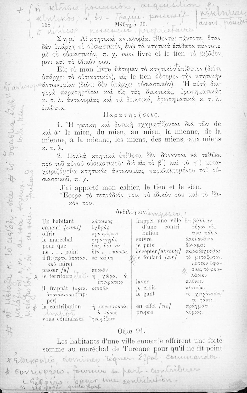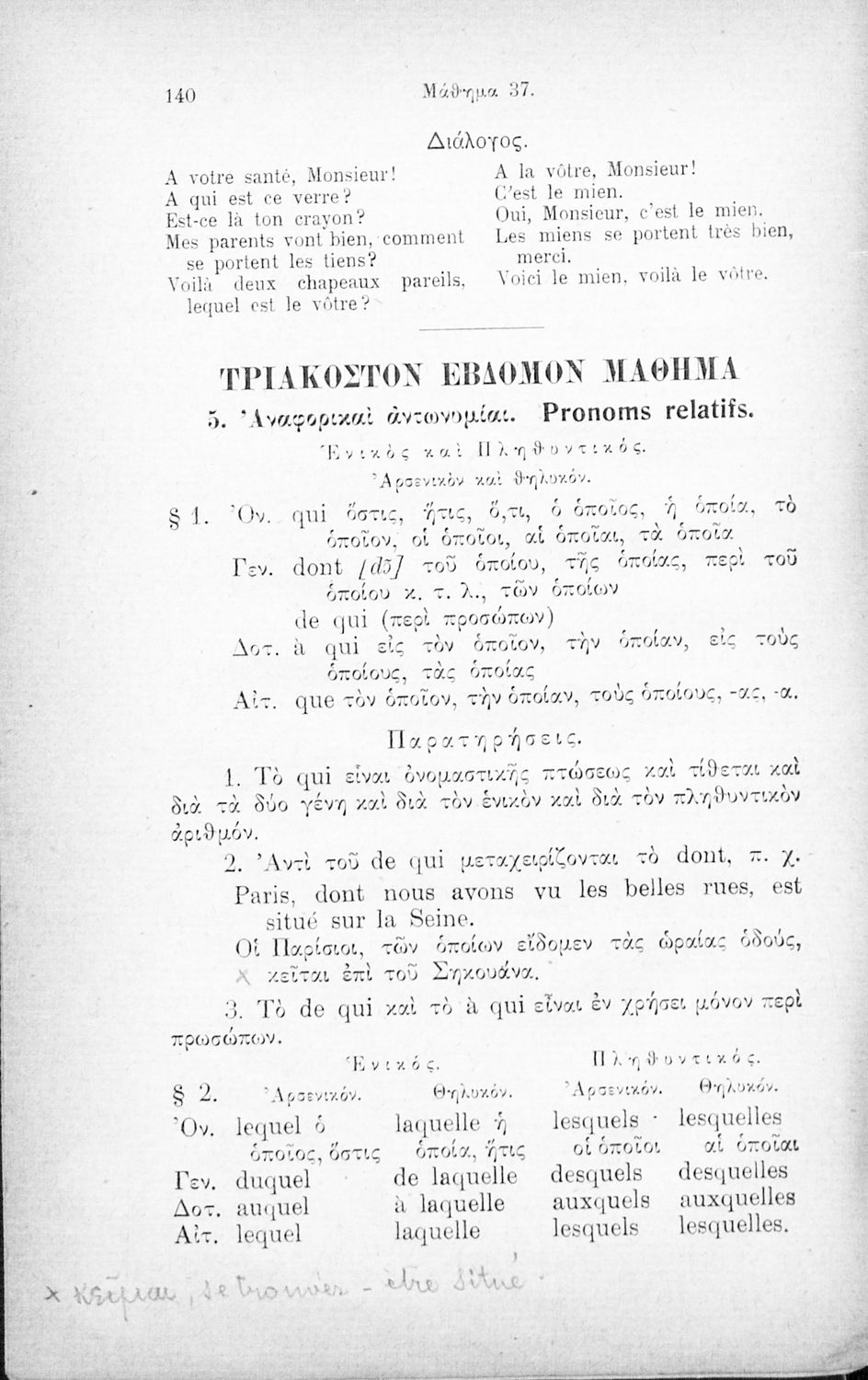 Τίτλος: Επίτομος γραμματική της γαλλικής γλώσσης, θεωρητική άμα και πρακτική μετά πολλών ασκήσεων, διαλόγων και αναγνωσμάτων, διασκευασθείσα προς χρήσιν των Ελλήνων