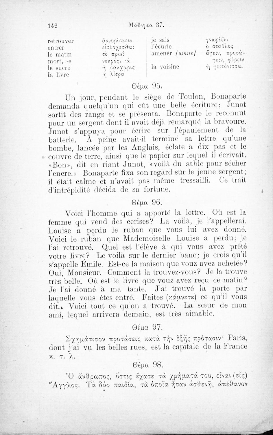 Σχολικό εγχειρίδιο Γαλλικών των Γυμνασίων, Αστικών σχολείων, Παρθεναγωγείων, Διδασκαλείων και Εμπορικών σχολών το οποίο παρουσιάζει τους βασικούς κανόνες γραμματικής μέσα από ασκήσεις και σειρά κειμένων ...
