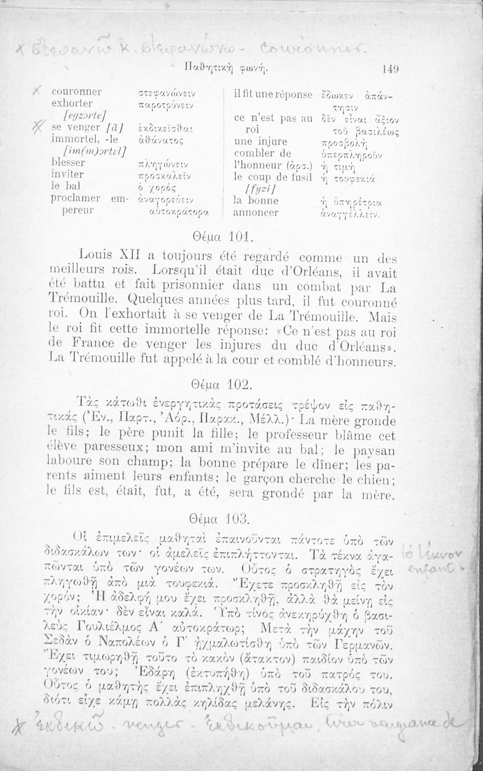 Σχολικό εγχειρίδιο για τις τάξεις των Γυμνασίων, Αστικών σχολείων, Παρθεναγωγείων, Διδασκαλεία και Εμπορικές σχολές. Το βιβλίο περιλαμβάνει ασκήσεις γραμματικής, συντακτικού και λεξιλογίου για πρακτική ...
