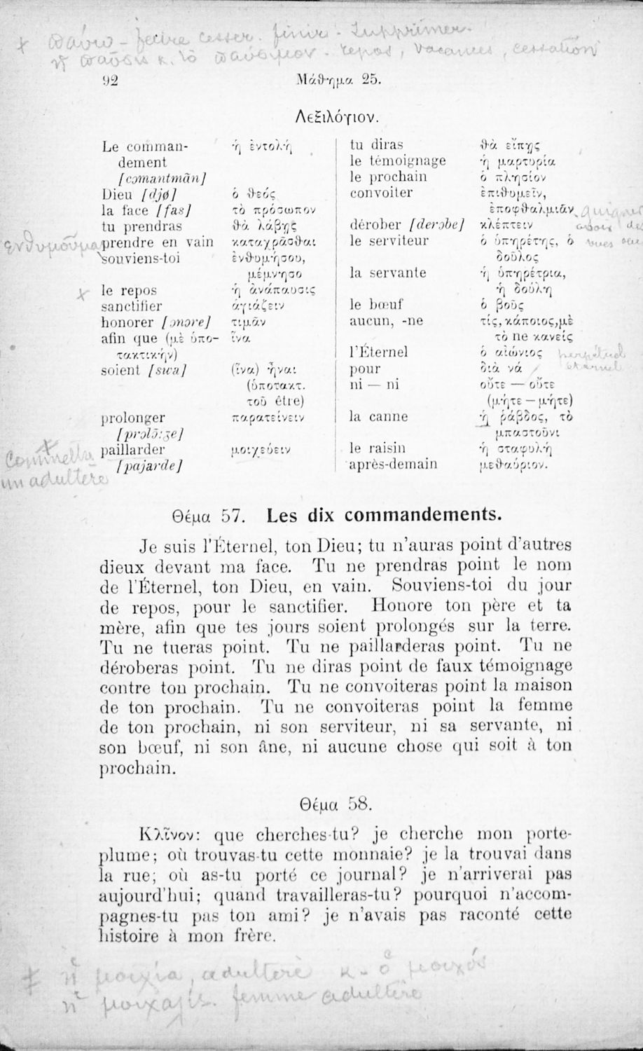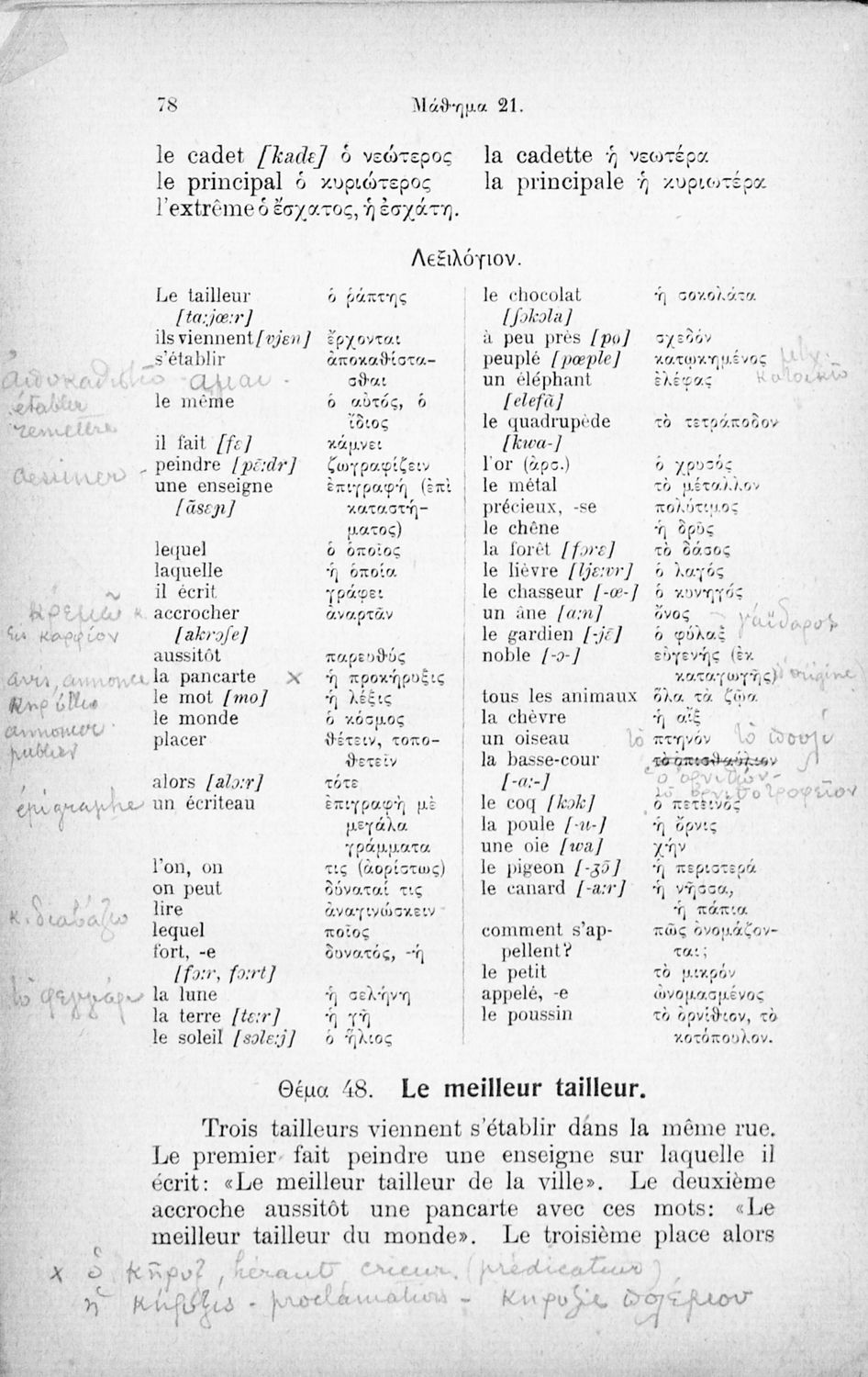 Σχολικό εγχειρίδιο Γαλλικών των Γυμνασίων, Αστικών σχολείων, Παρθεναγωγείων, Διδασκαλείων και Εμπορικών σχολών το οποίο παρουσιάζει τους βασικούς κανόνες γραμματικής μέσα από ασκήσεις και σειρά κειμένων ...