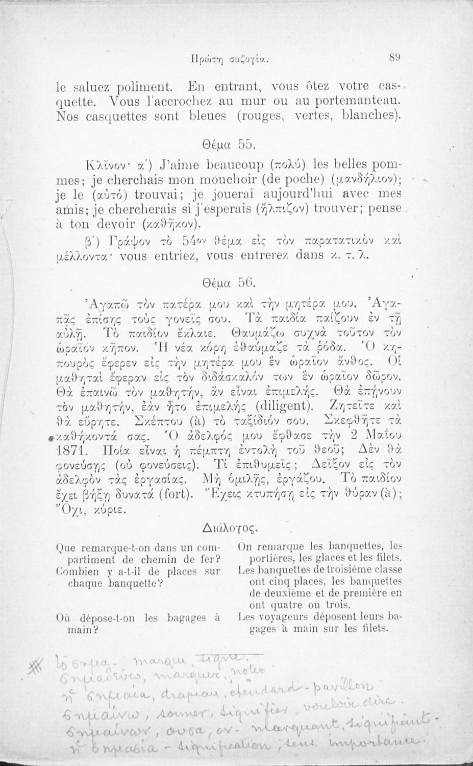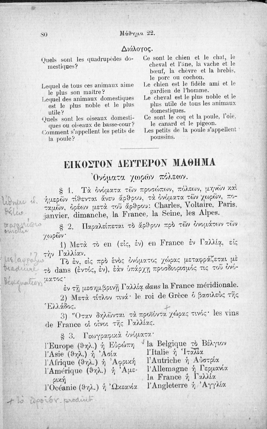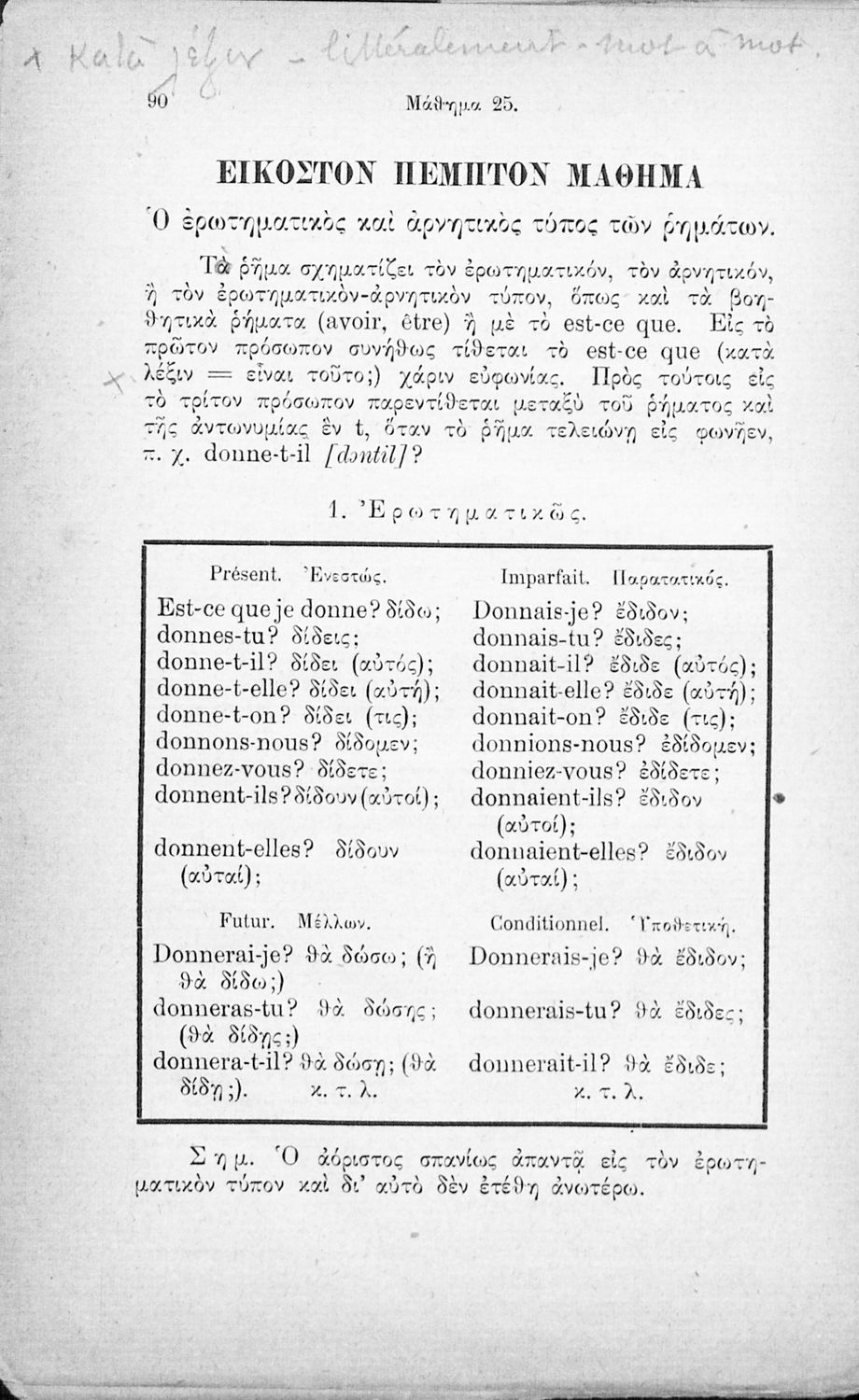 Τίτλος: Επίτομος γραμματική της γαλλικής γλώσσης, θεωρητική άμα και πρακτική μετά πολλών ασκήσεων, διαλόγων και αναγνωσμάτων, διασκευασθείσα προς χρήσιν των Ελλήνων