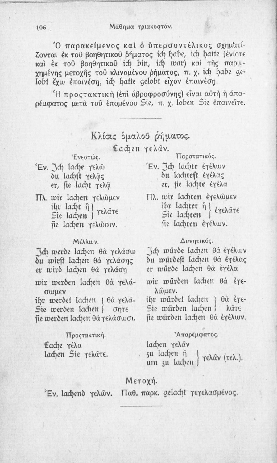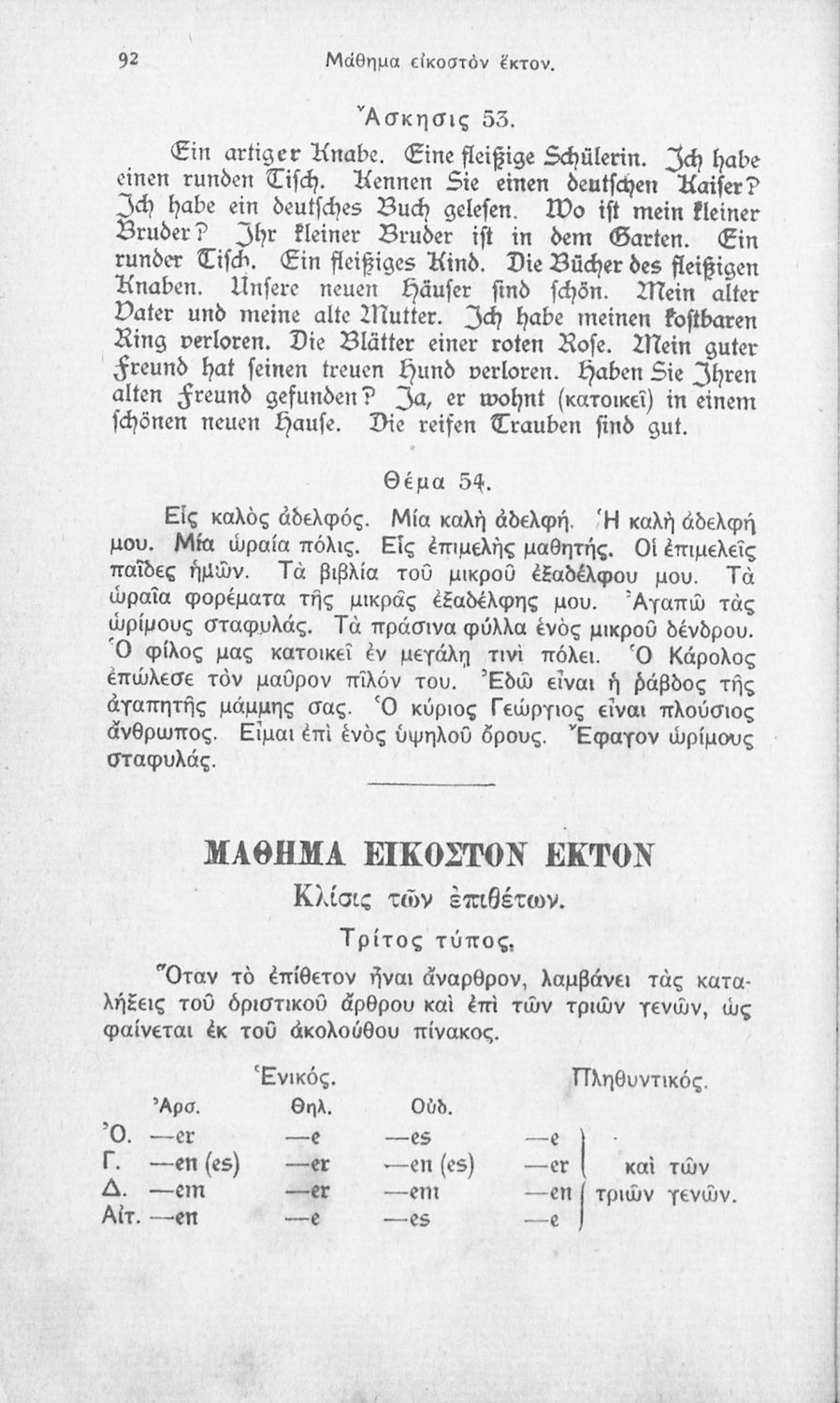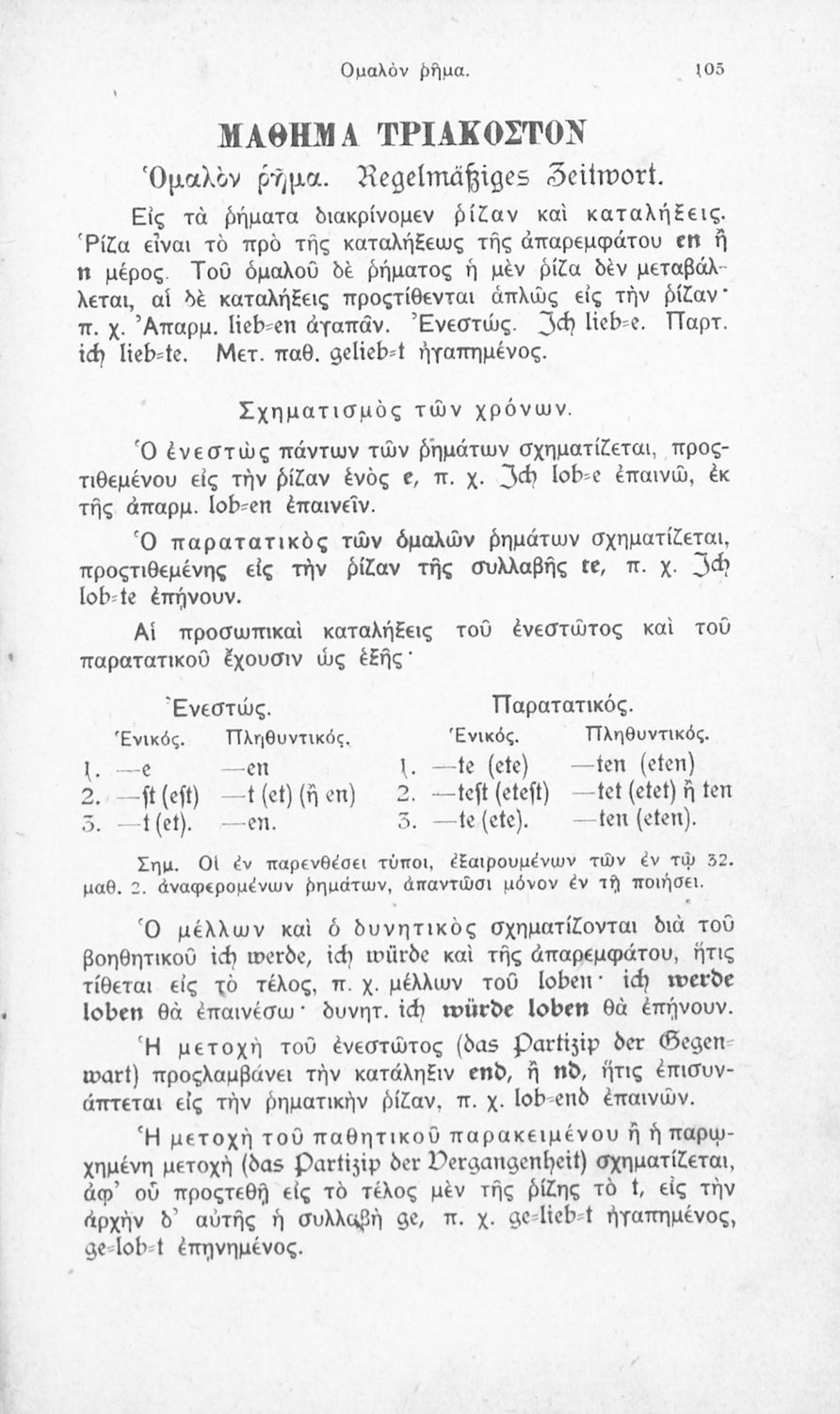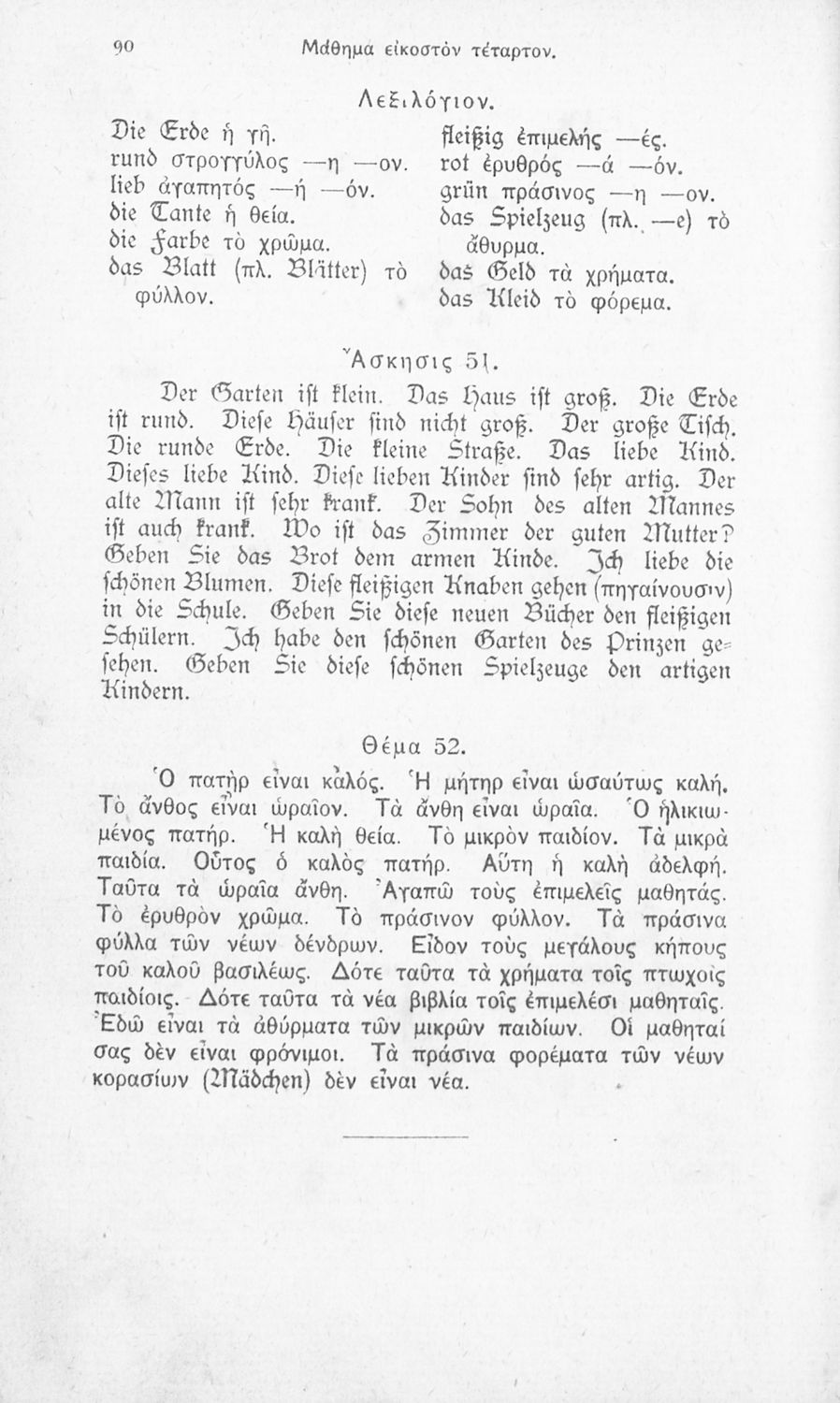 Σχολικό εγχειρίδιο Γ΄ και Δ΄ Δημοτικού που περιέχει τη γραμματικής της νέας ελληνικής. Την έκδοση επιμελήθηκε ο Γ. Λογοθέτης, τέως διευθυντής του επταταξίου δημ. Τμήμ.της Ευαγγελικής Σχολής.