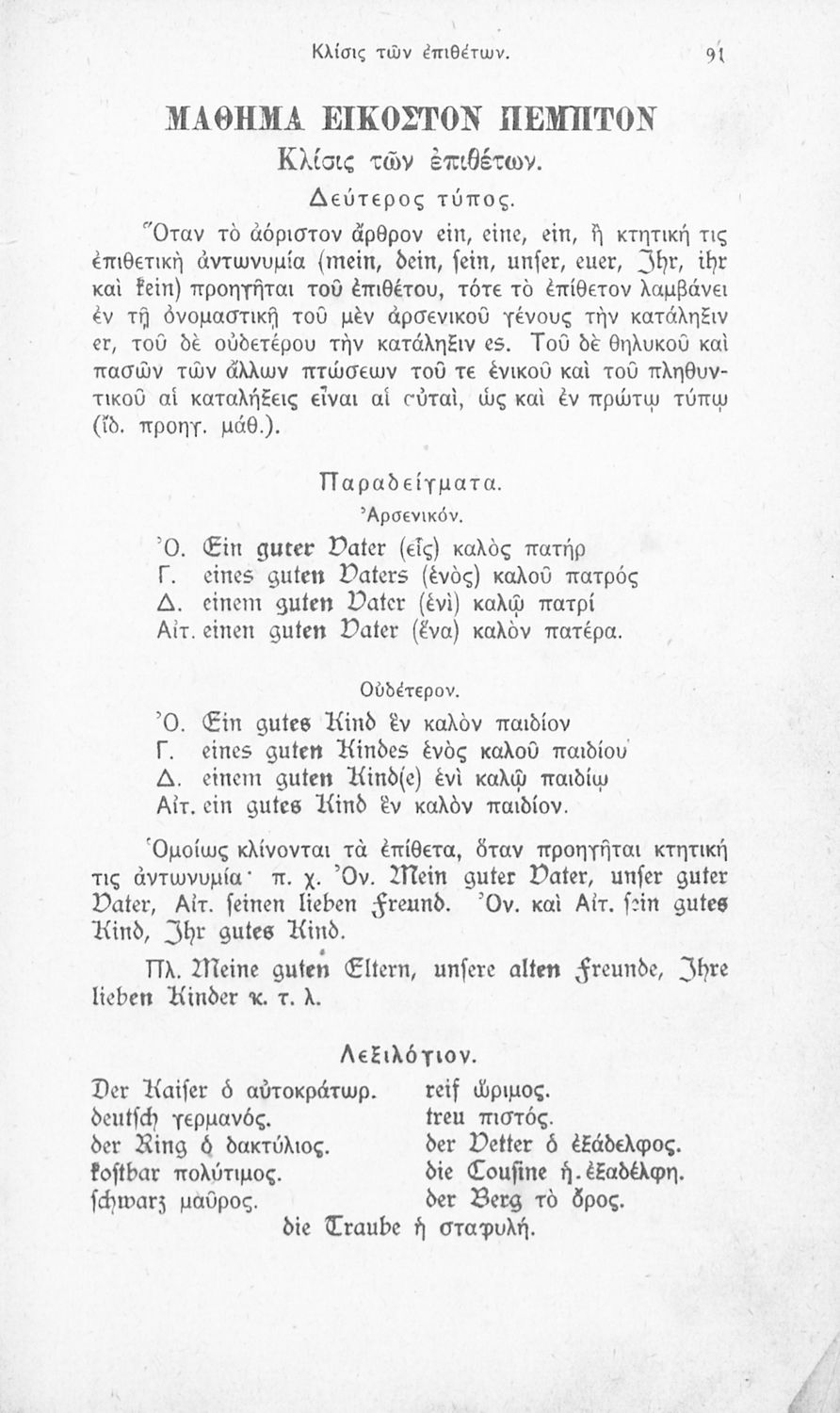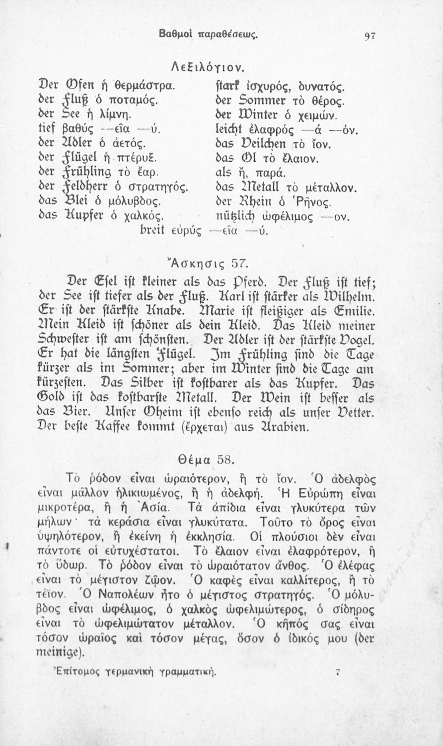 Τίτλος: Επίτομος γραμματική της γερμανικής γλώσσης, μέθοδος Gaspey-Otto-Sauer, θεωρητική άμα και πολλών ασκήσεων, διαλόγων και αναγνωσμάτων, διασκευασθείσα προς χρήσιν των Ελλήνων