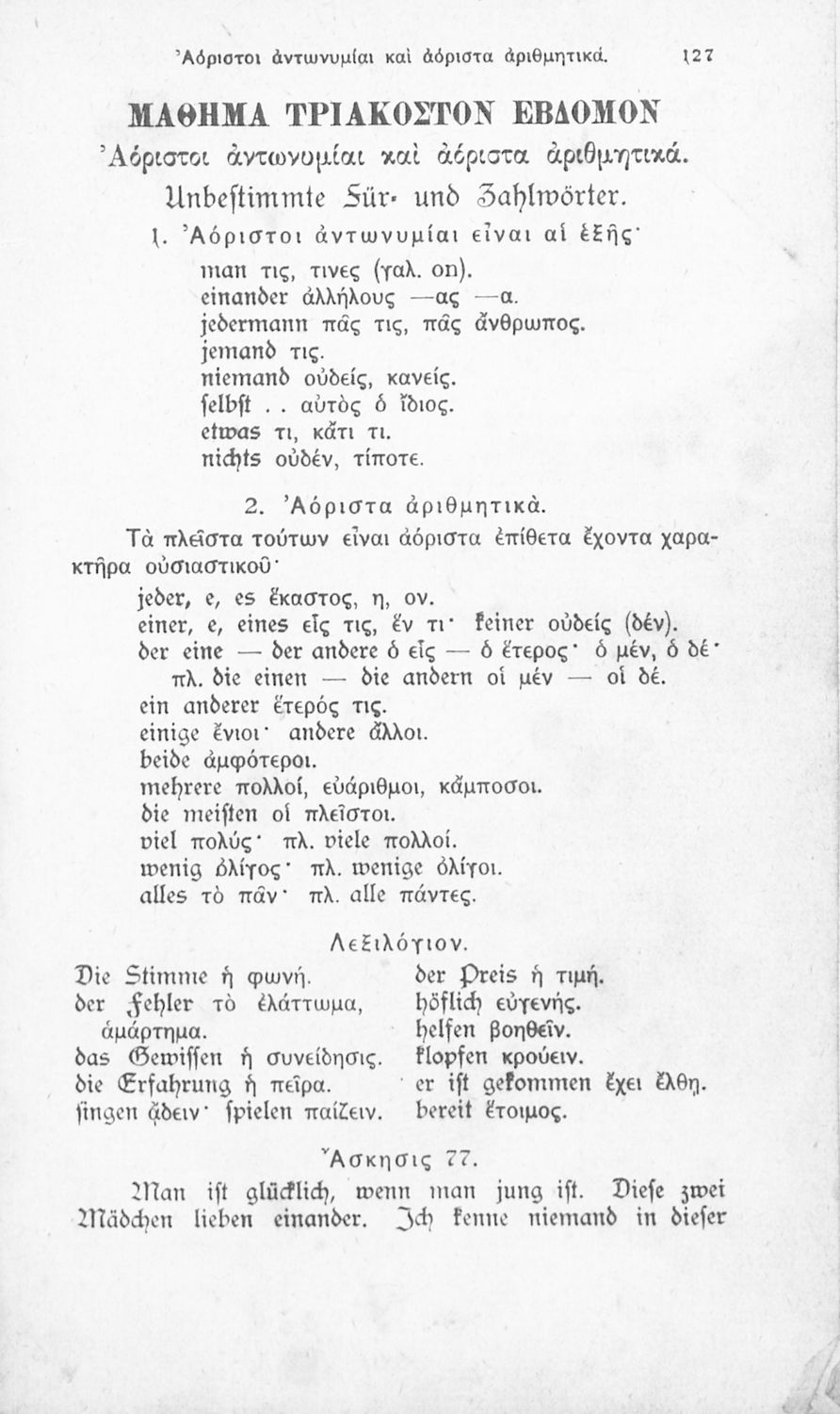 Τίτλος: Επίτομος γραμματική της γερμανικής γλώσσης, μέθοδος Gaspey-Otto-Sauer, θεωρητική άμα και πολλών ασκήσεων, διαλόγων και αναγνωσμάτων, διασκευασθείσα προς χρήσιν των Ελλήνων