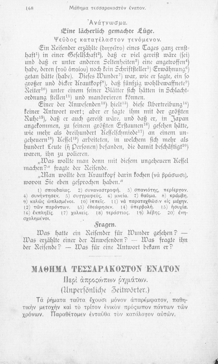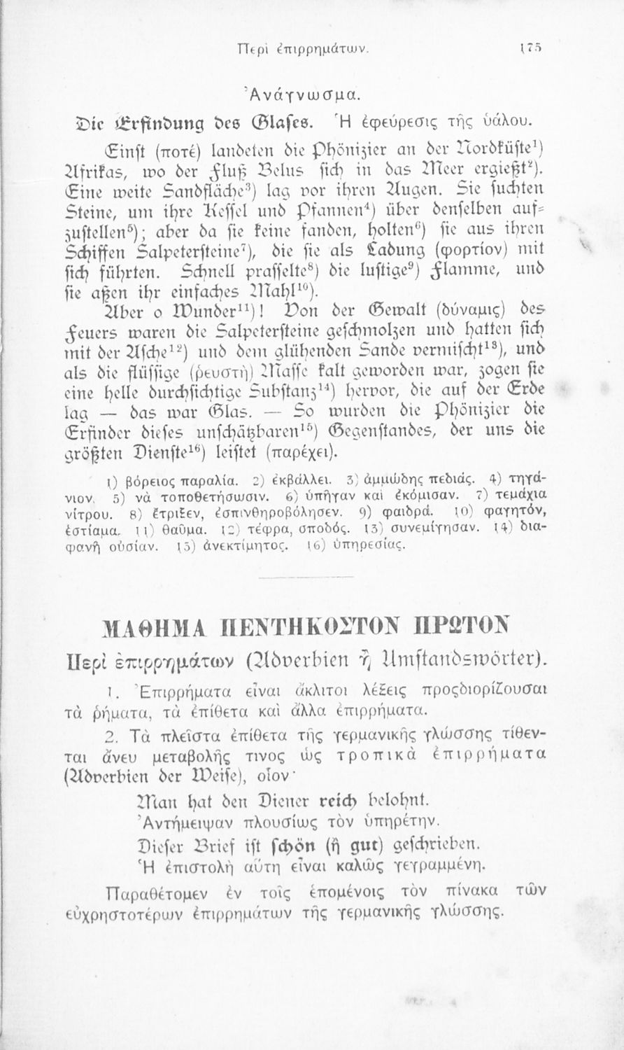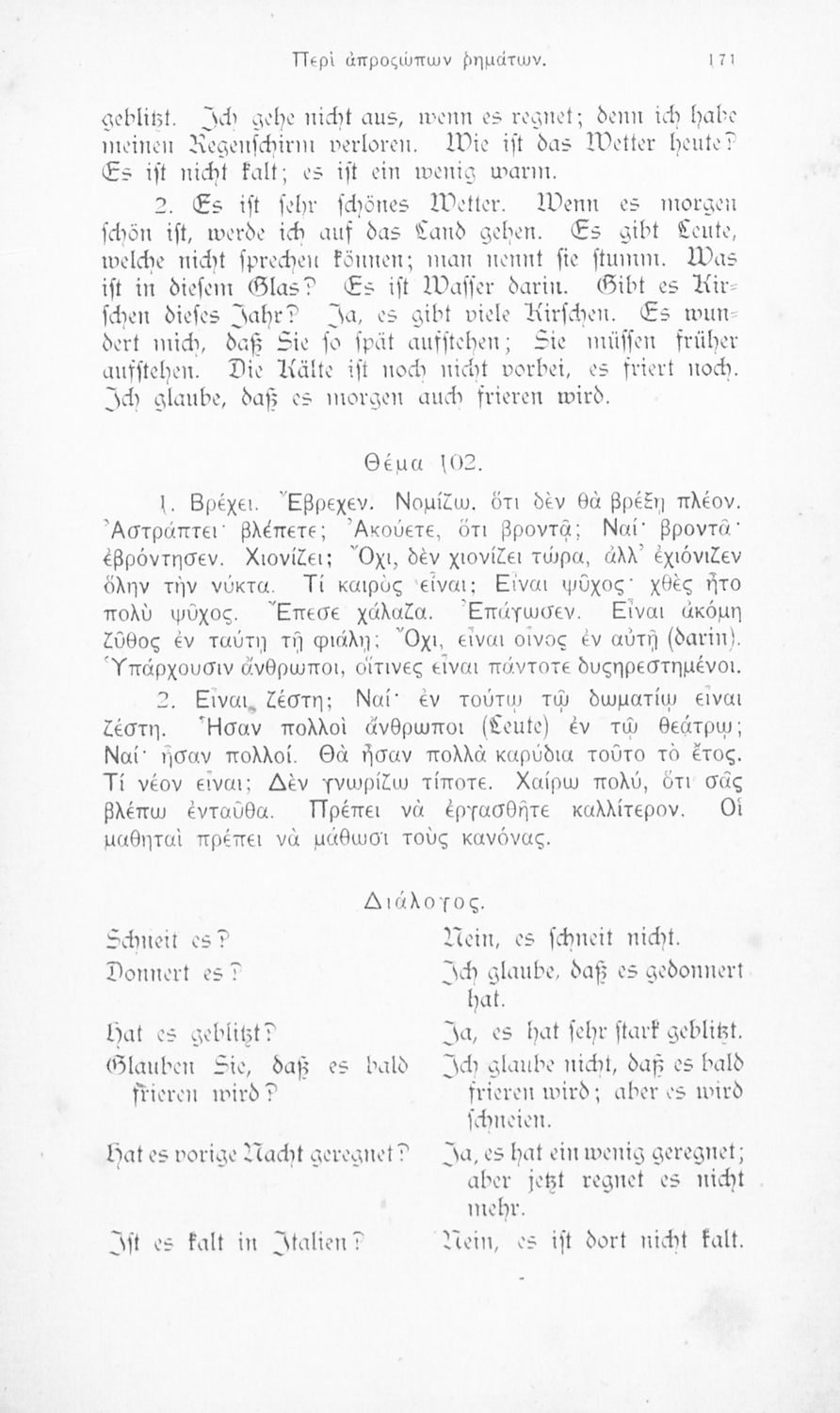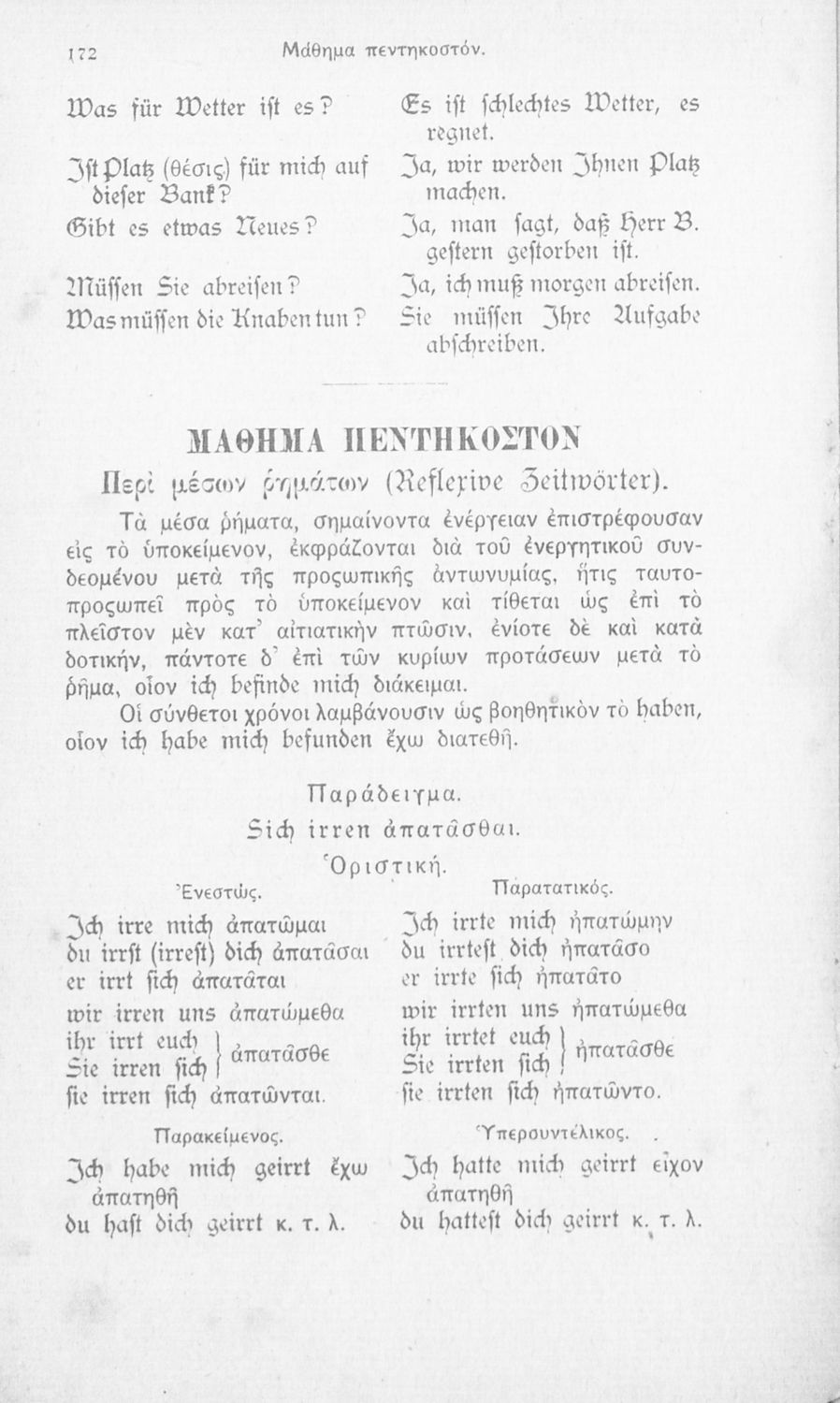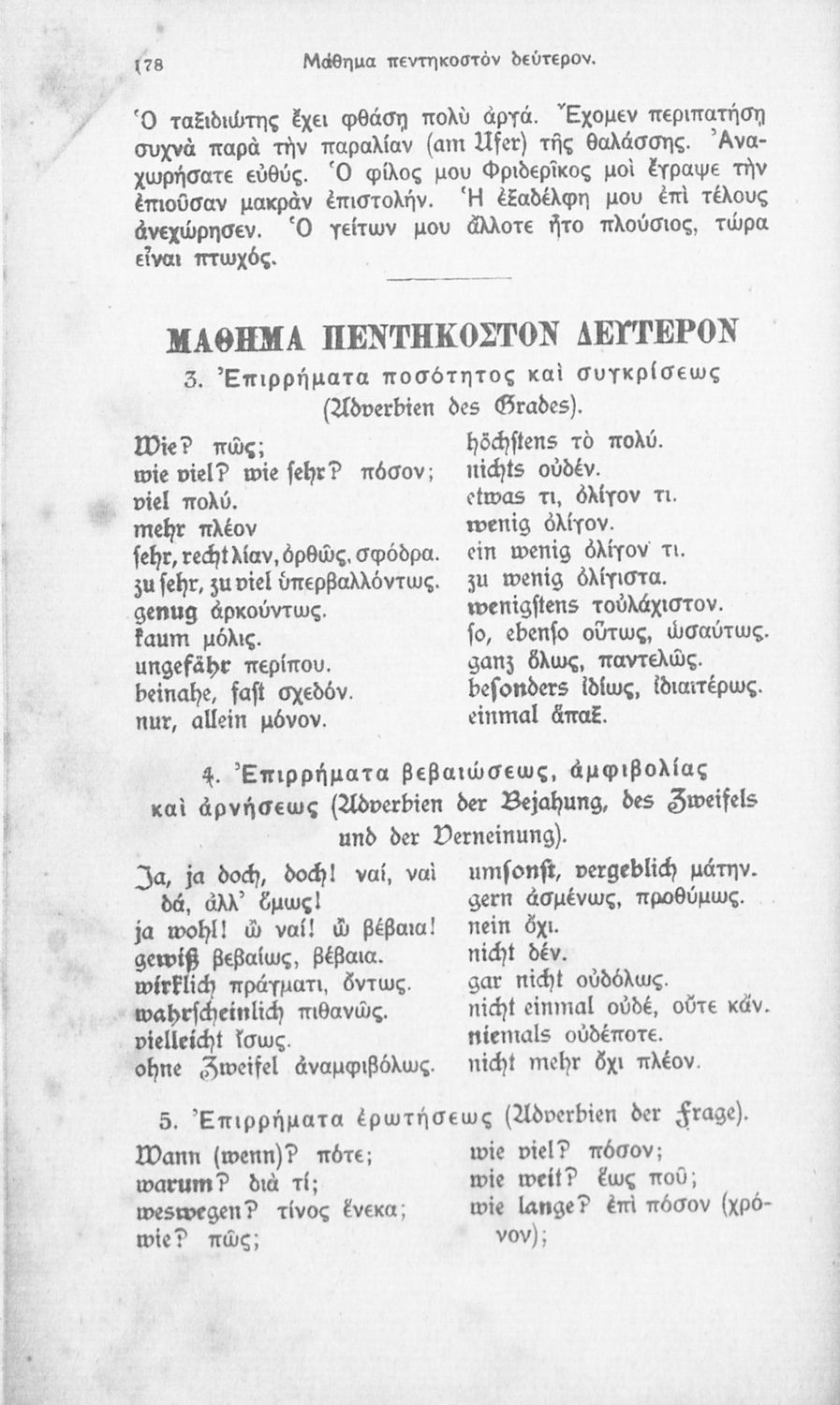 Πρόκειται για εγχειρίδιο που στόχο είχε την εκμάθηση των γραμματικών και συντακτικών φαινομένων της Γερμανικής γλώσσας με στόχο την ταχεία εκμάθησή της από Ελληνικό πληθυσμό. Φέρει λίγες προσωπικές σημειώσεις ...