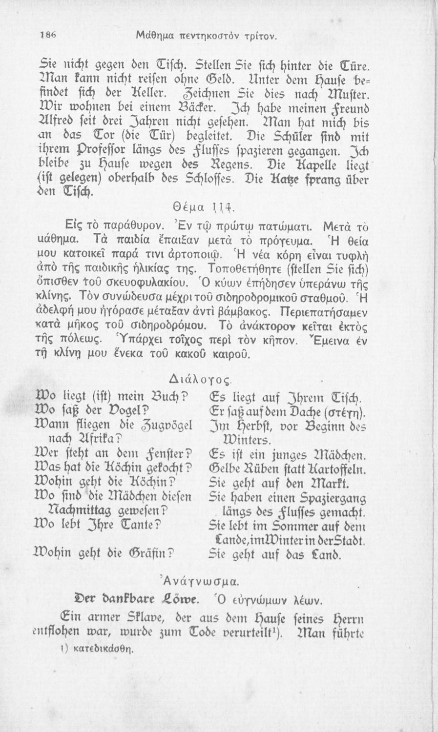 Σχολικό εγχειρίδιο Γ΄ και Δ΄ Δημοτικού που περιέχει τη γραμματικής της νέας ελληνικής. Την έκδοση επιμελήθηκε ο Γ. Λογοθέτης, τέως διευθυντής του επταταξίου δημ. Τμήμ.της Ευαγγελικής Σχολής.