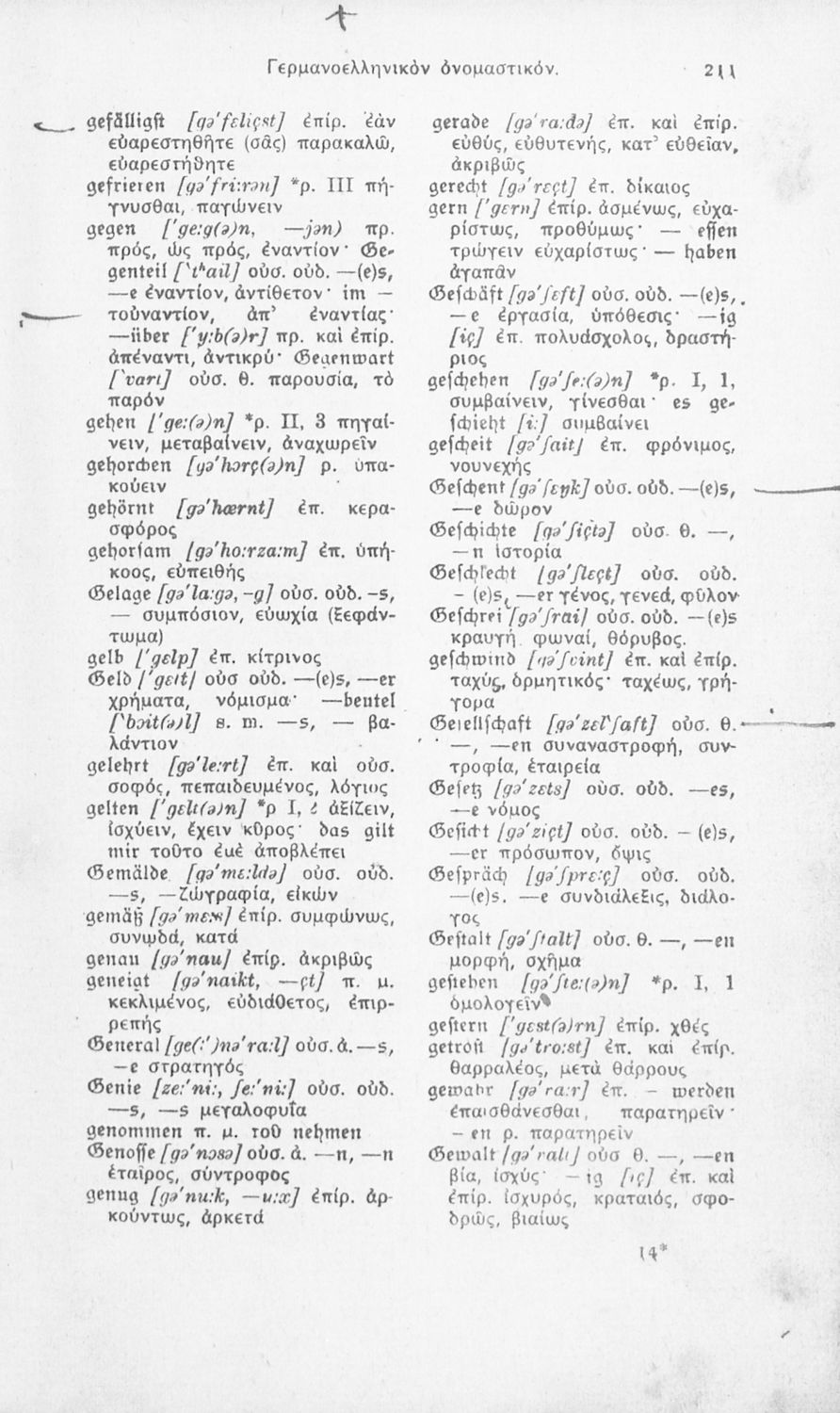 Πρόκειται για εγχειρίδιο που στόχο είχε την εκμάθηση των γραμματικών και συντακτικών φαινομένων της Γερμανικής γλώσσας με στόχο την ταχεία εκμάθησή της από Ελληνικό πληθυσμό. Φέρει λίγες προσωπικές σημειώσεις ...