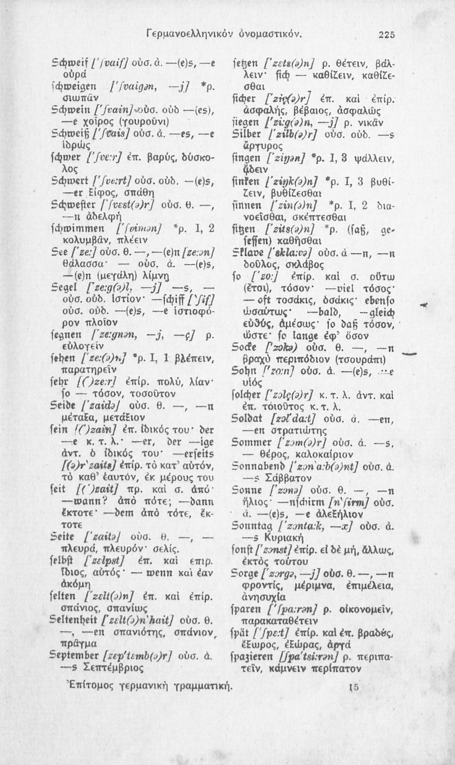 Τίτλος: Επίτομος γραμματική της γερμανικής γλώσσης, μέθοδος Gaspey-Otto-Sauer, θεωρητική άμα και πολλών ασκήσεων, διαλόγων και αναγνωσμάτων, διασκευασθείσα προς χρήσιν των Ελλήνων