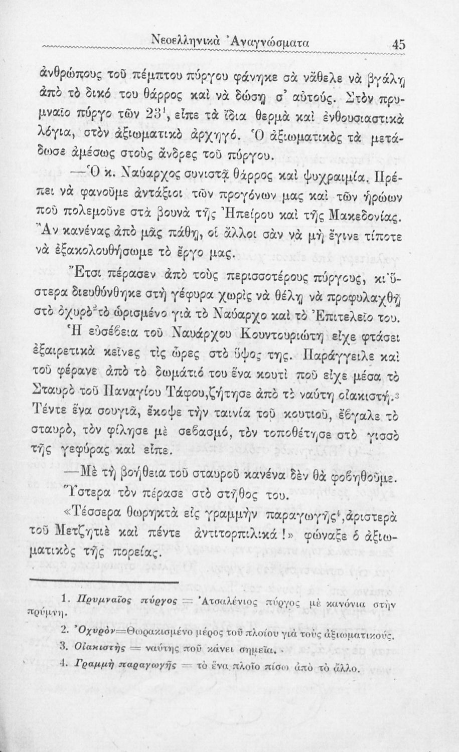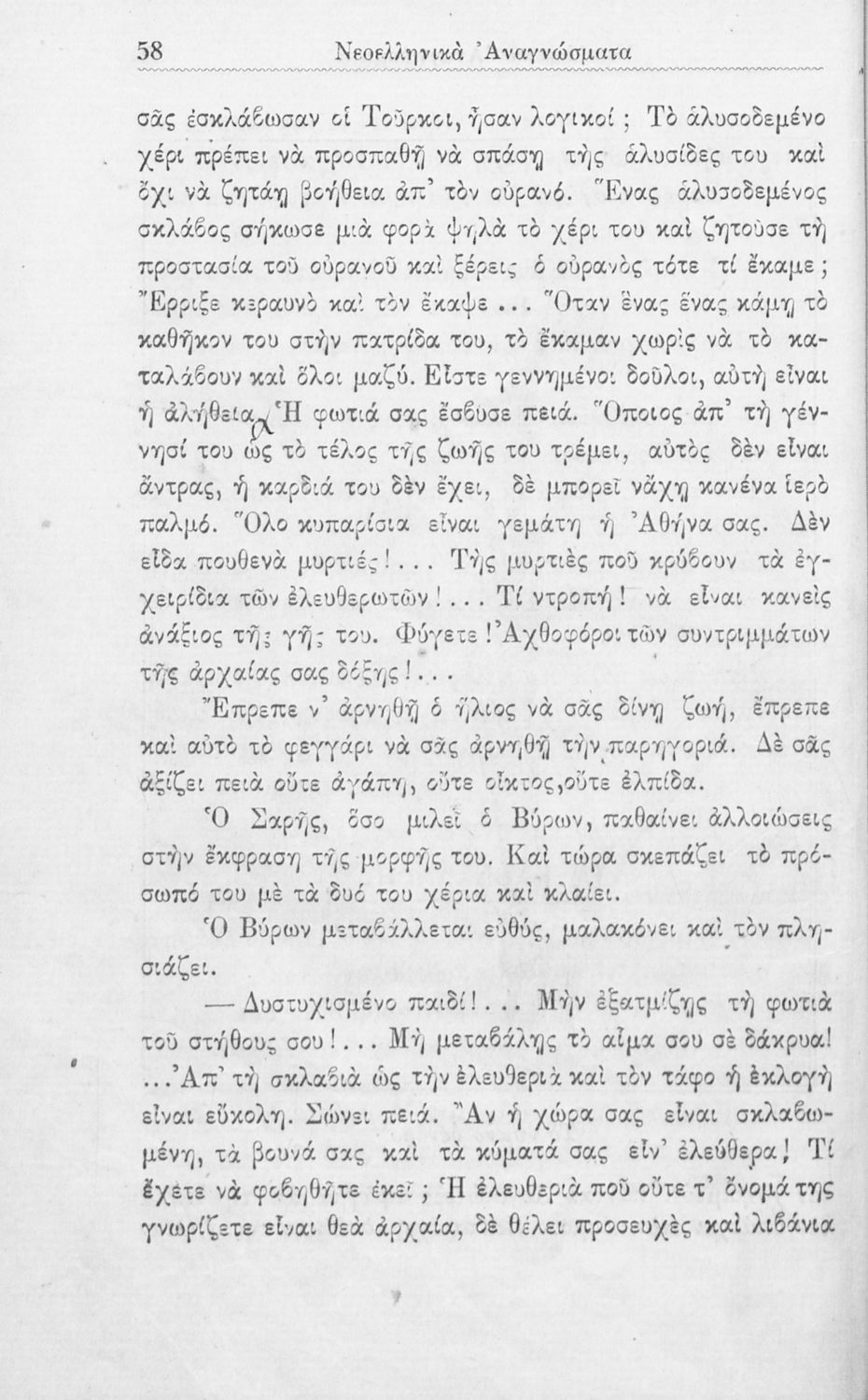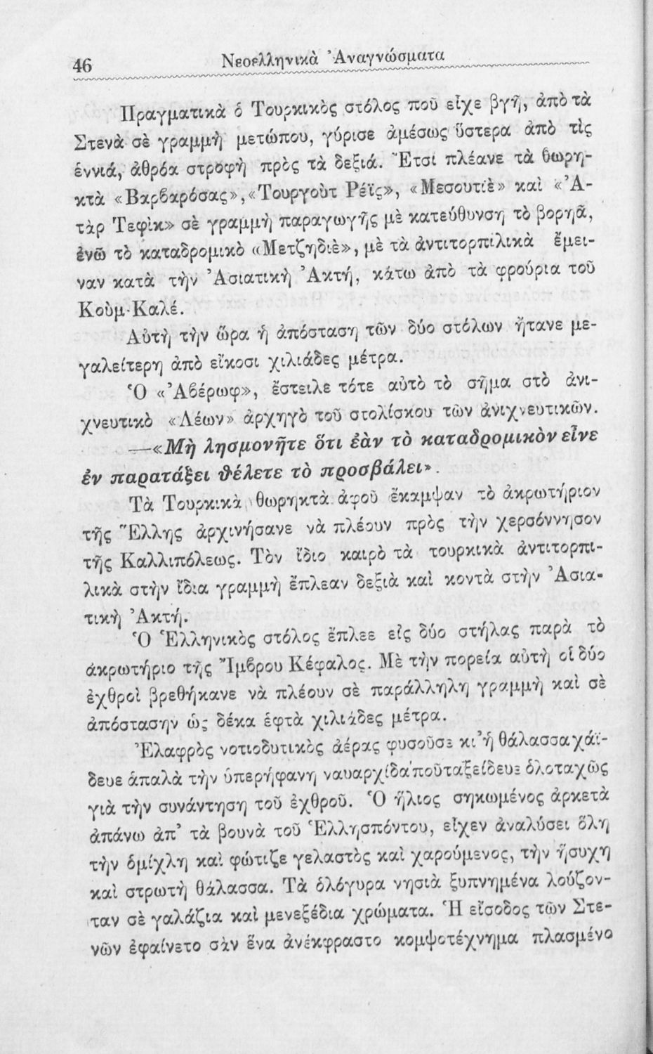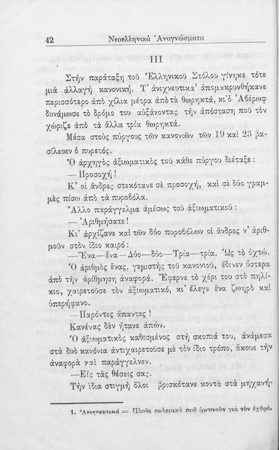 Βαθμίδα εκπαίδευσης: Δευτεροβάθμια Τάξη: Γ' Ελληνικού Σχολείου Μάθημα: Νέα Ελληνικά Γλώσσα: Απλή καθαρεύουσα Παρουσίαση περιεχομένου: Σχολικό εγχειρίδιο Νέων Ελληνικών για την Γ΄ Γυμνασίου το οποίο περιέχει σειρά κειμένων τα οποία αντλούν από τον οικογενειακό και κοινωνικό βίο και τον εθνικό παρελθόν. Στο τέλος του βιβλίου περιέχονται βιογραφίες των συγγραφέων. |