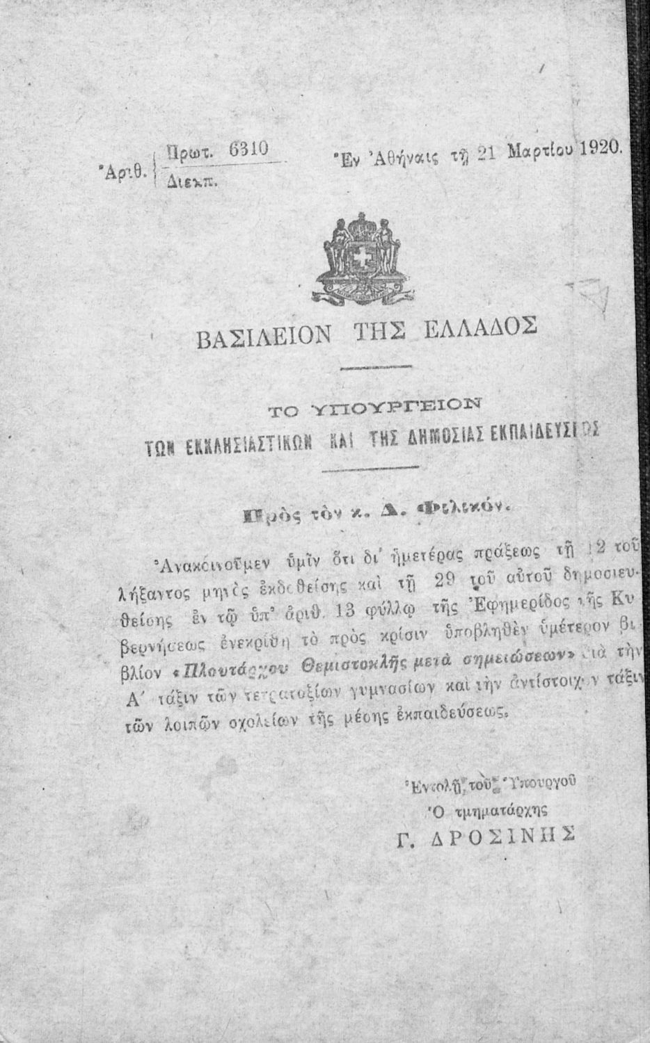 Υπουργική απόφαση / Σύμβαση: 6310/21-3-1920