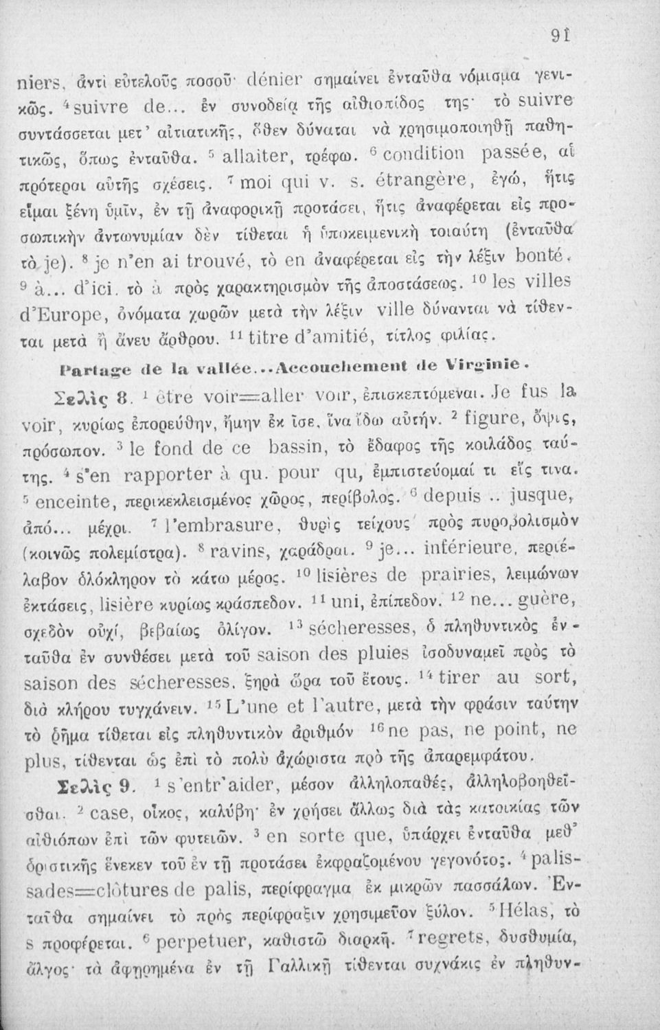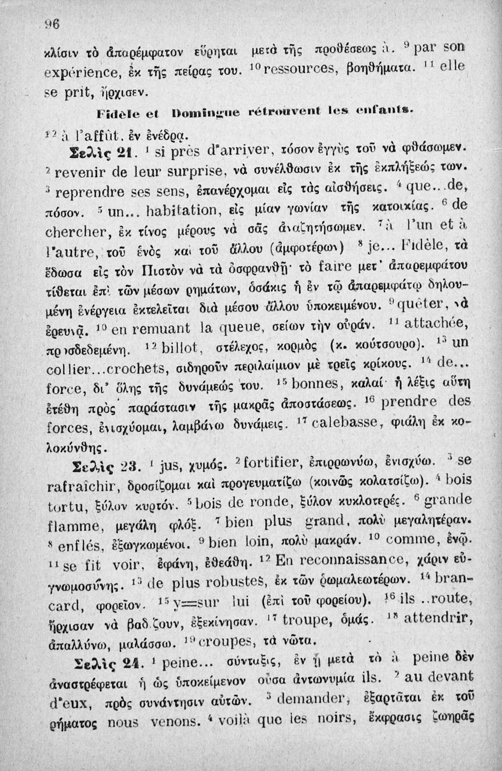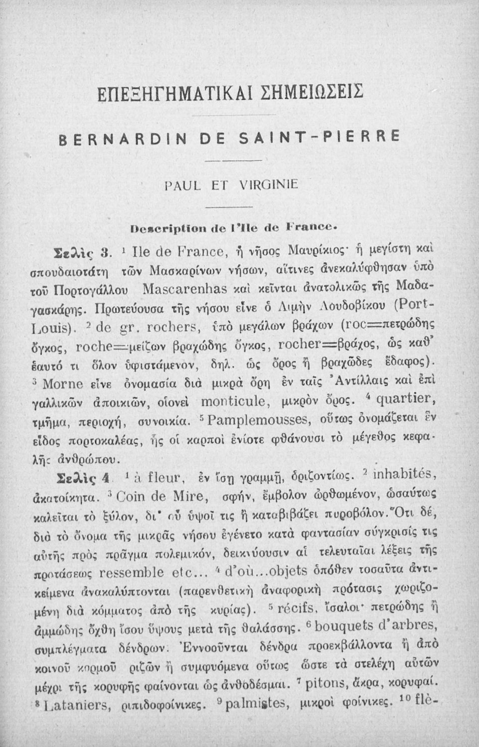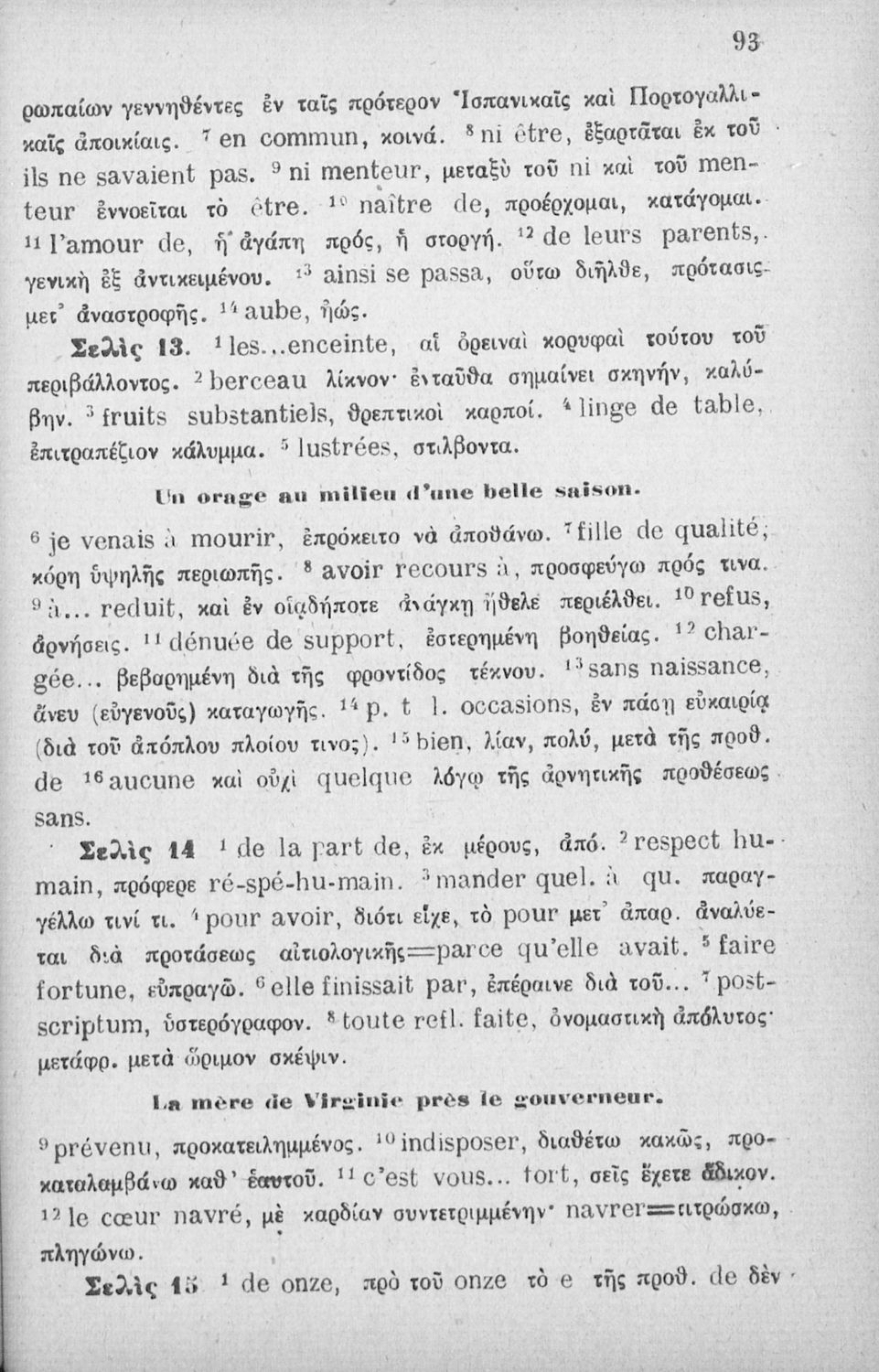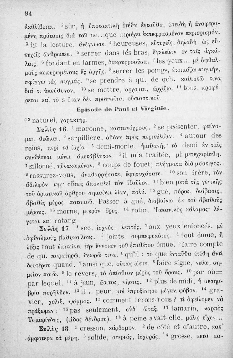Σχολικό εγχειρίδιο Γαλλικών για τις Γ΄ Γυμνάσιου, Β΄ Διδασκαλείου Θηλέων και Α' Διδασκαλείου Αρρένων που περιέχει αποσπάσματα έργων Γάλλων συγγραφέων, και γλωσσικά και ερμηνευτικά σχόλια.