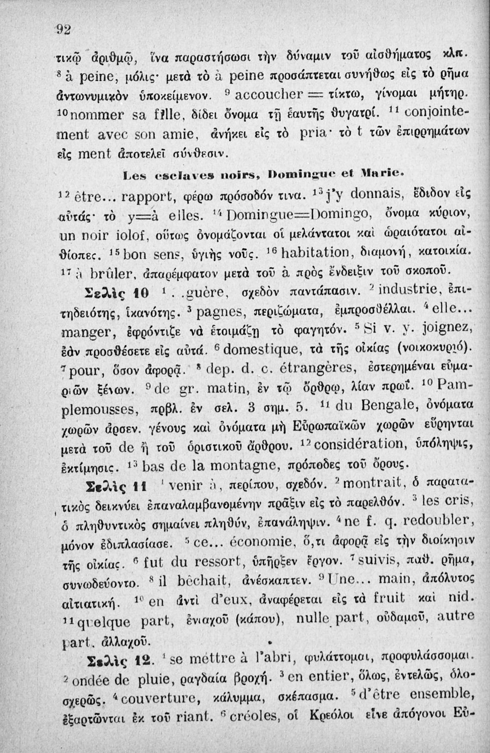 Βαθμίδα εκπαίδευσης: Δευτεροβάθμια Τάξη: Γ' Γυμνασίου Μάθημα: Γαλλικά Γλώσσα: Καθαρεύουσα Παρουσίαση περιεχομένου: Σχολικό εγχειρίδιο Γαλλικών για τις Γ΄ Γυμνάσιου, Β΄ Διδασκαλείου Θηλέων και Α' Διδασκαλείου Αρρένων που περιέχει αποσπάσματα έργων Γάλλων συγγραφέων, και γλωσσικά και ερμηνευτικά σχόλια. |