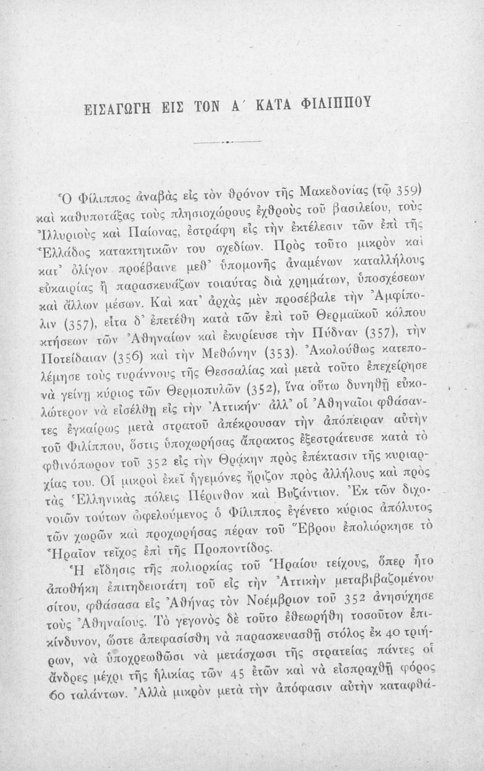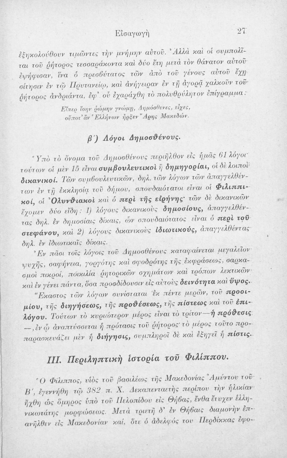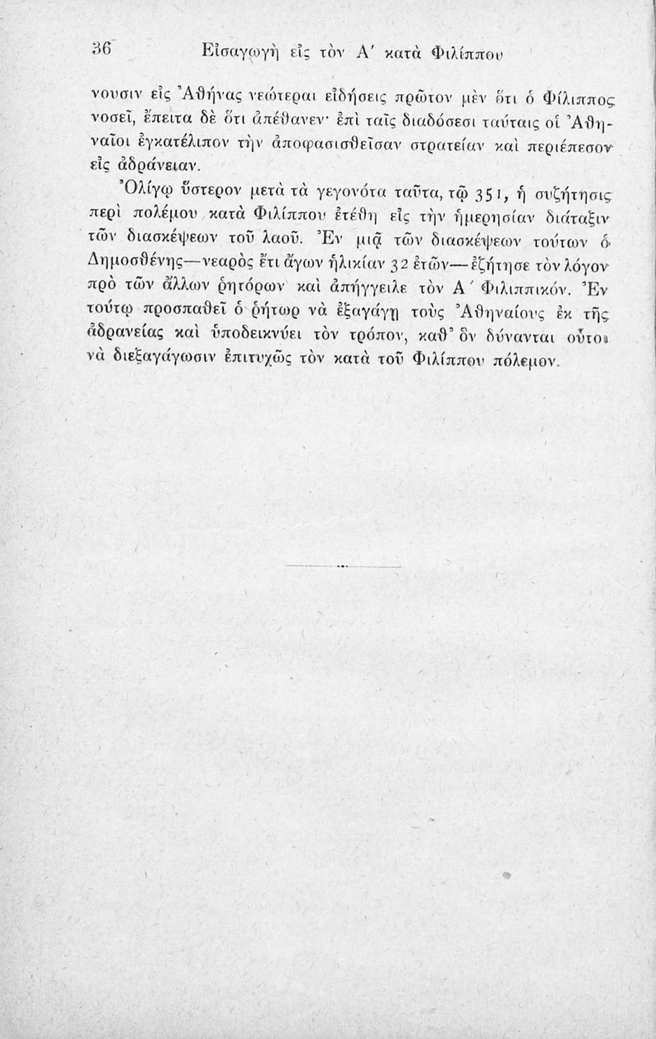 Σχολικό εγχειρίδιο Αρχαίων Ελληνικών Γ΄ Γυμνασίου που περιλαμβάνει τον Λόγο του Δημοσθένη Α΄ κατά Φιλίππου, εισαγωγικά σχόλια στο έργο και τη ζωή του, ερμηνευτικά και γραμματικά σχόλια και παρατηρήσεις.