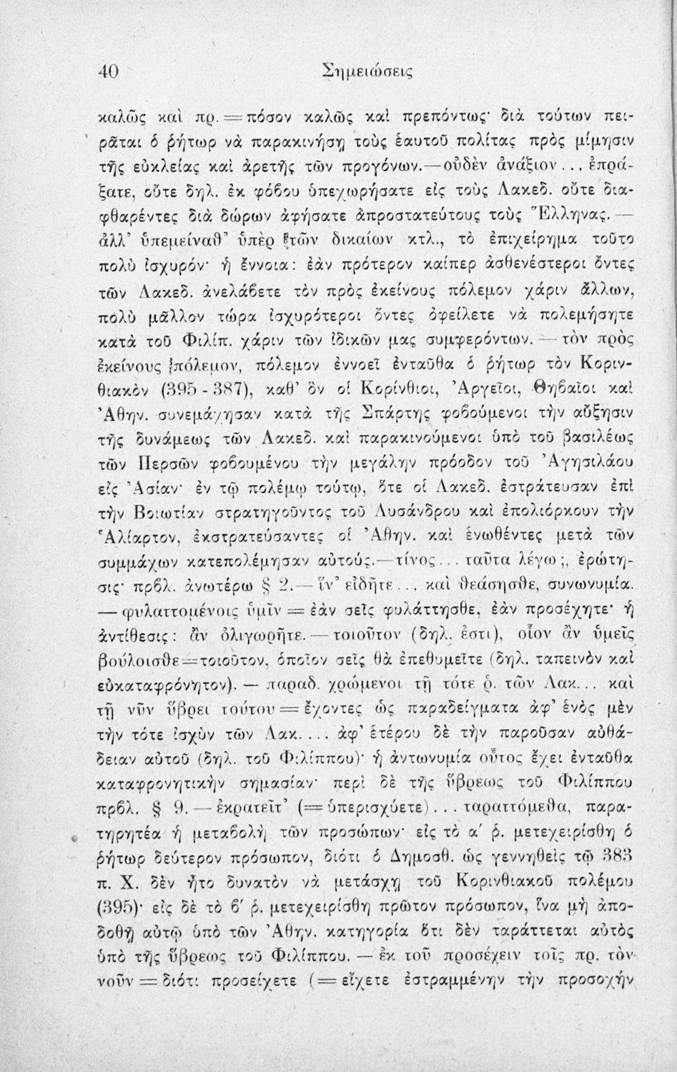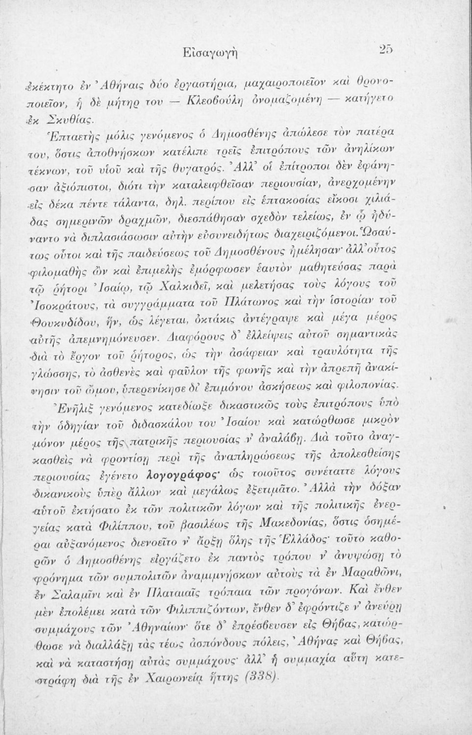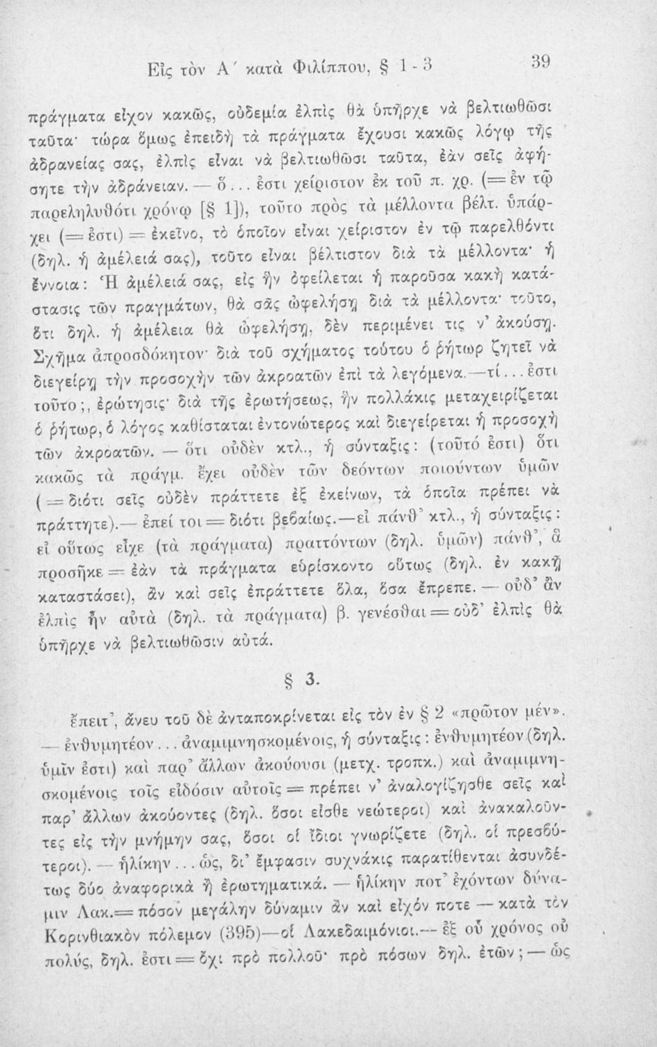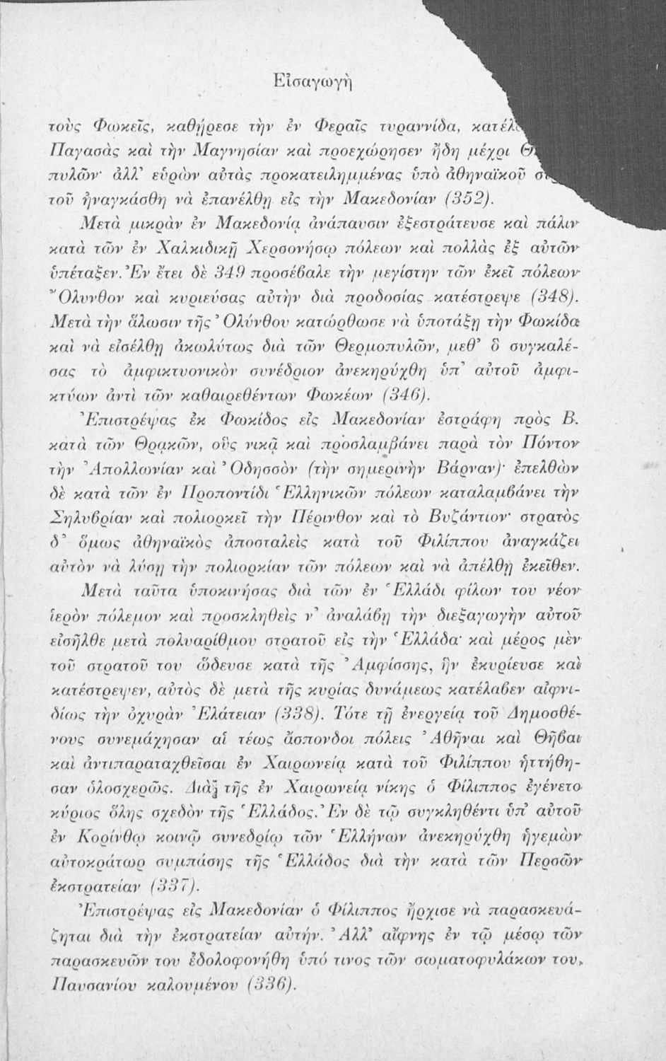 Σχολικό εγχειρίδιο Αρχαίων Ελληνικών Γ΄ Γυμνασίου που περιλαμβάνει τον Λόγο του Δημοσθένη Α΄ κατά Φιλίππου, εισαγωγικά σχόλια στο έργο και τη ζωή του, ερμηνευτικά και γραμματικά σχόλια και παρατηρήσεις.