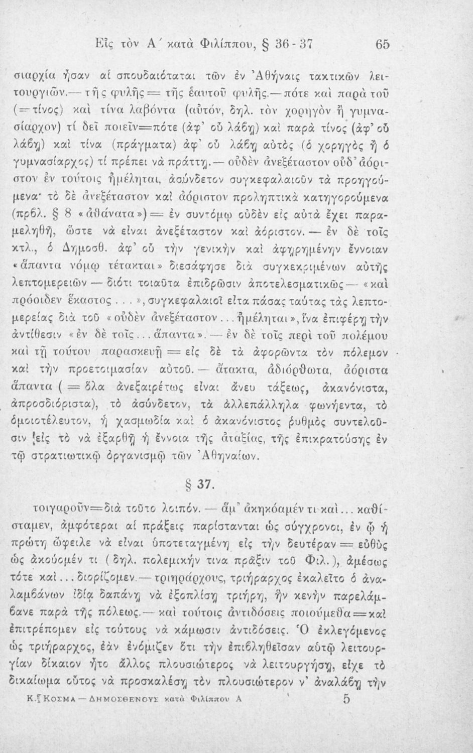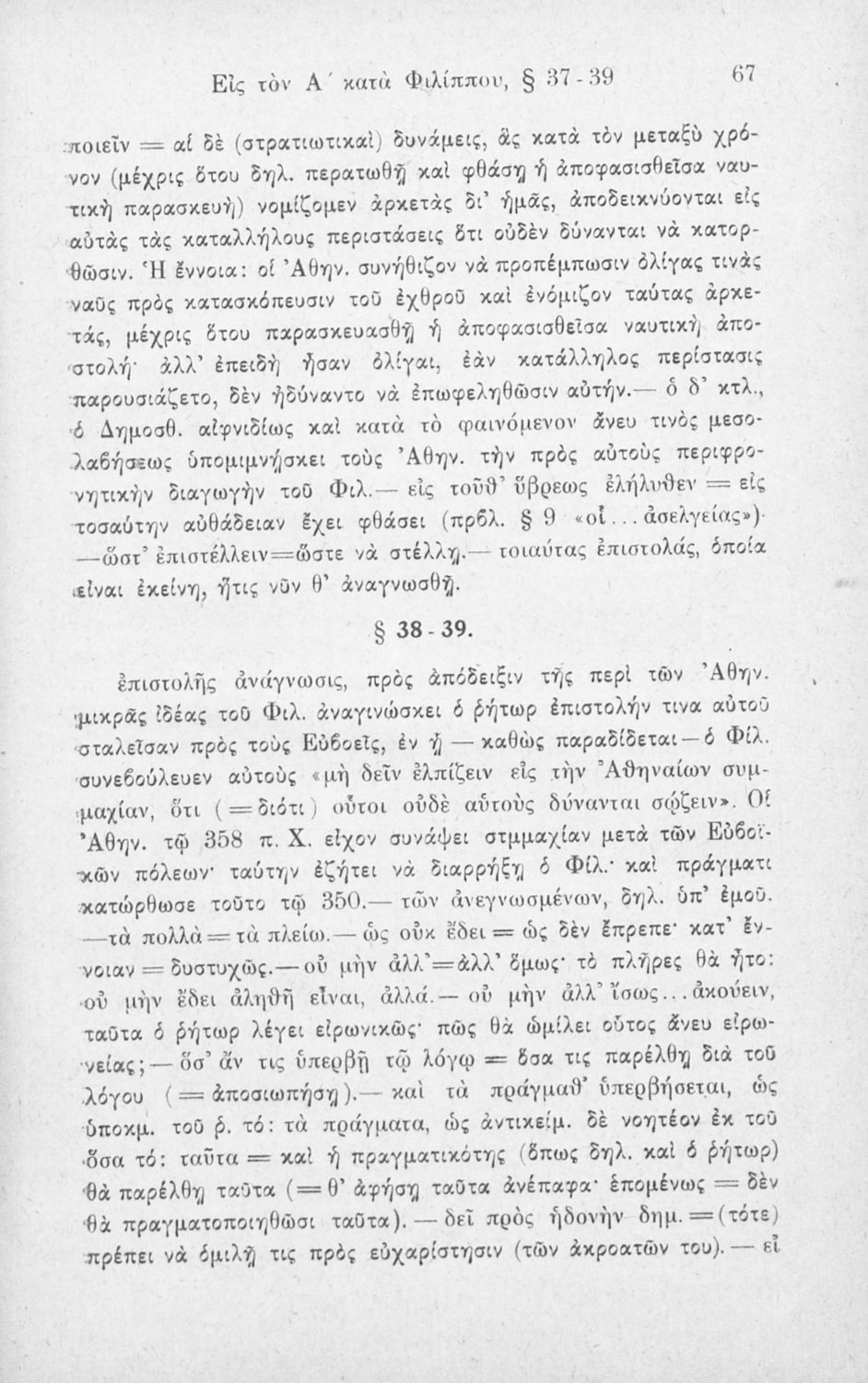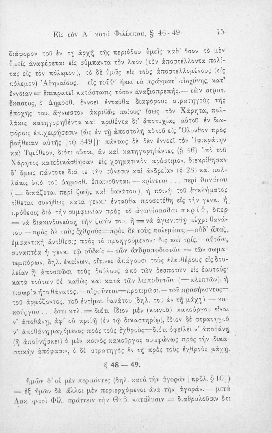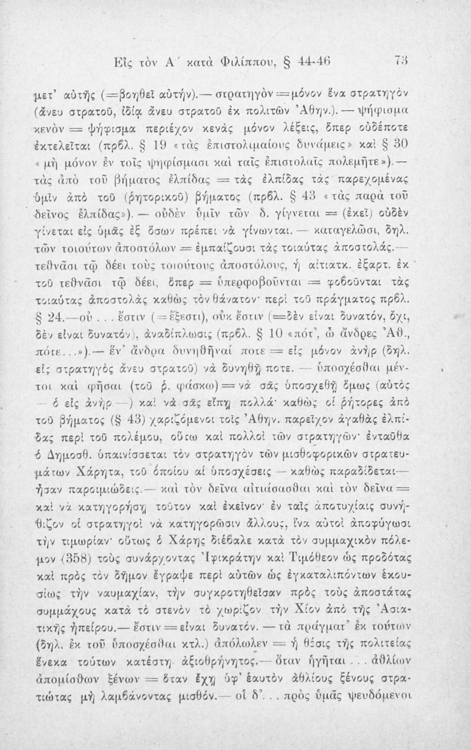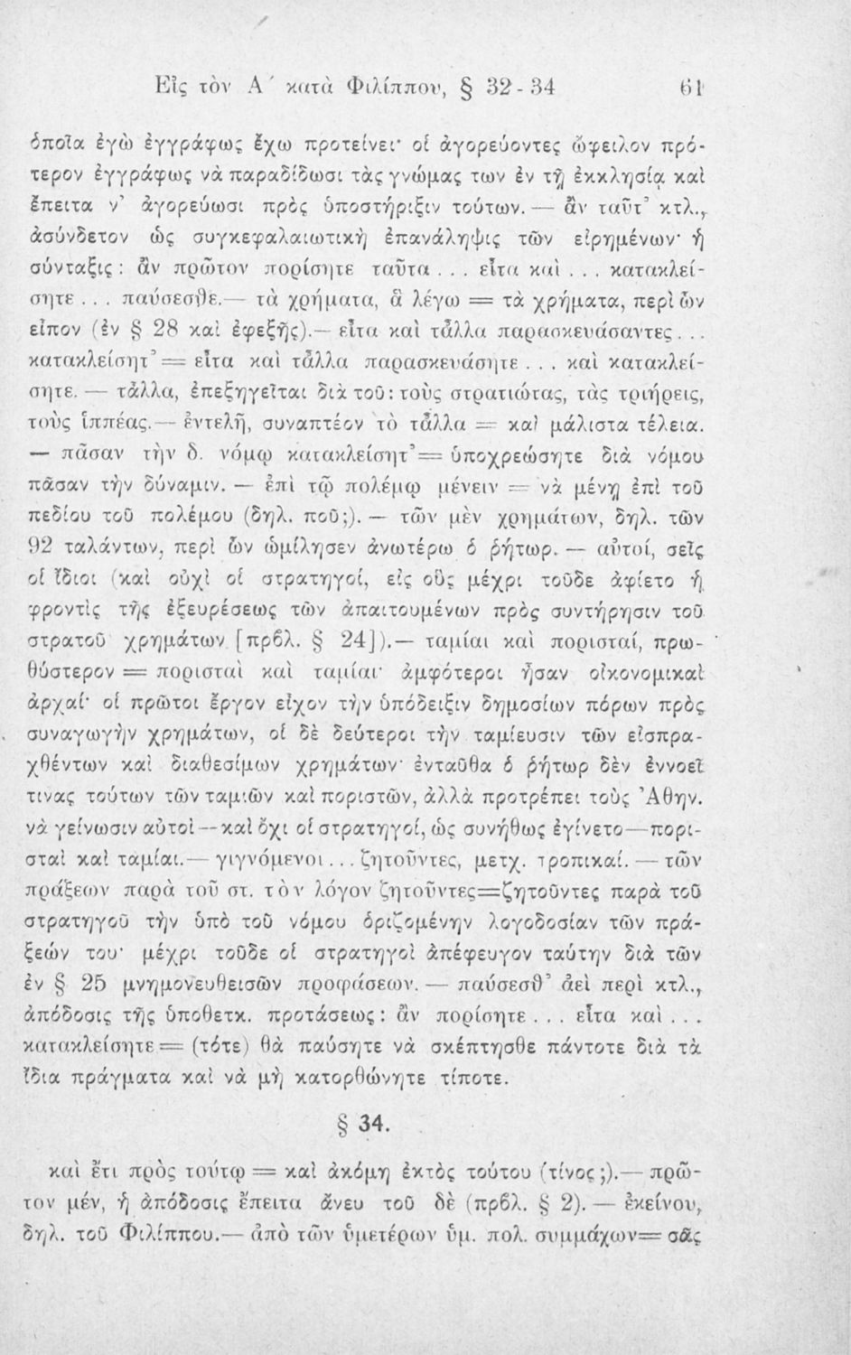Σχολικό εγχειρίδιο Αρχαίων Ελληνικών Γ΄ Γυμνασίου που περιλαμβάνει τον Λόγο του Δημοσθένη Α΄ κατά Φιλίππου, εισαγωγικά σχόλια στο έργο και τη ζωή του, ερμηνευτικά και γραμματικά σχόλια και παρατηρήσεις.