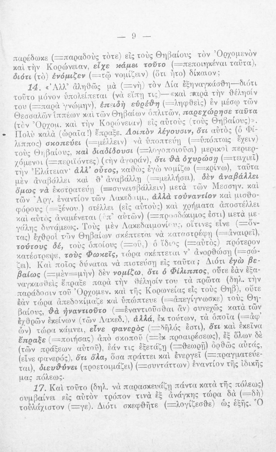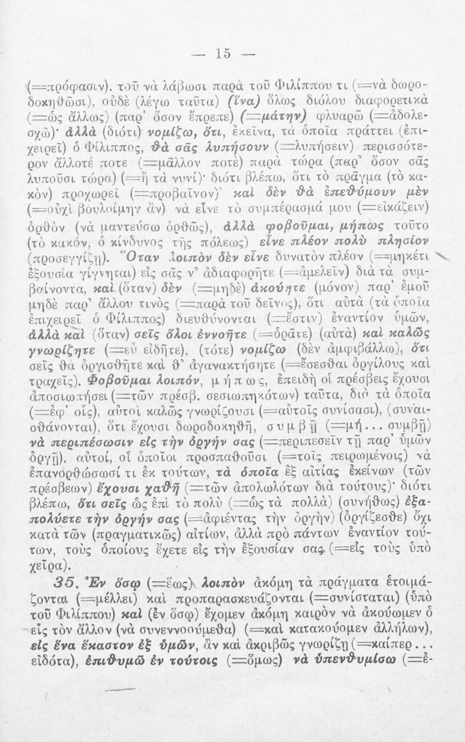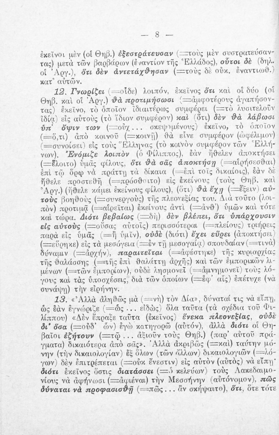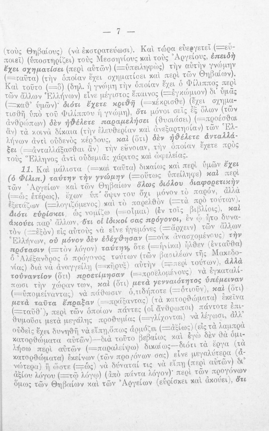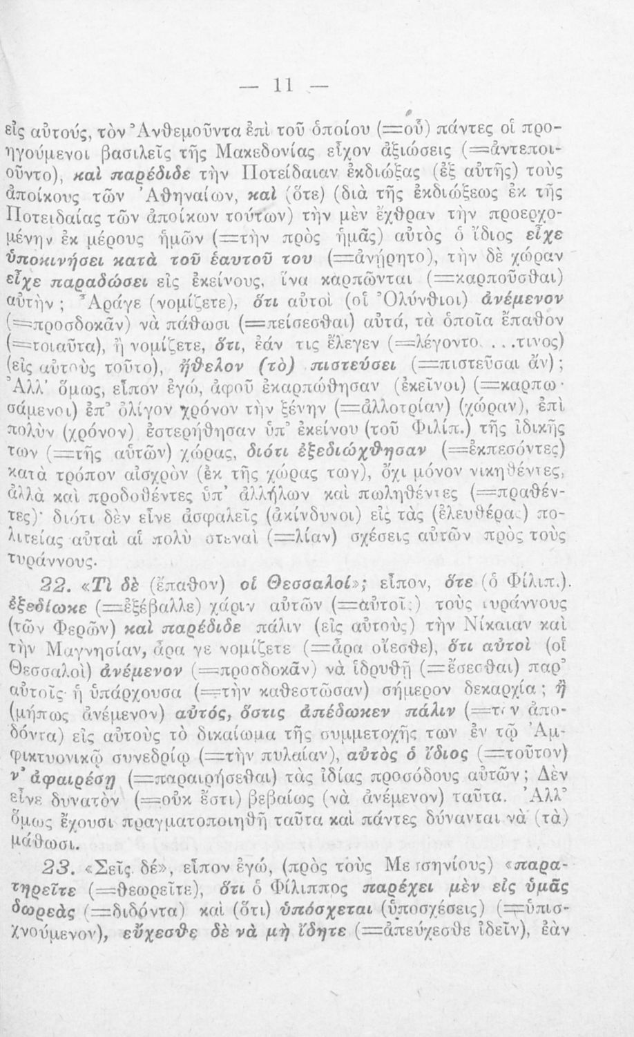 Μαθητικό βοήθημα Αρχαίων Ελληνικών Γ΄ Γυμνασίου που περιλαμβάνει το Λόγο του Δημοσθένη Β΄ κατά Φιλίππου σε μετάφραση.