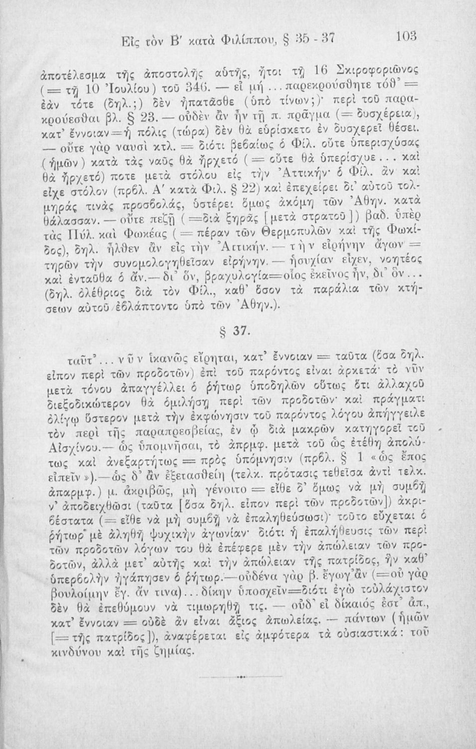 Δημοσθένης, Δημ. Σταματιάδης (σχόλια)