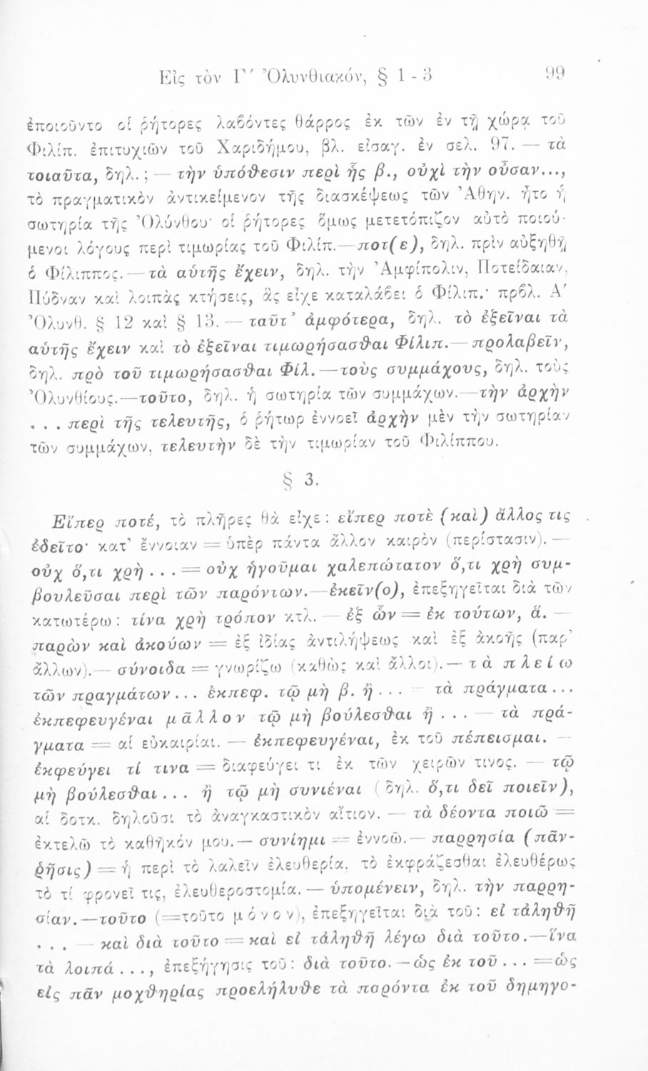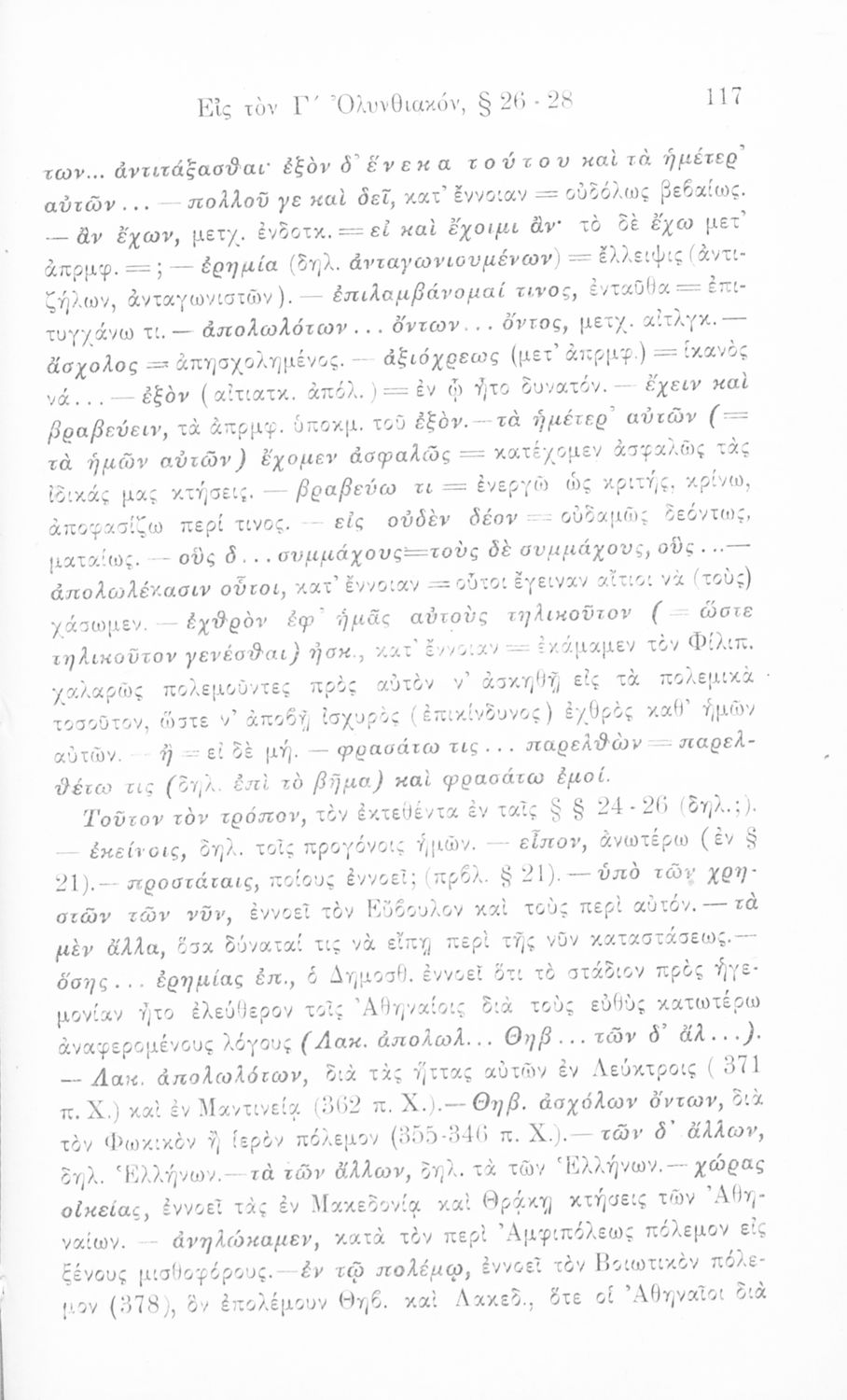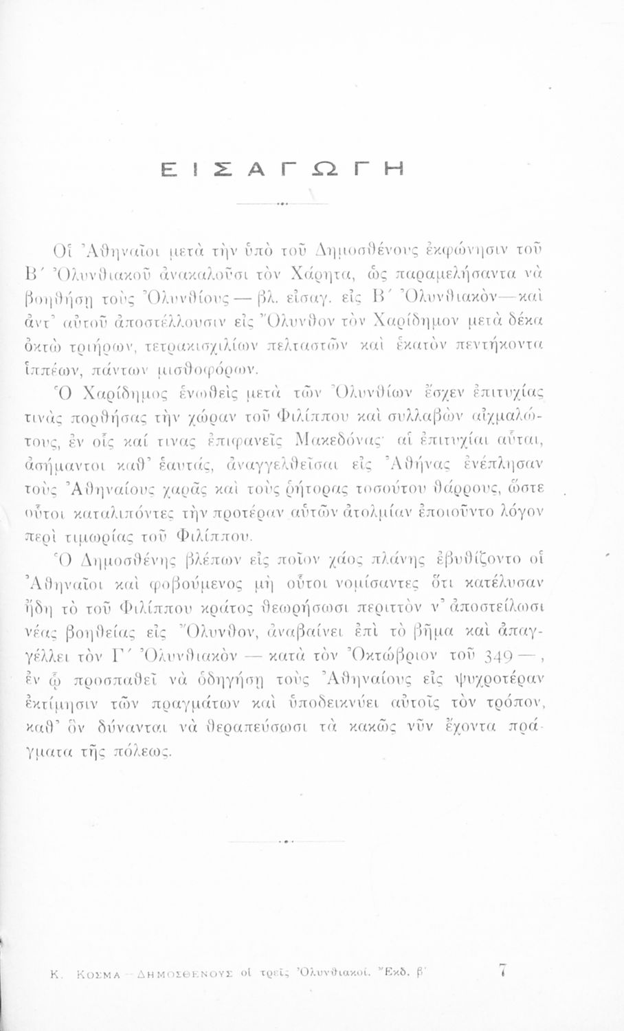 Σχολικό εγχειρίδιο Αρχαίων Ελληνικών Β΄ Γυμνασίου που περιλαμβάνει τους τρεις Ολυνθιακούς Λόγους του Δημοσθένη, εισαγωγικά σχόλια στη ζωή και το έργο του, την υπόθεση των Λόγων, και ερμηνευτικά, πραγματολογικά και λεξιλογικά σχόλια.