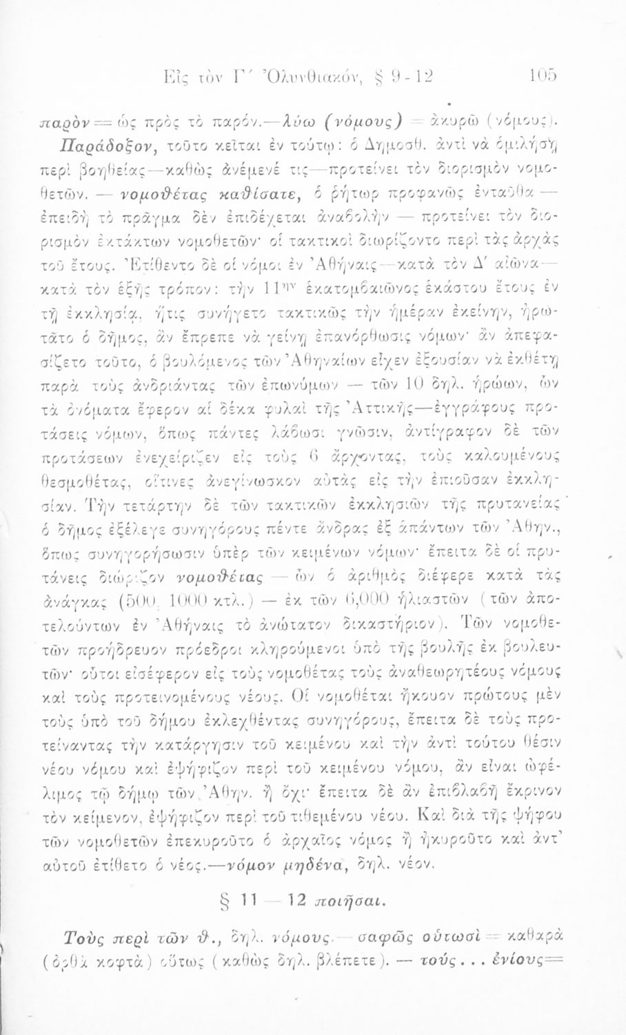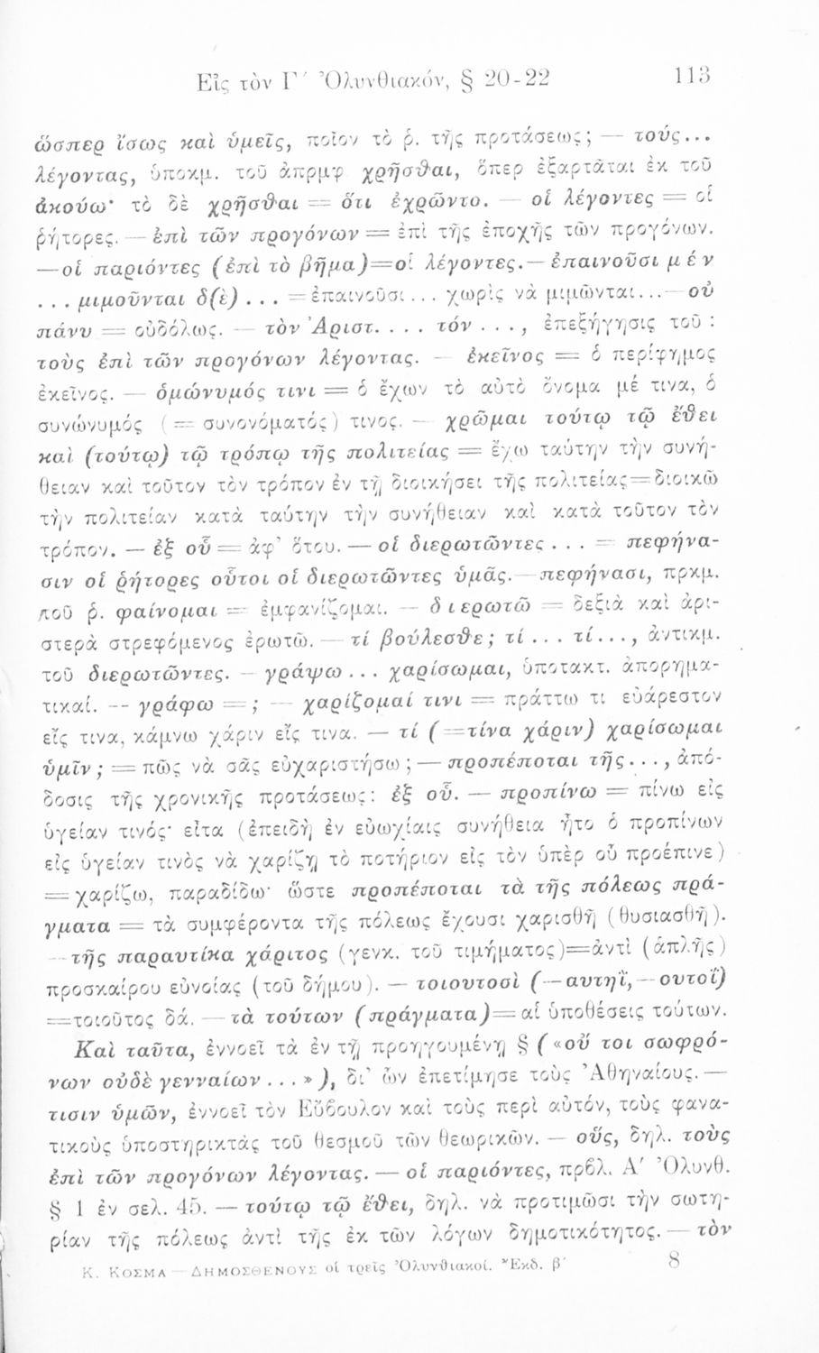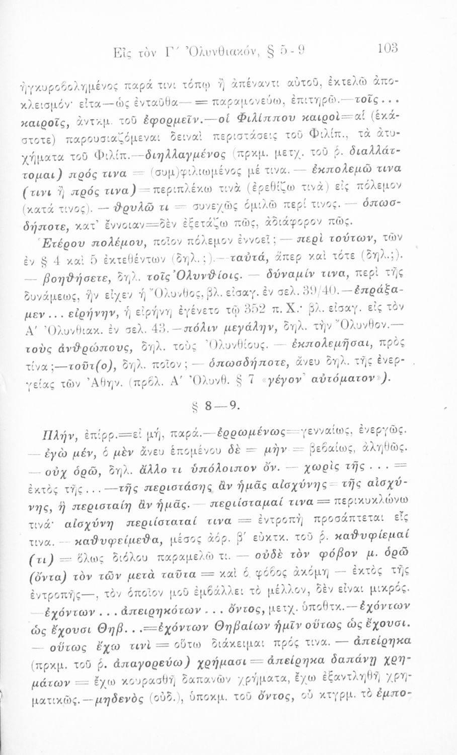 Σχολικό εγχειρίδιο Αρχαίων Ελληνικών Β΄ Γυμνασίου που περιλαμβάνει τους τρεις Ολυνθιακούς Λόγους του Δημοσθένη, εισαγωγικά σχόλια στη ζωή και το έργο του, την υπόθεση των Λόγων, και ερμηνευτικά, πραγματολογικά και λεξιλογικά σχόλια.