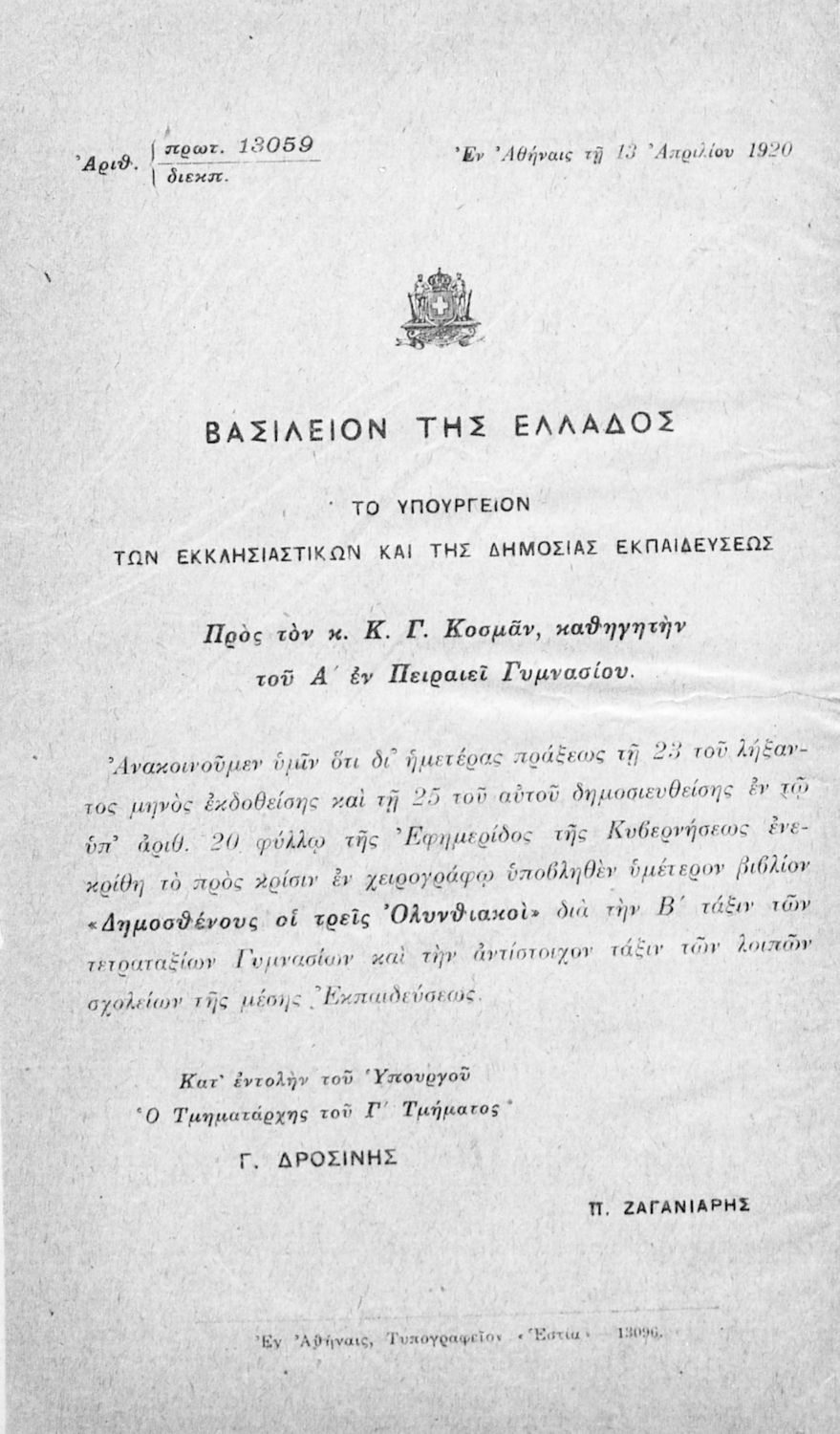 Υπουργική απόφαση / Σύμβαση: 13059/13-4-1920