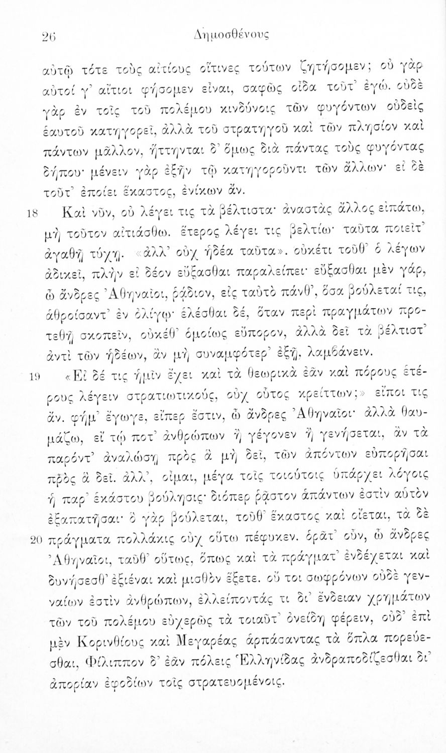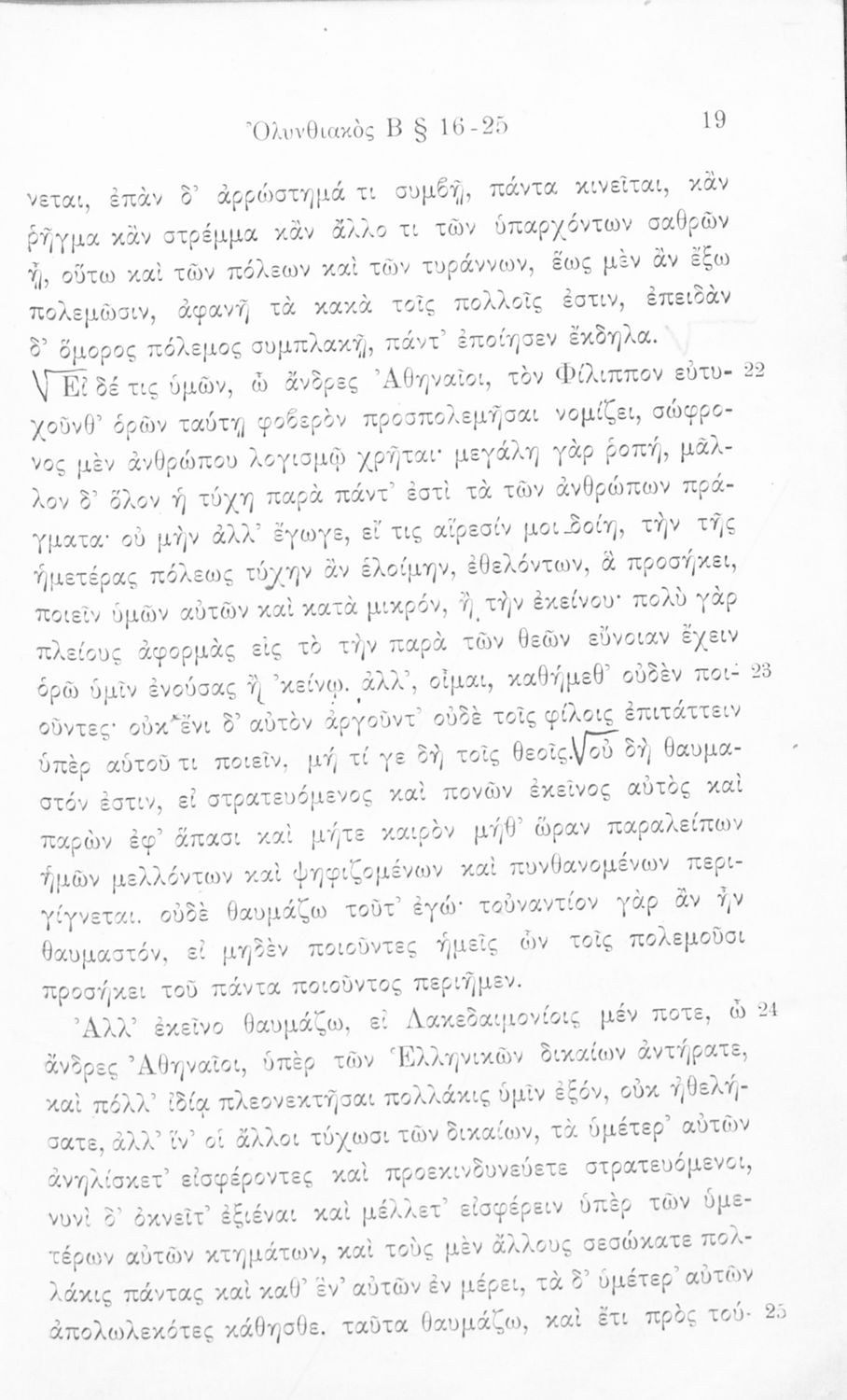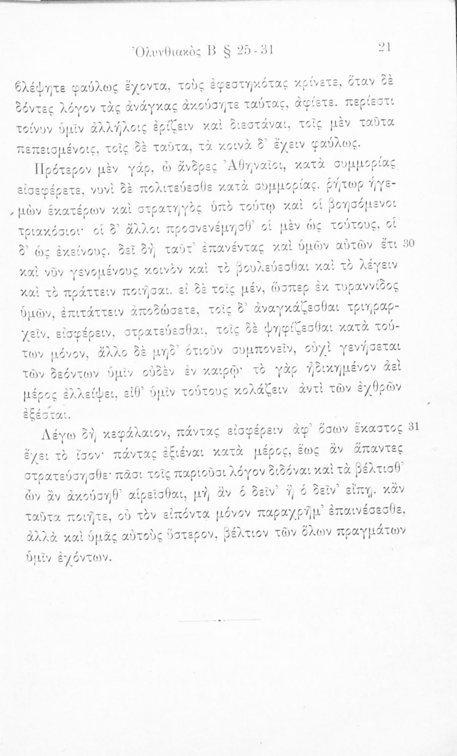 Σχολικό εγχειρίδιο Αρχαίων Ελληνικών Β΄ Γυμνασίου που περιλαμβάνει τους τρεις Ολυνθιακούς Λόγους του Δημοσθένη, εισαγωγικά σχόλια στη ζωή και το έργο του, την υπόθεση των Λόγων, και ερμηνευτικά, πραγματολογικά και λεξιλογικά σχόλια.