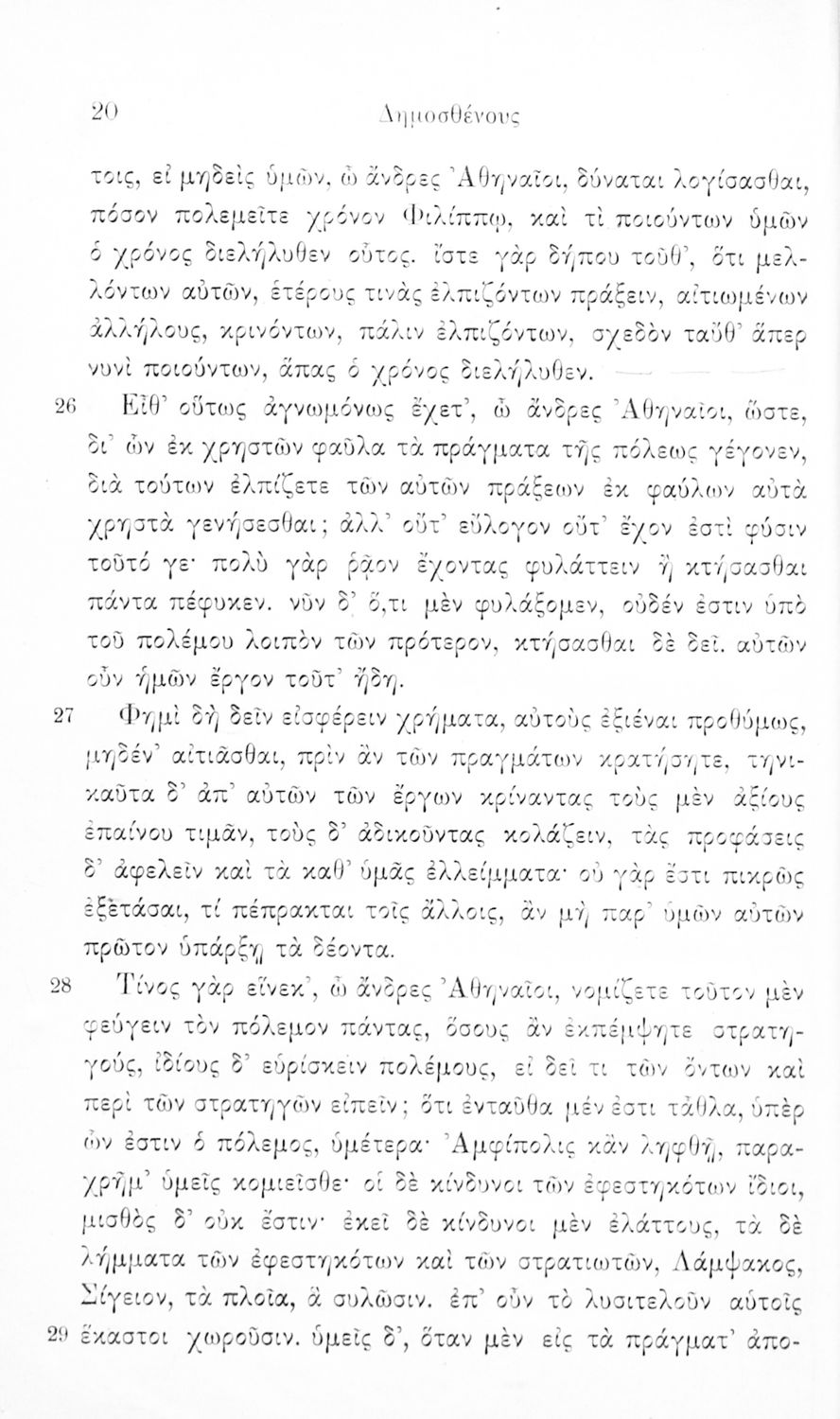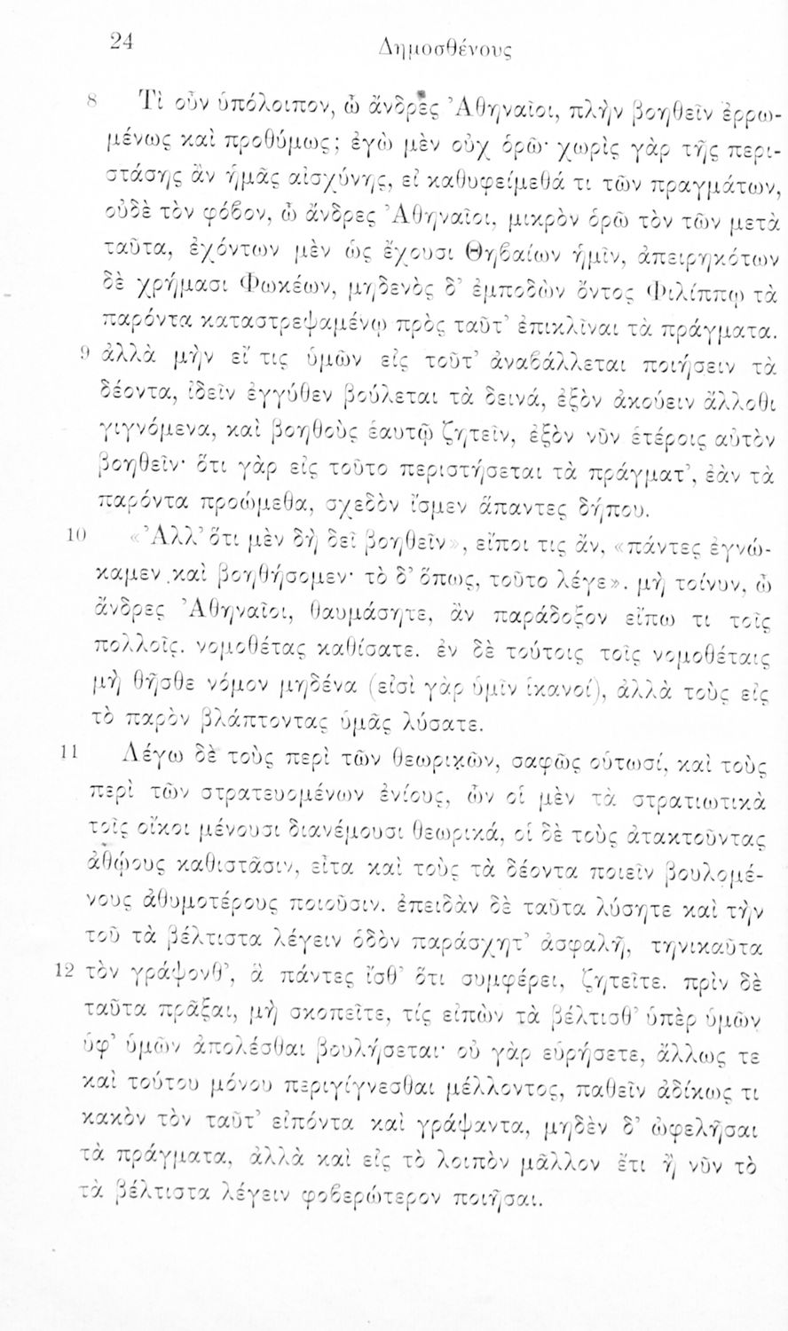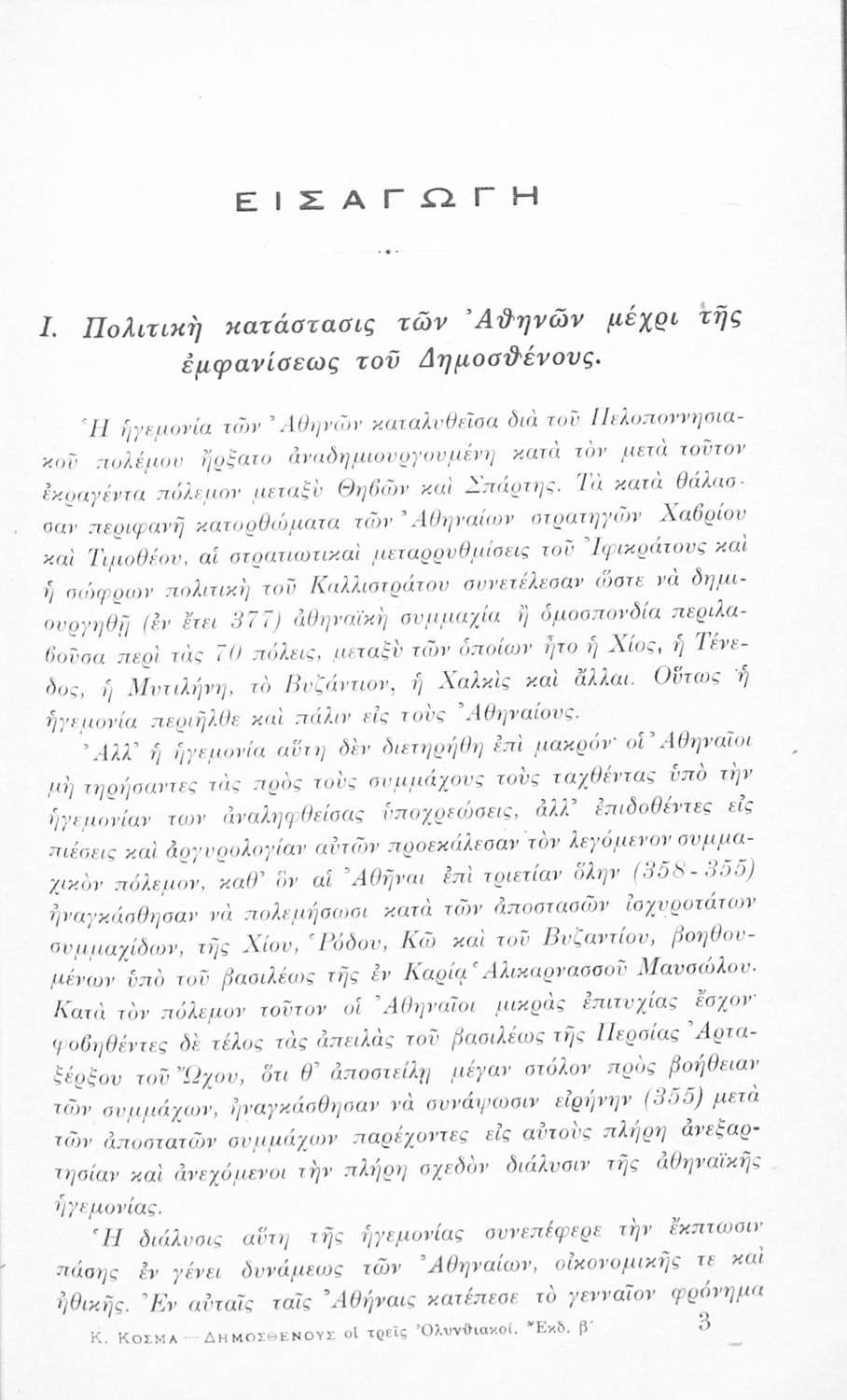 520 ## _aΣχολικό εγχειρίδιο Αρχαίων Ελληνικών Β΄ Γυμνασίου που περιλαμβάνει τους τρεις Ολυνθιακούς Λόγους του Δημοσθένη, εισαγωγικά σχόλια στη ζωή και το έργο του, την υπόθεση των Λόγων, και ερμηνευτικά, πραγματολογικά και λεξιλογικά σχόλια.