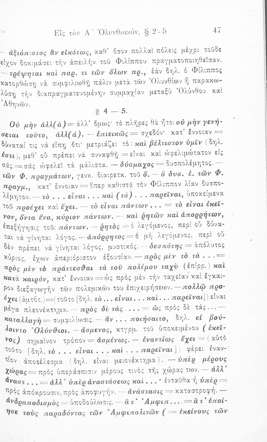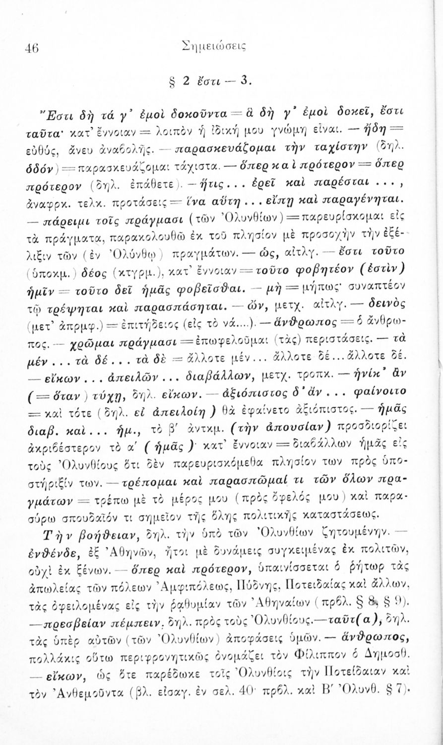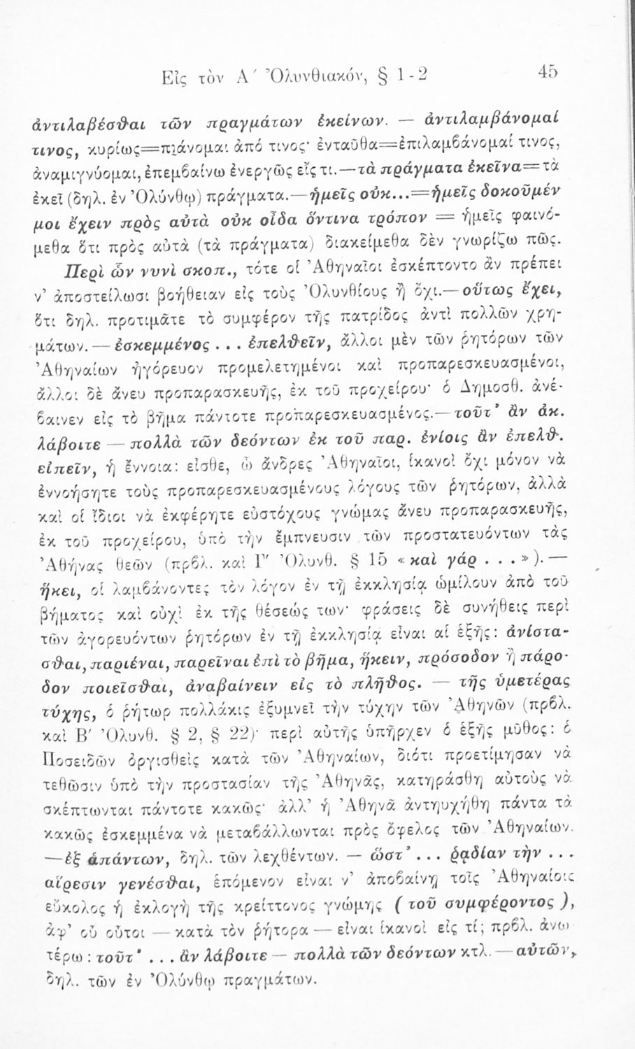 520 ## _aΣχολικό εγχειρίδιο Αρχαίων Ελληνικών Β΄ Γυμνασίου που περιλαμβάνει τους τρεις Ολυνθιακούς Λόγους του Δημοσθένη, εισαγωγικά σχόλια στη ζωή και το έργο του, την υπόθεση των Λόγων, και ερμηνευτικά, πραγματολογικά και λεξιλογικά σχόλια.