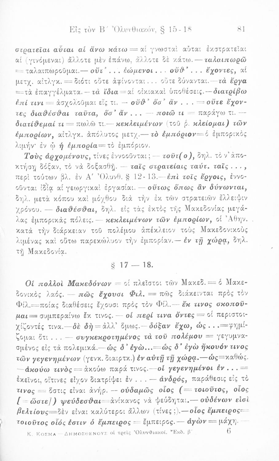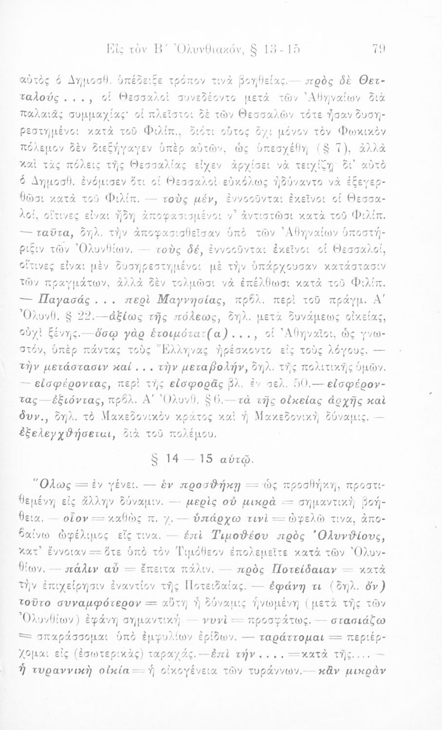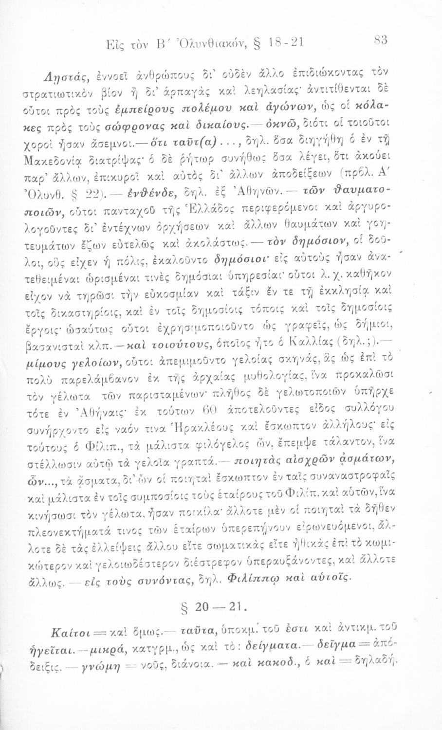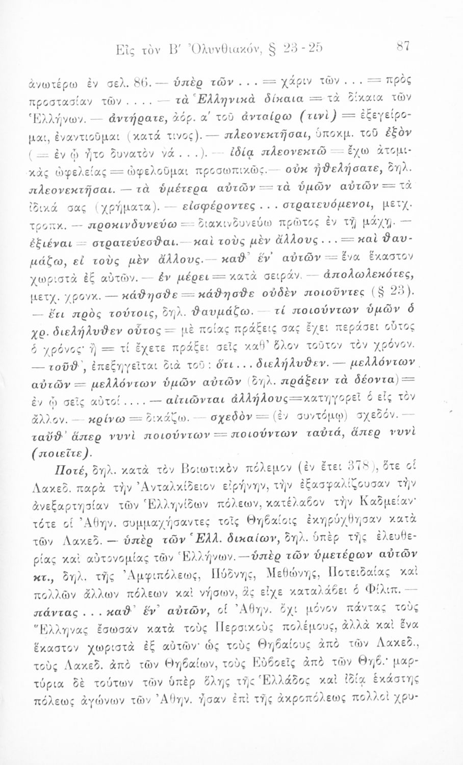 Σχολικό εγχειρίδιο Αρχαίων Ελληνικών Β΄ Γυμνασίου που περιλαμβάνει τους τρεις Ολυνθιακούς Λόγους του Δημοσθένη, εισαγωγικά σχόλια στη ζωή και το έργο του, την υπόθεση των Λόγων, και ερμηνευτικά, πραγματολογικά και λεξιλογικά σχόλια.